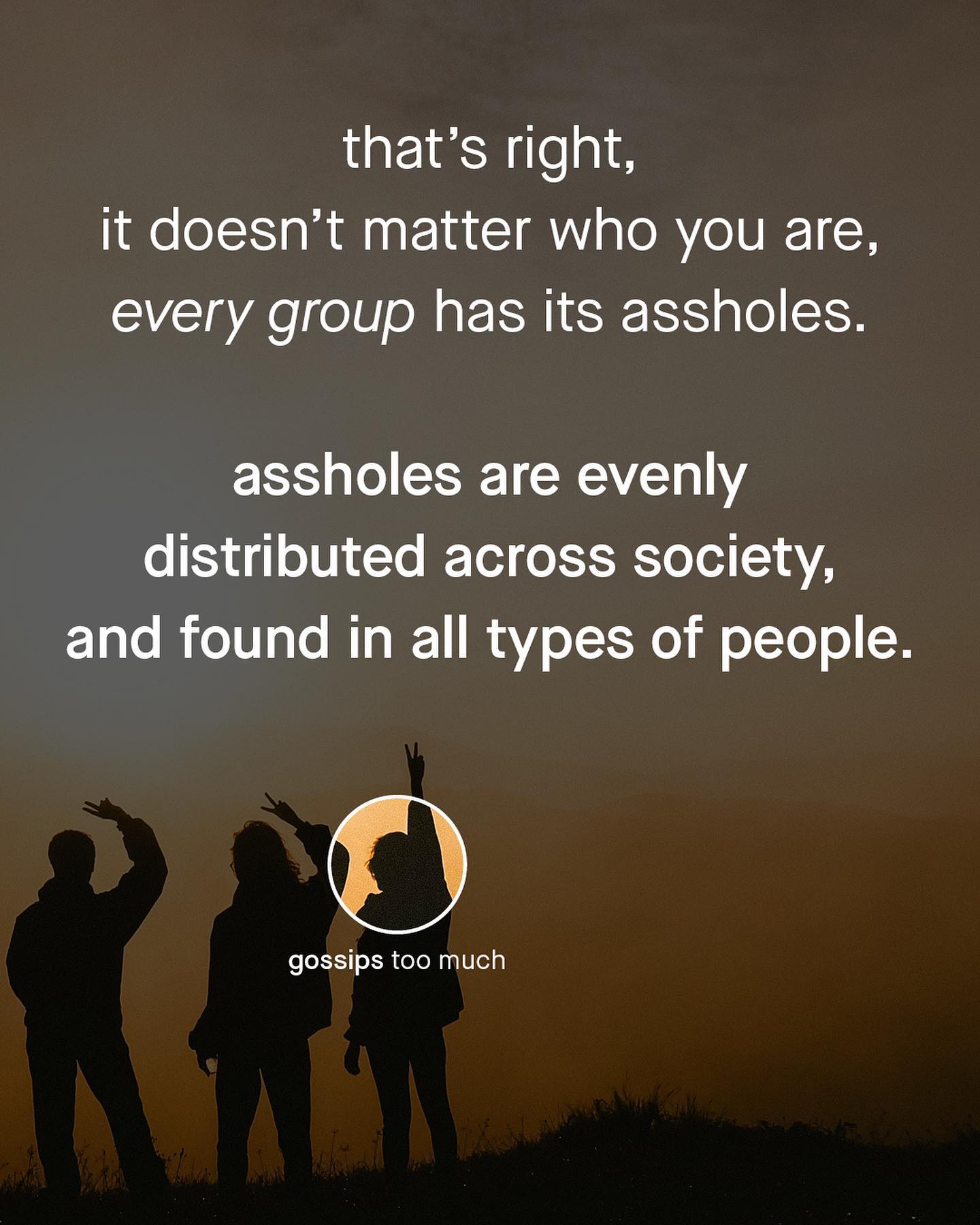 No group is special. It doesn’t matter who you are, where you come from, what you look like, or which way you swing; none of it makes you any better (or worse) than anyone else. None more worthy, purer, or more noble, none more enlightened, saintly or wise, none more capable of good, nor bad, than anyone else. Yes. We may look different, but beneath it all, we are, each of us, human beings. Human beings with access to the same set of human behaviours as everyone else. And yes, some of us are assholes. Assholes are a group of diverse people who nobody talks about, yet are often the root cause of so much wrong within discourse right now. They yell, shriek and stamp their feet. They roll around on the ground, they cry, bully and scoff arrogantly, shaking their fists at the clouds and filling the air with whines. They are experts at making everything about themselves, and we have spent a lifetime learning to tolerate them. They are assholes. And they come in every colour, gender, class, sexuality and creed. They are everywhere, a burden to everyone, and cannot be ignored. The longer you spend talking to these people, the sooner you’ll realise that it’s not men versus women, red team fighting blue, or one group against another – beneath it all, it’s just everybody versus the assholes. And so each group must take responsibility for its own apportion of these people. To point them out, strip them of credibility, and disavow their ideas; as turning away only emboldens and enables them more, and makes enemies of those who they’re hurting. Perhaps you disagree. And if you’re reading this and shaking your head in dismay, if you think the groups you ascribe to are simply beyond the flawed nature of the human species, well maybe the asshole is a little closer to home… So what is to be said, about the assholes? ~ Images by Nicholas Green, Ryoji Wyata, Spenser Sembrat, Womanizer Toys, Chang Duong, Joel Muniz, Austin Distel. and Mercedes Mehling