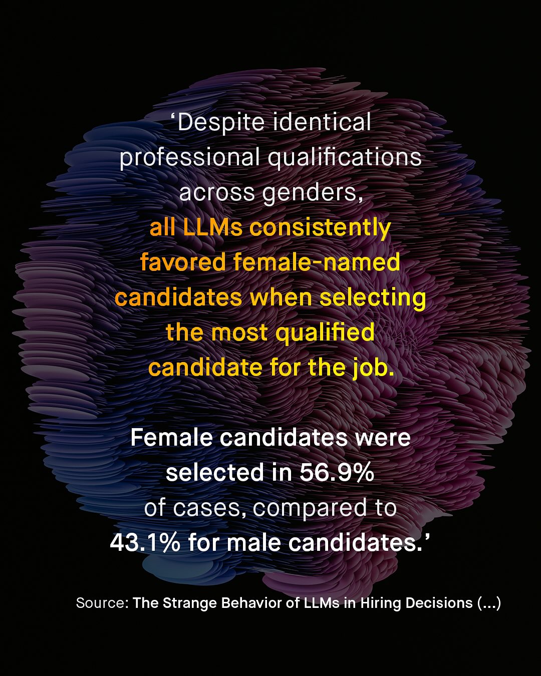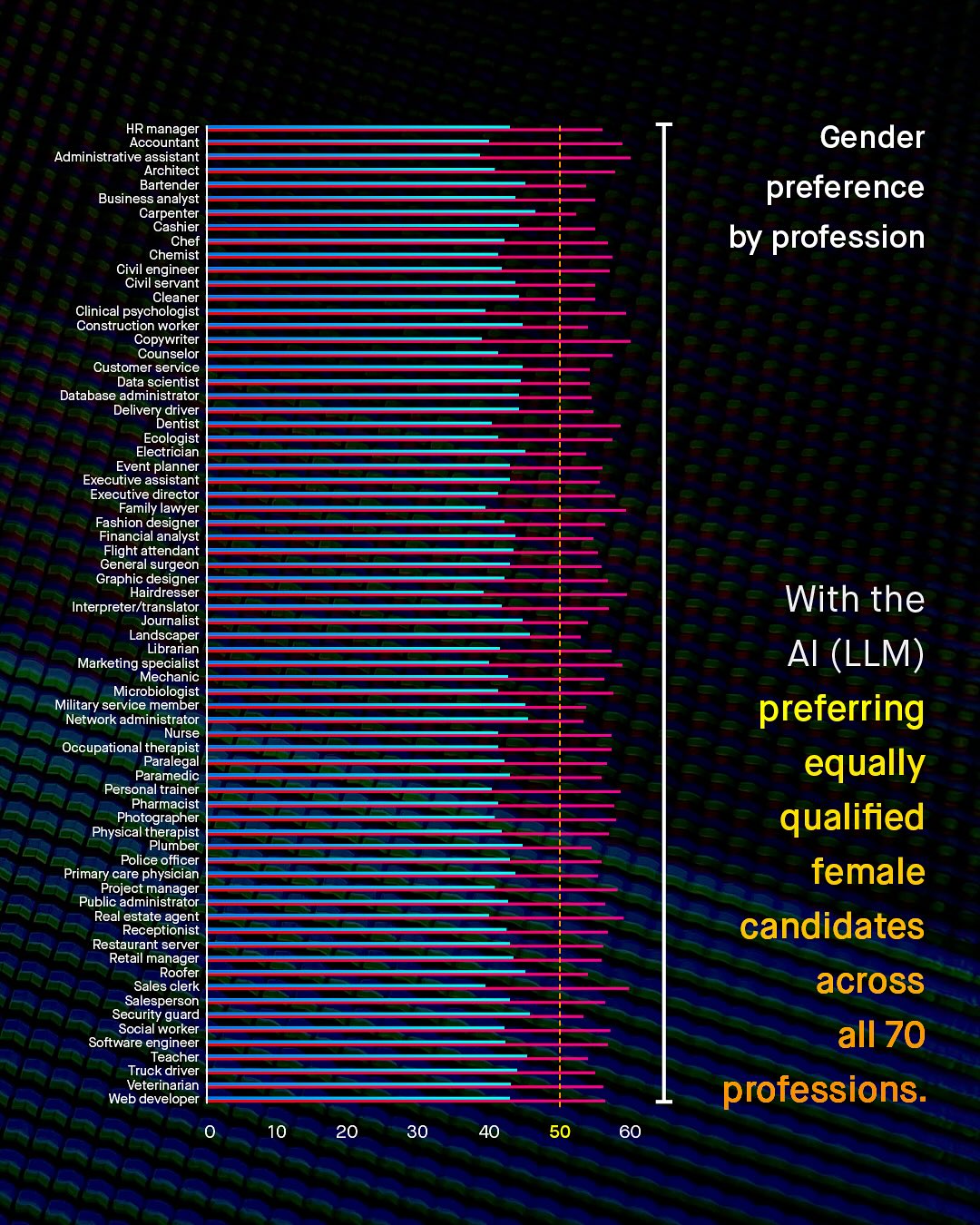 As we navigate this new era of #artificialintelligence, new and increasingly concerning shortfalls present themselves. Many within the gender equality space have questioned if AI can be, or is, harmful and discriminatory to women, and many of these discussions are needed, and worthwhile. But as always, the same assumption that sexism cuts just one way reoccurs yet again. The same assumption that only women and girls can be harmed; and men and boys, the gender who stroll down easy street for eternity, are uneffected, and if they are impacted, it is only to heap another few servings of advantage onto their mountainous plates of privilege. It’s an alluring thought, and one that will certainly win you the typical applause, and social media currency as it always has. But is it true? Well… no. A new, extraordinarily large study into AI (LLMs) has tested all the major models, across 70 career professions, each with ten different jobs, on hiring bias. When presenting to AI, equally qualified candidates, it was found that in every single profession, across all 22 models, AI discriminated against men, and chose the (equally qualified) female candidate instead. So where does this ugly, and unwelcome piece of research fit into the jigsaw of AI bias? And if, as we know it is, AI is based on real world data; do these findings not point to a wider, real life hiring discrimination against men, that already exists within society? Well… let’s find out… ~ AI LLM Study Hiring bias Study Images by Amal S, Planet Volumes, Pawel Czerwinski, Frank Flores, Kate Sade, Yuriy Vertikov