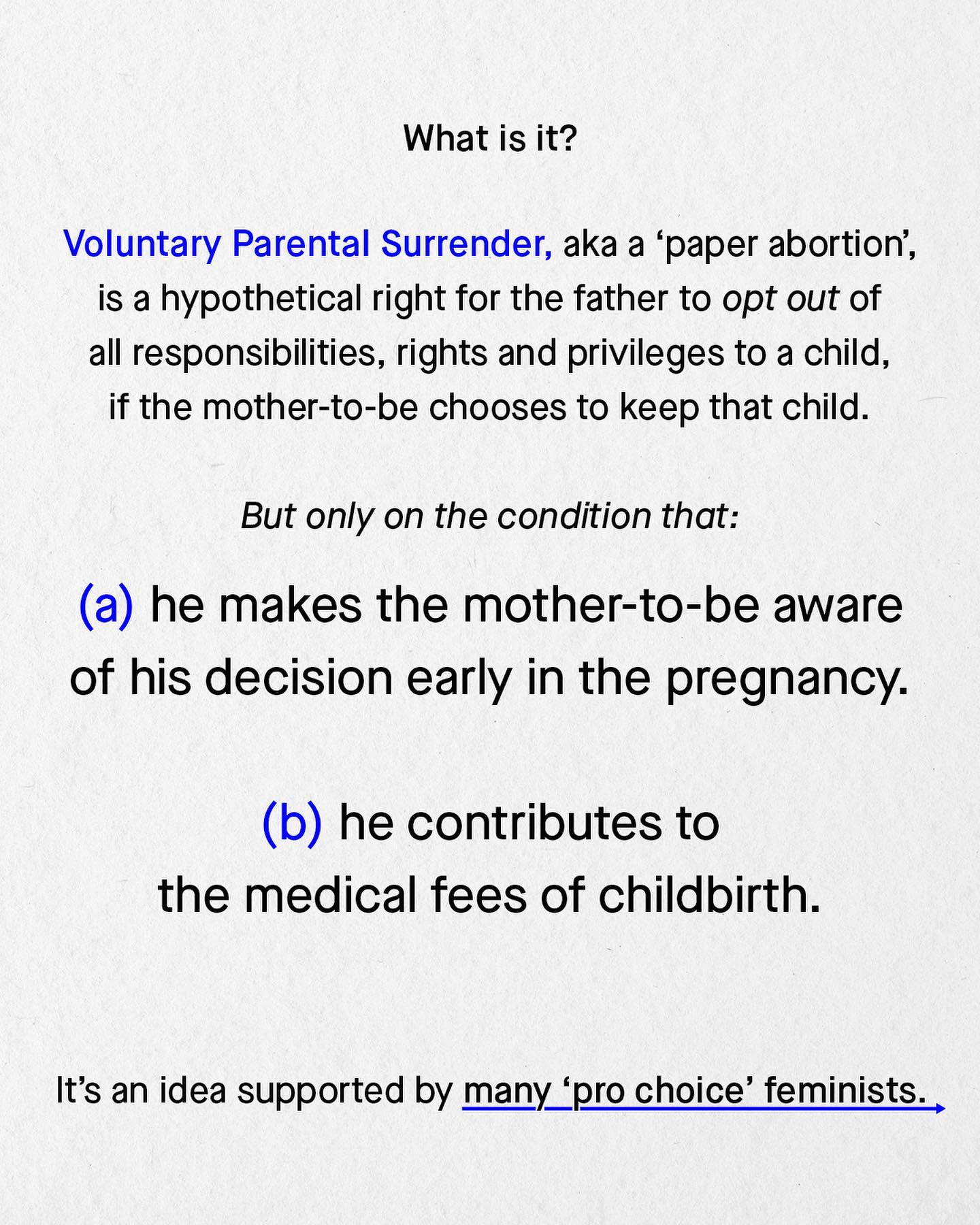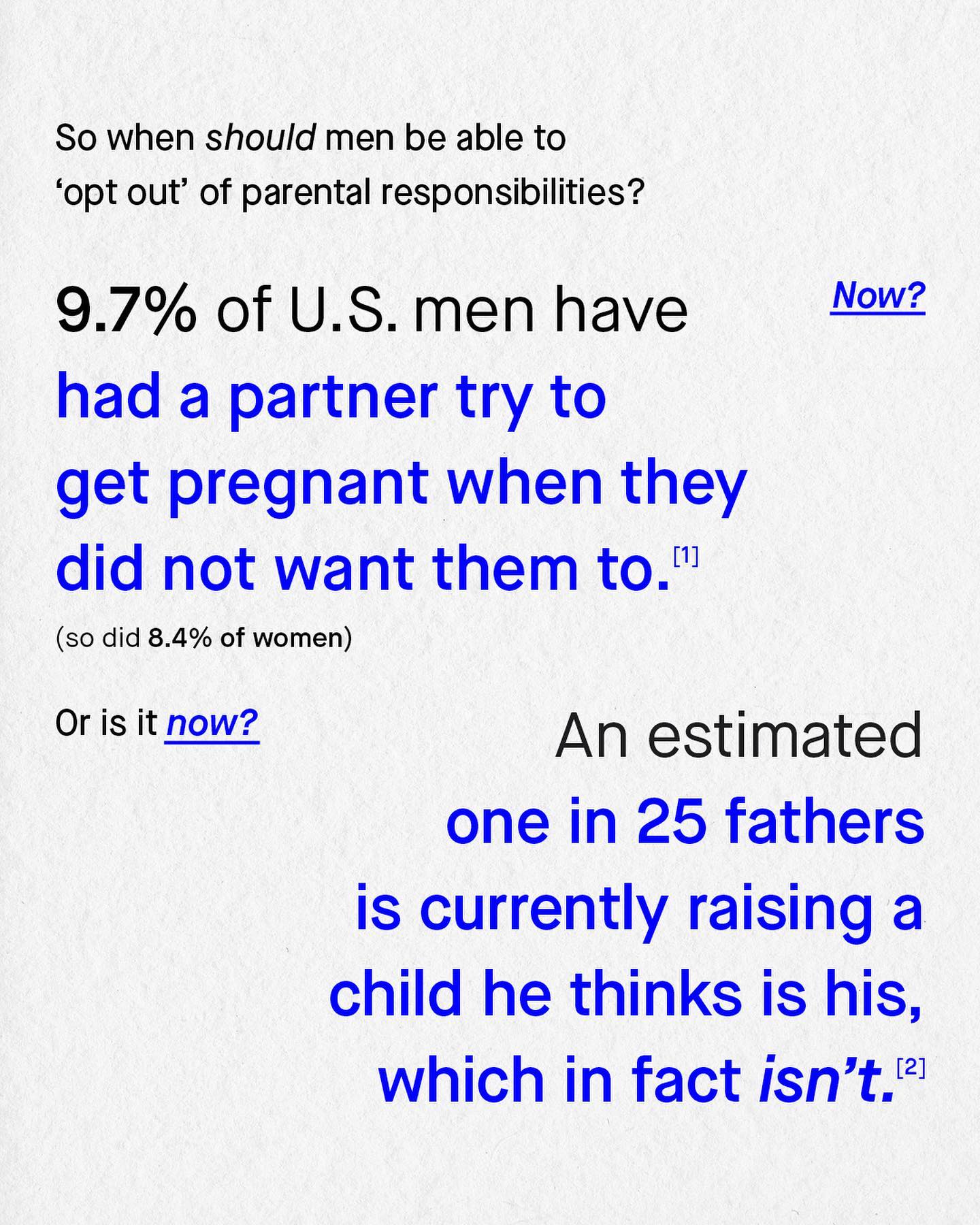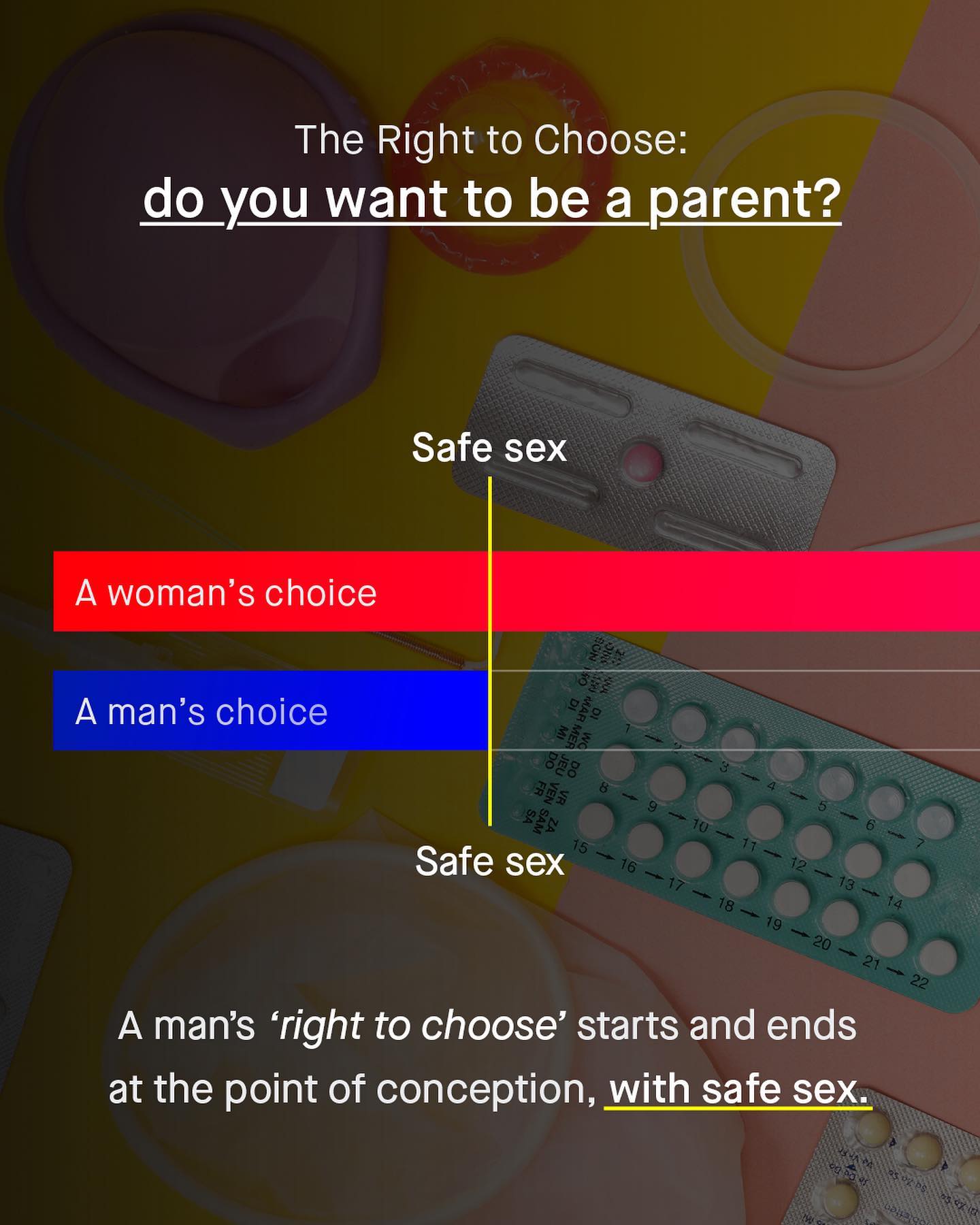 Good parents are those who have chosen to become one. It’s one of the many reasons why I consider myself “pro choice”, because the more autonomous and free the parents, the happier and healthier their children usually are. And yet, the decision of ‘choice’ only even seems to talk about ‘women’s choice’, and never mens’. Whilst advocacy for ‘reproductive rights’, only ever seems to make it as far as reproductive rights… for women. So what about reproductive rights for men? I know, people often scoff and interrupt at this point, with cries of ‘men already have all their rights!’ But do they? For after conception, what choice do men actually have as to whether or not they become a father? None. That man is coming along for the ride, whatever that may be, whether he likes it or not. His choice to parenthood is over, and he can (and often will) be legally compelled to be a father, and to financially support the child for the next 16 years, or face prosecution. Meanwhile, the woman will often have access to the “morning after pill”, abortions, or even Safe Haven Laws; giving her access to the most amount of choice possible, and thus she is allowed to ‘opt out’ of parenthood long after conception, and even after birth. And I support such freedoms. But can we find a way to give such freedoms to men too? For in a society highly based on choice, why should a man pay the price for a decision he cannot, and should not, have a say in? So how do we give men such rights? Is it time we talked about ‘voluntary parental surrender’? ~ [1]  [2]  Image by Nathan Dumlao, Womaniser Toys, Kiwi Hug, and Reproductive Health Supplies Coalition