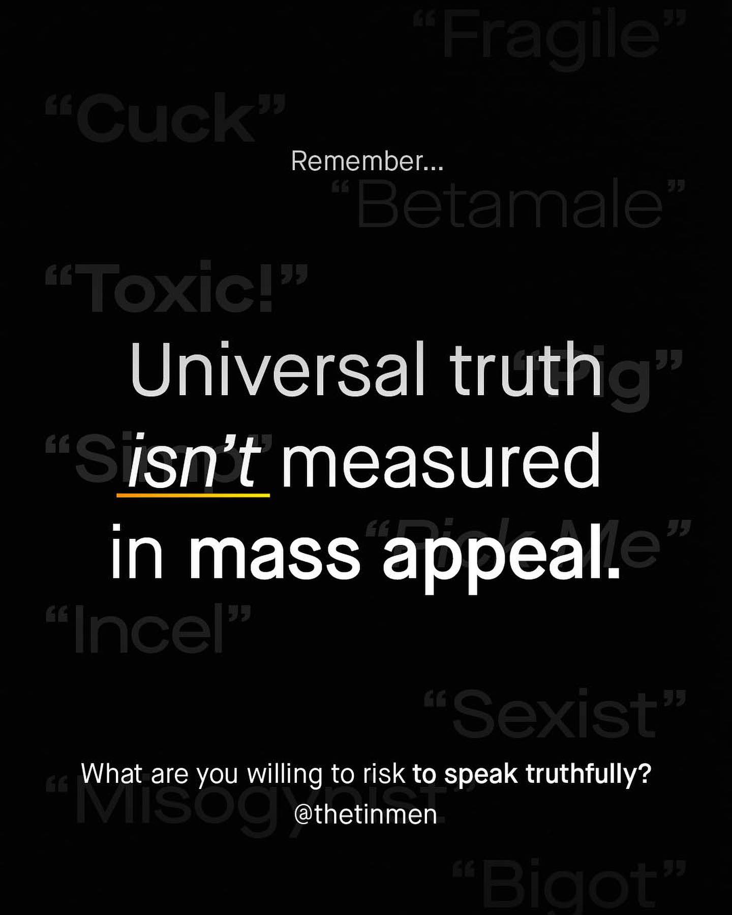 To exist in this space, is to accept you are going to be called a lot of silly names. Incel, pick-me, misogynist, bigot, neckbeard, toxic, virgin, pig, simp, and so on, and so forth. The merry-go-round of yawn-inducing insults is a ride I’ve been on for many years now, and it remains as boring and ineffective as it ever was. The babies stomp their feet, and point their podgy fingers, tweeting themselves into a senseless stupor. But fear not – Such a tirade of verbal abuse continues to act as a teacher of two valuable lessons. The first is that personal attacks and insults are only used when a person has no other way of contending with what you’re saying. It is the death rattle of intelligent and thoughtful discourse; civility has abandoned this person, and the only thing that remains is a long list of ad hominems. The second lesson is that such bigotry teaches us how *not* to behave. An “anti-role model” to how we should conduct ourselves when talking with people with whom we disagree. A chance to be better - to be the adults in the room. To respond not with our own arsenal of insults, but to choose the path of grown up questions and civil discourse, and to set a better example. For they have already lost the argument, and you should not join them in the festering stench of their own failure. Being insulted is okay. And you should not allow those who unfairly use such a weapon, to quieten your voice. So what is to be learnt from the bigoteers, and what price will you pay to speak truthfully? What do you think? ~ Images by Miguel Burn, Allesandro Bellone