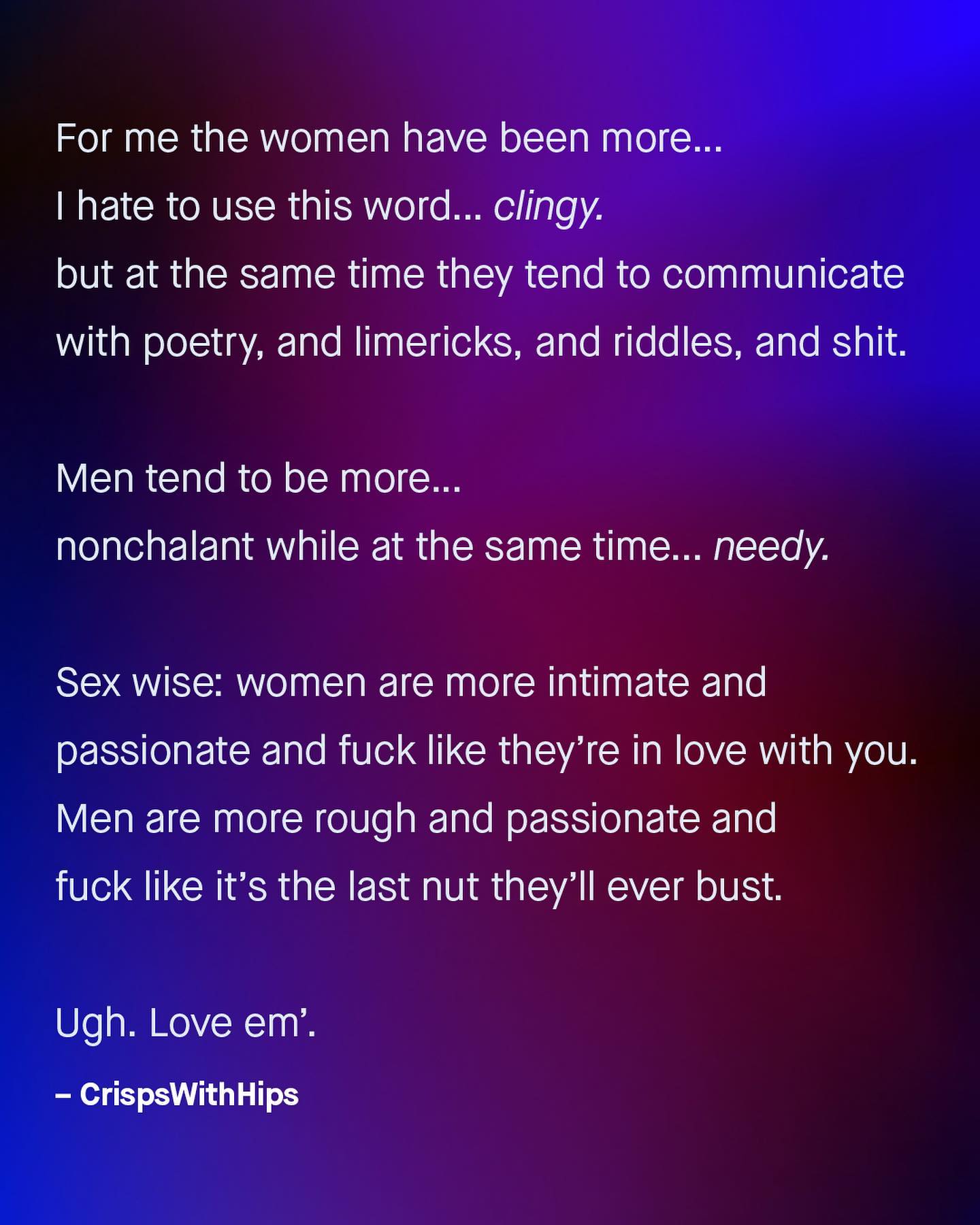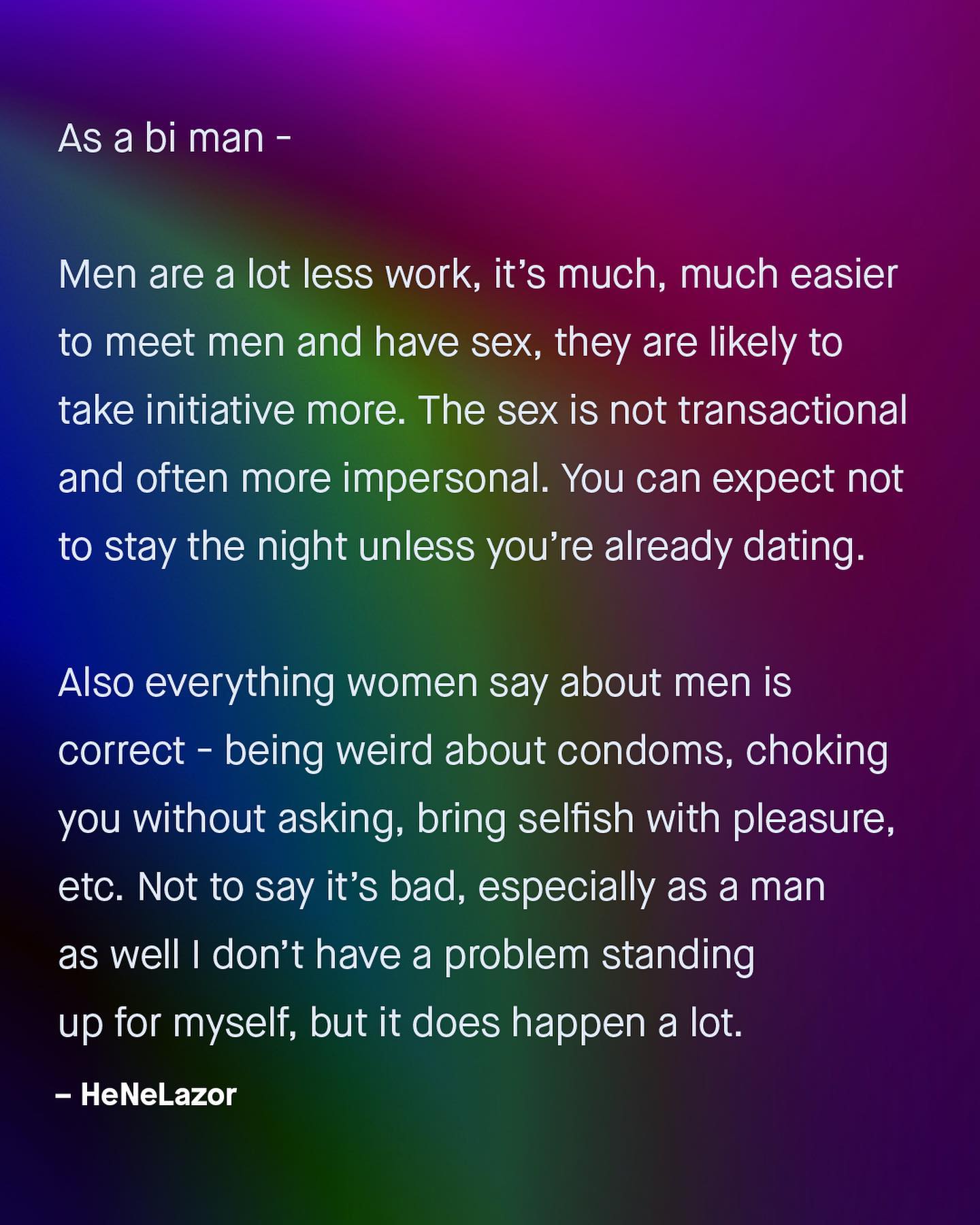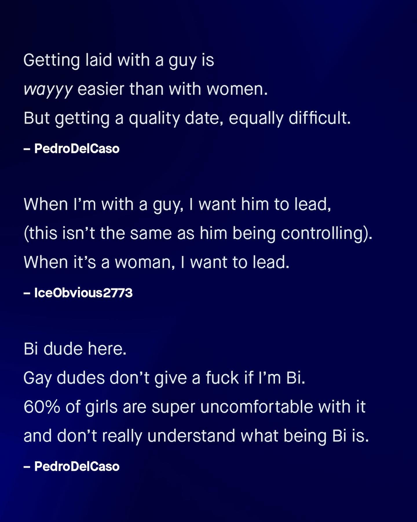 We all have our own dating-nightmare-stories; tall tales of boredom, self centredness, endless bombardments of talk, and sometimes, just straight up oddity. As we try to help each other understand what it’s like to date a member of the opposite sex, I have often wondered why bisexual people are not centred in such conversations – might they hold the key, having dated those from all walks of life? What do you think? ~ #datingadvice #guytalk #datingtips