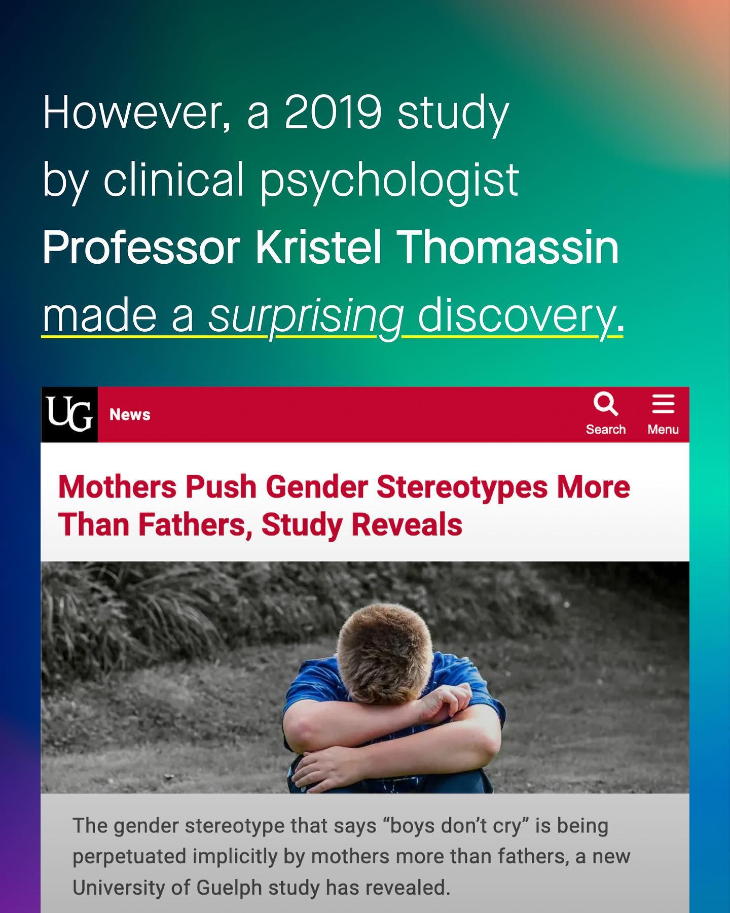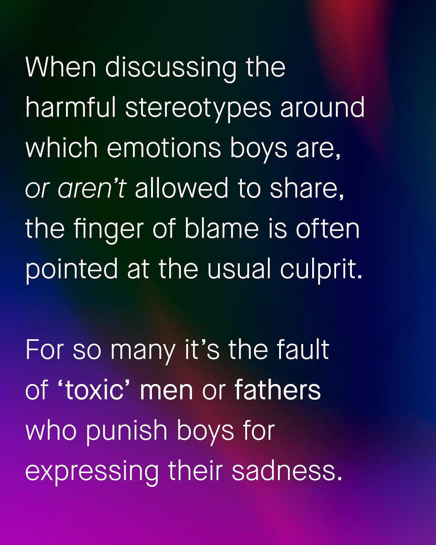 ‘Boys don’t cry’, has been a painfully real gender stereotype that has suppressed the full gamut of male emotional expression for generations. We are, it seems as a society, uncomfortable with the idea of male sadness, or male weakness, or male fear and vulnerability. Naturally, as it so often is, responsibility for this problem is thrust upon the laps of men and fathers, with yet more catchphrases of ‘toxic masculinity’ this, ‘patriarchy’ that. But I’ve always wondered why mothers are so rarely part of this discussion, they are after all the parent who spends the most amount of time raising and socialising children. Are mothers simply immune to gender stereotypes themselves? Are they any less human, or flawed, than fathers? So it was interesting to read the recent research of Professor Kristen Thomassin who found that mothers do actually play a central role in perpetrating harmful gender stereotypes onto their sons – however like all of us, they just aren’t aware of it. So - is it time, for the sake of our boys, that we put down the swords and shields, ended the gender war, and each accepted our own portion of responsibility for the problem? Is it time we stopped shrieking meaningless catchphrases, stopped pointing our fingers and shaking our firsts, and actually talked about how we *all* are active participants in this society? So tell me about your childhood, what emotions were allowed, which ones weren’t, and why? ~ Study University of Guelph Globe and Mail Images by Nathan Dumlao, Gradienta, Kat J, Artem Nedzelskiy, Andrew Neil, Finn N, and Kiwi Hug from Unsplash. Illustrations by Alice Noir and Alex Muravev from Unsplash. #boysdontcry #boyscancry #genderstereotypes #psychology #mencancry