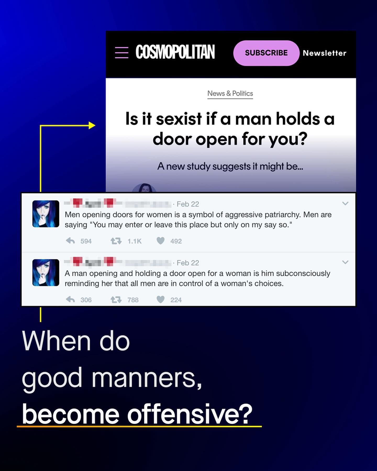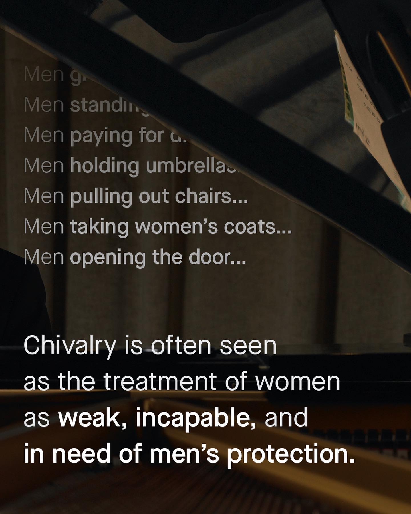 For as long as human beings have existed, so has sexism. And one of the earliest vestiges of this gendered treatment - of women in particular - is chivalry. Chivalry (comes from the French word chevalerie, meaning cavalry), was originally a noble set of ideas that dictated how a knight should behave. Such guidance encouraged these heroic men to become servants of others; offering assistance, help, and protection when appropriate, to those who might need it. Chivalry also ratified good manners, dignity, and the highest respect of others. Over time, such ideas descended down from literal knights in shining armour; to be adopted by all good men, to encourage them to act with similar dignity too, to preserve good manners and yes, promote servitude of women. And yet, whenever I see acts of chivalry discussed; it is so often with an entitled sneer, and mutterings of ‘misogyny’, or a rather backward concept of ‘benevolent sexism’. That’s right. The oppressive patriarchy is opening doors, hanging up coats, holding umbrellas, and it’s really got to stop. So I ask, what is chivalry, and how do you see it? Is it truly benevolent acts of misogyny, that infantilise women; are they antiquated and outdated acts of male servitude… Or are they… well.. just basic good manners, after all? What do you think? ~ Images by Kiwi Hug, Kate Kasiutich, Craig Whitehead, Gradienta, and Tim Mossholder.