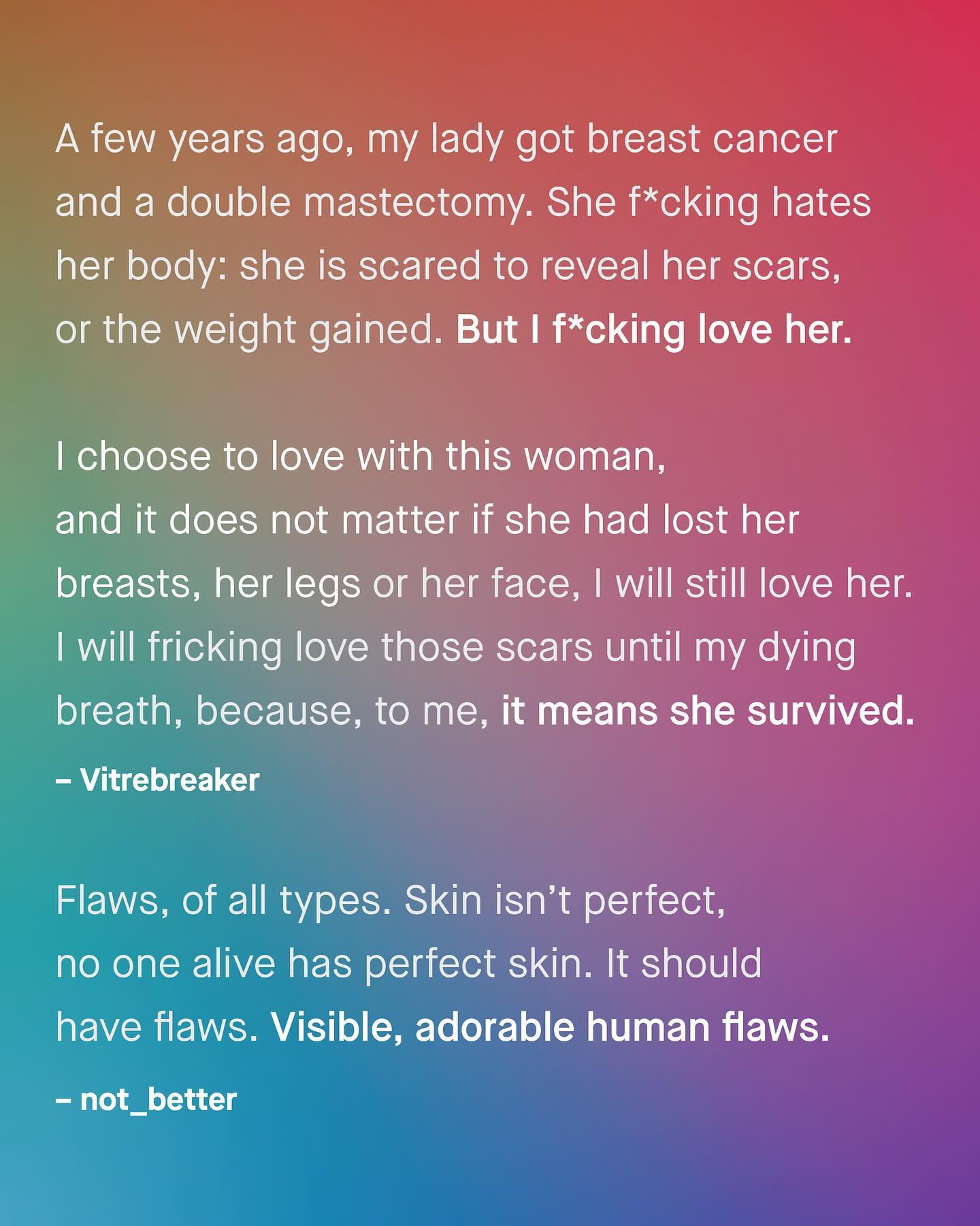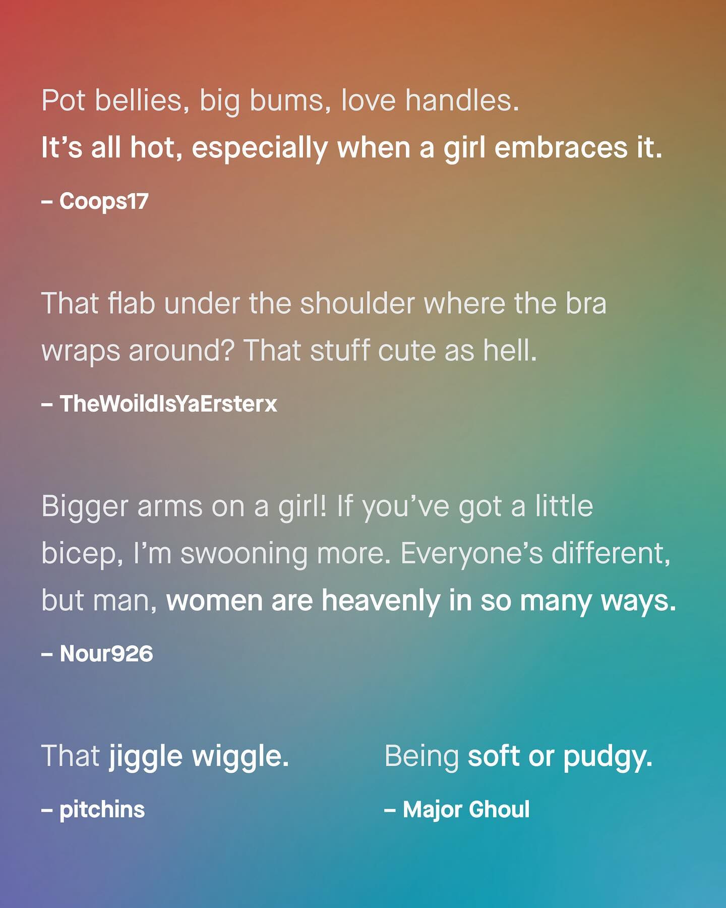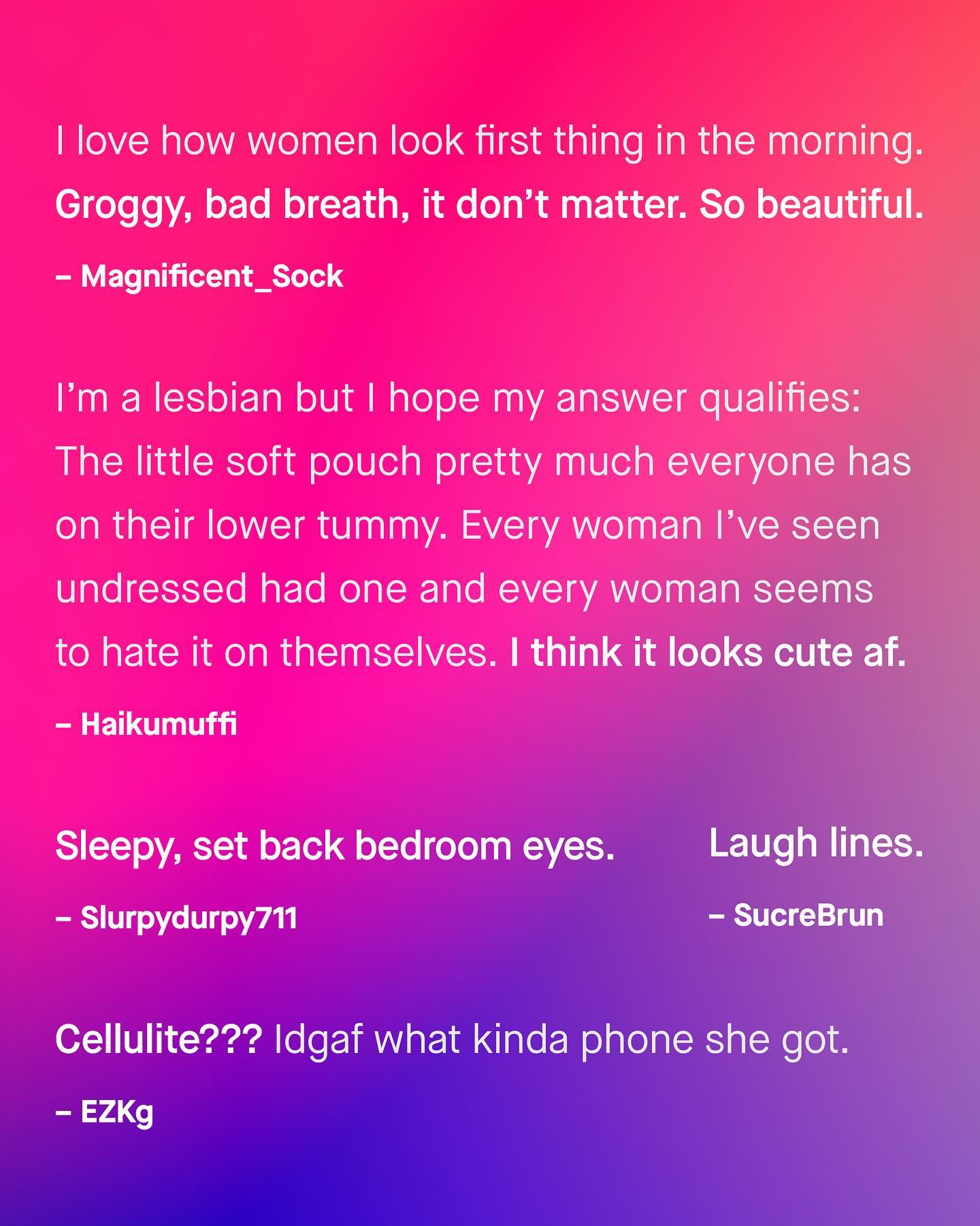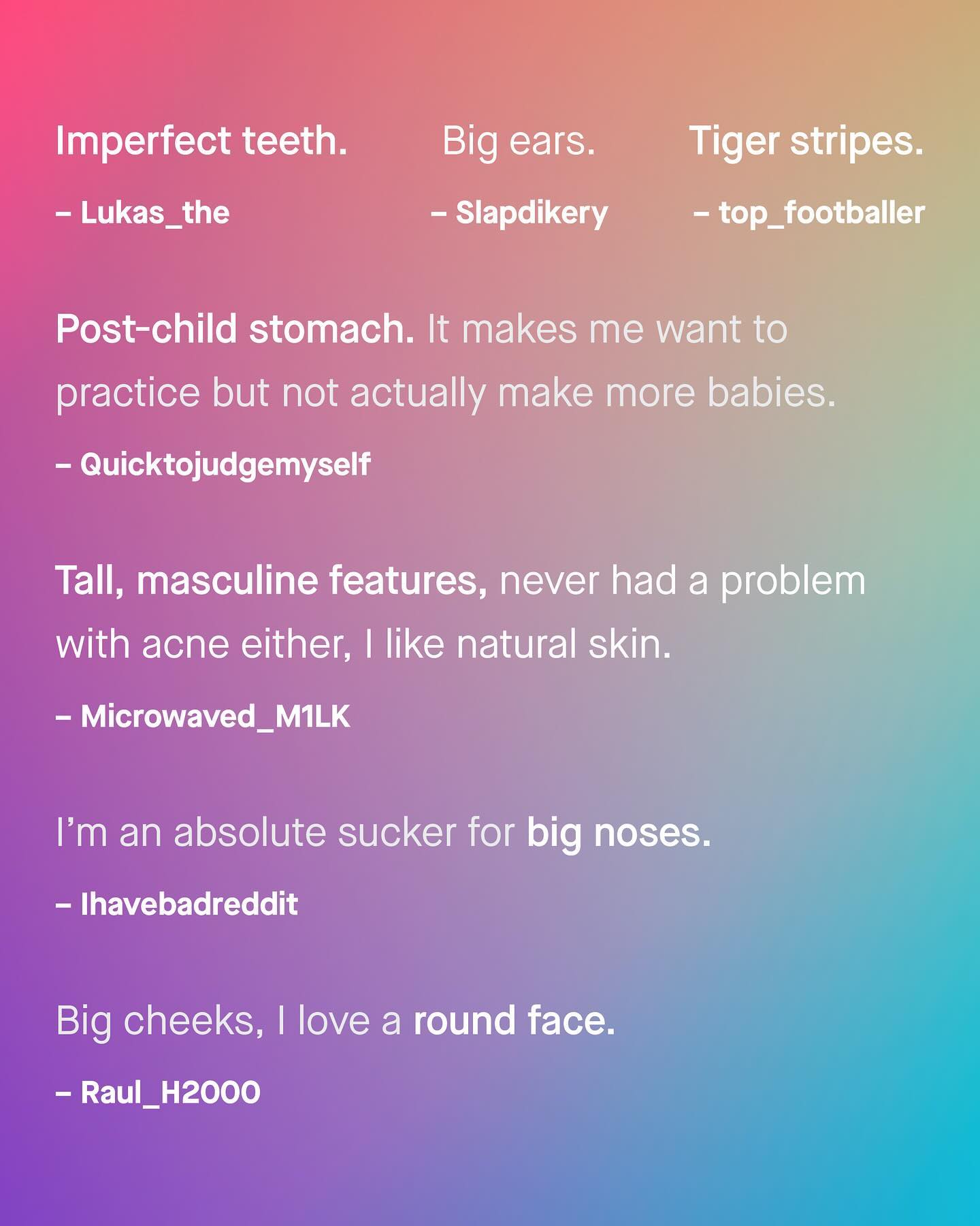 I think every one of us can find something we hate about our bodies. And so often when I move between groups of men and women, to listen to what they do or don’t like about how they look, I find two dramatically opposing points of view. Often I hear that the things women don’t like about their bodies, are the very things that so many men love about them. Stretch marks. Cellulite. Tummies. Body hair. Scars. Labias. Wrinkles. The so called ‘flaws’ of one person, can be (and are) the treasures of another. A blemish you want to hide away, is often the very thing another is searching for, and will love about you - as it makes you unique. I mean, just imagine everyone looking the same, it would be boring. And you are not boring. You are you. So with that in mind, I want to ask the men: what are the things some women hate about their bodies that you actually love? (And yes women, feel free to answer the opposite.) #womenempowerment