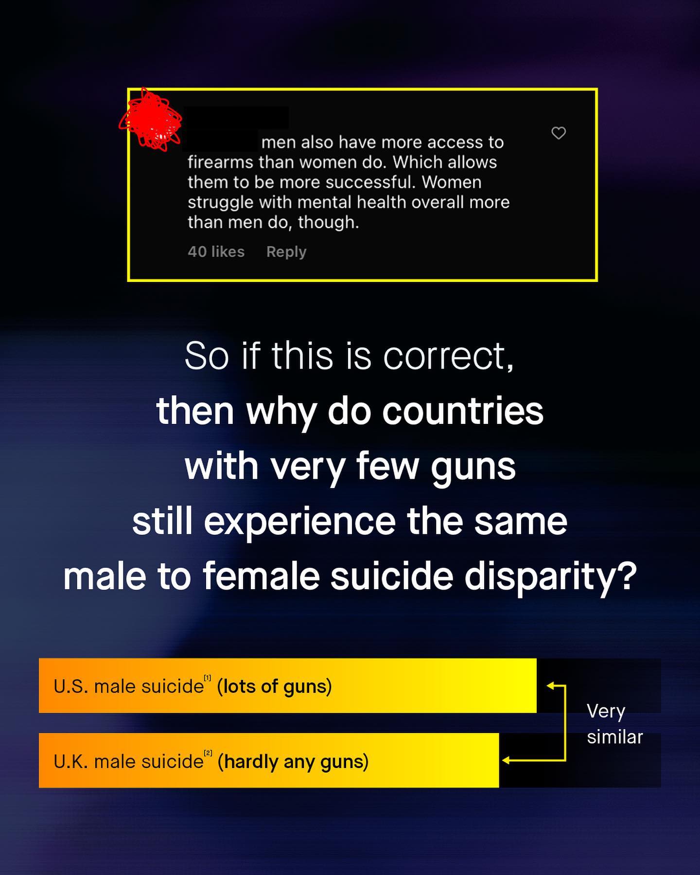 To see male suicide kicked around like a political football, by a bunch of entitled brats on Instagram is extraordinarily demoralising. To watch tragic loss and bereavement be clawed at, disrespected, denied, and deliberately misunderstood; to see such pain politicised, and suffering weaponised is the pits of human behaviour, dignity and shame. You know it – “toxic” this, and “patriarchy” that. Misinformed malefactors who spout soundbites of, “well women attempt more”, or “men are more selfish in suicide”, and other stark expressions stupidity, reminds us all of the damage done when ignorance and arrogance collide inside the brain of an imbecile. I am not unfamiliar with undoing myths around men and boys advocacy, but never have I found such a process more heartbreaking than in the issue of #malesuicide. Worse – our lost men and boys to suicide are being turned into pawns to be used by a small (but growing) contingent of bunkum clinical psychologists, as they forgo their duties to prop up propaganda, to fan the flames of their own ego, and hammer the wedge of division further and further between us. They are the heroes of their own story, and nobody else’s. And no doubt these realisations of the harm they do is beyond them. But it is not beyond you. Compassion is off the table of such brittle bigots, but it is within your reach. A conversation of inclusion, of data and research, cannot be had by them, but it can be by you. Yes you. It won’t be them or I who will tell the story from here, but you, and you can do so much better. So let their poor example be a lesson for all of us. Let their low IQ, low resolution bigotry fade into the history books, and let their whines be written about with shame. Let their cries of victimhood become an embarrassing stain on their life. Let the facts that bounce off their thick skulls, swim and swirl in yours. Let their ignorance inspire you. Let’s talk about male suicide. ~ [1] [2] Study 01 Study 02 Images by Codioful, Luke Jones, Ray Zhou, Zohre Nemati, Albert Vincent We and Luke Chesser. #malesuicideawareness