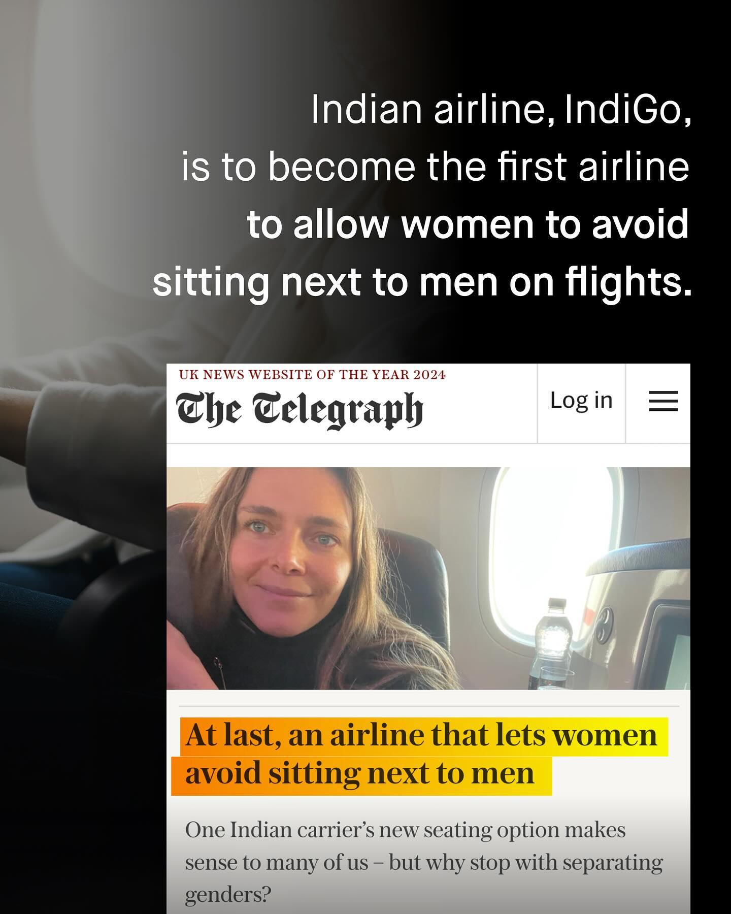 Major airline IndieGo is to become the first in the world to give its female passengers the ability to avoid sitting next to men. Whilst many whoop and cheer, to me, this seems like a deeply regressive policy change, that wouldn’t look out of place in 19th century Jim Crow era America. Maybe I just missed the memo… One that warned the world that men are actually predators in waiting, secretly desperate to sexually assault whoever straps themselves into the seat next to them. You see that guy snoozing quietly, benignly eating peanuts, tapping away on his laptop, or agonisingly sitting through Lord of the Rings on a postage-stamp-sized screen… don’t be fooled… its a ruse… he’s dangerous. It seems like airlines needn’t take the safeguarding of their passengers seriously: why carry out criminal record or SA offender register checks, when you can simply tar all men with the same predatory brush, and pat yourself on the back for your ‘pioneering’ policy change? I’m bored of it. The world is full of performative policy that claims to combat worthy issues, but ends up doing nothing, and can even harm the very cause it claims to want to help. So I ask, if we are to treat male passengers differently, why stop there? What about black passengers? What about muslim passengers? What about gay passengers? Will we be treating them in the same way? Where does the pearl clutching paranoia, masquerading as ‘pioneering policy’ end? Sadly, those of you who are men, know as well as I, that this is not a new idea. It is simply the enshrinement of a gloomy, unfair, and all-too-familiar cloud that follows us round for our entire adult lives, raining hysteria and moral panic upon us. Man is bad. Man is dangerous. Man is a wild animal, quite literally more dangerous than a bear, I’ve heard; so who would want to be strapped into a chair, for several hours, next to one of these monstrous beasts? The language is as compelling as it is stupid. As alarming as it is useless. As as ‘pioneering’ as it is bigoted, sexist, and deeply anti-male. What do you think? - Images by Getty, Lukasz Lads, Kamran Abdullayev, and Ben Iwara.