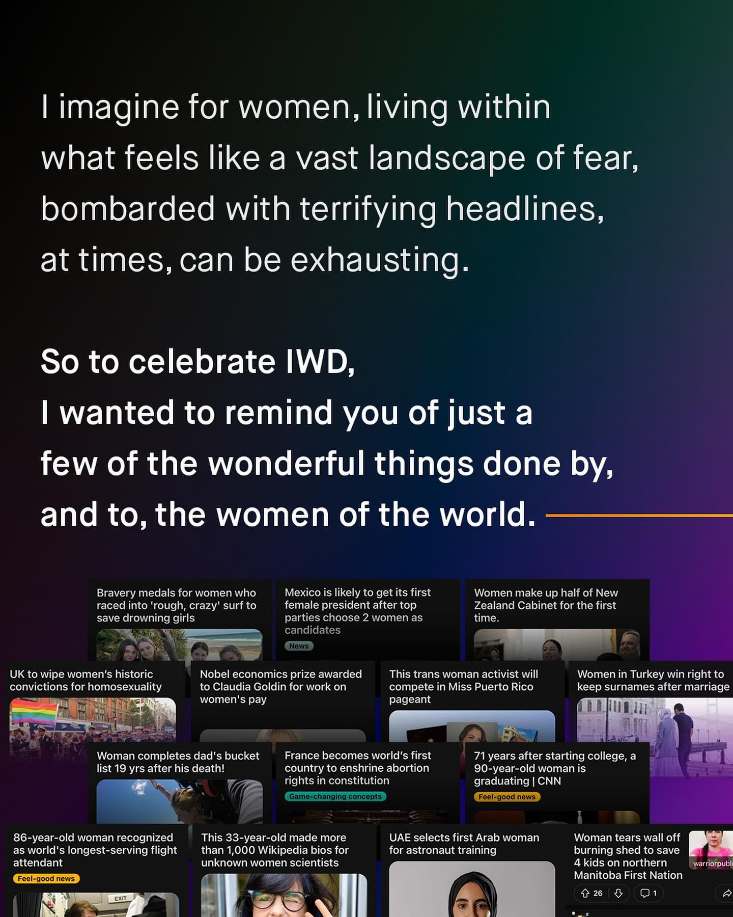 Today is International Women’s Day, a time to celebrate the wonderful women in our lives, and to acknowledge and advocate for the important issues they continue to experience all around the world. I have always been an advocate for women’s rights, and a person blessed with too many amazing women in my life, to even count. And today is for those women. The beliefs and political opinions of this page are not predicated on dragging women down; minimising their lived experiences, vilifying them, or denying the importance they play in our lives. I have seen pages do this to men, and the results are not ones I want to imitate here. And I know… I do not post as often about women, and their painful journeys, but this does not mean I don’t care just as much about these things too. For ‘equality’ achieved by yelling and throwing eggs at the other side, is no kind of equality I want to be part of. For me, today is a reminder of that too. That we are in this together; and that no problem, big or small, for either side, can be solved alone. We need each other. And we need women. We need their unique perspectives, we need their passion and ferocity, we need their calm and intellect, we need their compassion and diligence. Because only weak men cannot acknowledge the strength of women. And the vibrant history of women’s rights, is a centuries long lesson from which we can all learn, and must learn, if we are to catalyse social and political change. Whilst to deny such strength, is to deny half of your greatest allies, half of your most important role models, and half of your fiercest warriors. So today is for you, our women; our teachers and heroes, our partners and family, our allies, our teachers, and above all, our friends. Happy International Women’s Day ~ Images by Getty #internationalwomensday #iwd #womensday #internationalwomensday2024 #womenarestrong