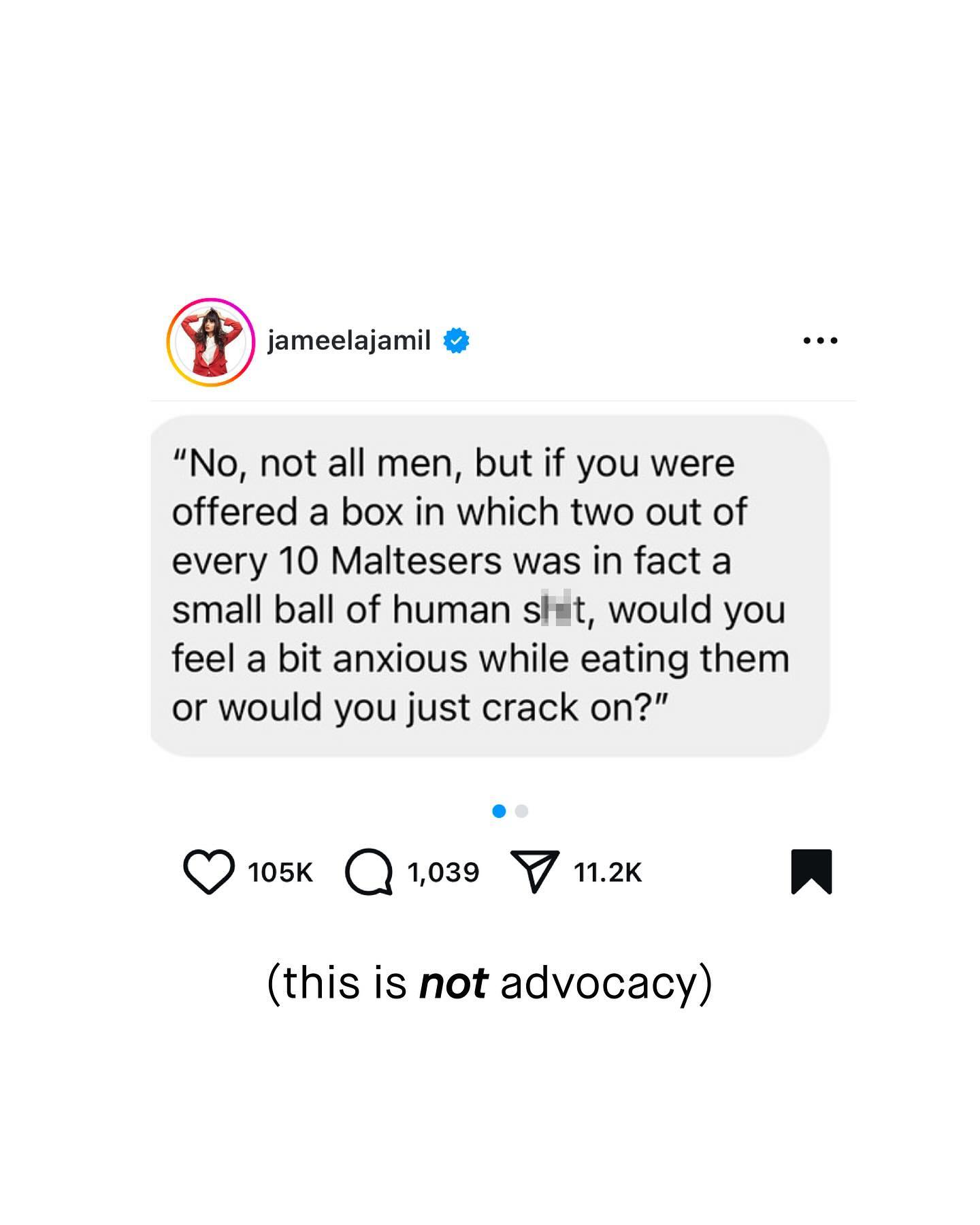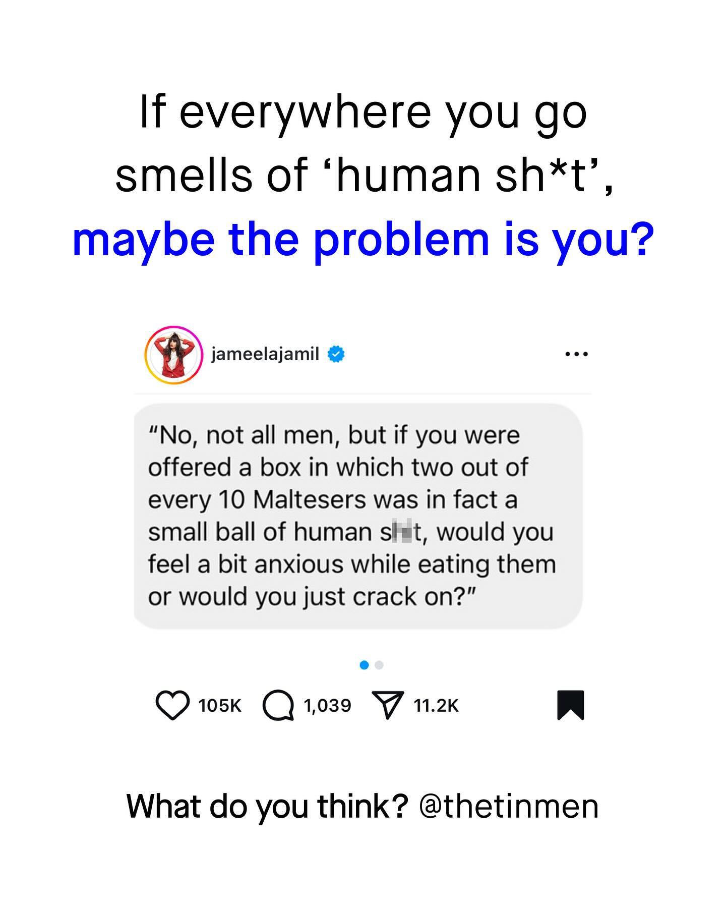 I am not surprised by the number of awful takes when it comes to ‘male violence’. I am not surprised by the spectacular, Olympic-gold-winning backward somersaults of mental gymnastics people are willing to perform, to try and justify their distain for ‘men’. I have grown accustomed to the outrageous, alarmist, and down right manipulative thought experiments that litter social media, comparing ‘men’ to any number of dehumanising objects or animals. Whilst these things are still shocking, they are unsurprising, as they remain part of a daily bombardment of stupid, narcissistic and statically unsound ‘hot takes’ on men, that so many of us are now numb to, and bored of. However, I am surprised, by how many people are able to spread such bigotry under the unquestioned guise of ‘advocacy’. I am blown away, at how the most grotesque vitriol can drip from the mouths of people who have simultaneously managed brand themselves as the voice of compassion and kindness. Is that what this is? Such people, whose ideas, once written down and examined, are truly awful things to say, closer to propaganda than progressivism; that are despotic, bigoted, and quite literally out of the N*zi handbook of dehumanisation. How are some of the worst people in the space of gender equality, able to self-aggrandise themselves as the voice of kindness, whilst simultaneously being the complete opposite of such a thing? It’s hard not to be impressed – mesmerised even – at the marvels of branding, good looks, and confidence. But the words speak for themselves. There is simply no way that any other group of people would be so freely compared to ‘tiny balls of human sh*t’ by a household name, to such back slapping, rapturous applause… and yet Jameela Jamil, and her endless effervescent charisma, have managed to do just that. So do you find these thought experiments helpful, grown up, and evidence based? Or do they just create more panic, stoke more fear, and deepen the divide between us all? When will we demand a higher level of discourse, most of all from those leading the conversation? What do you think? ~ FBI Data Census Data