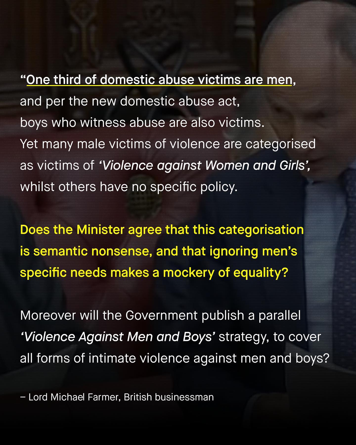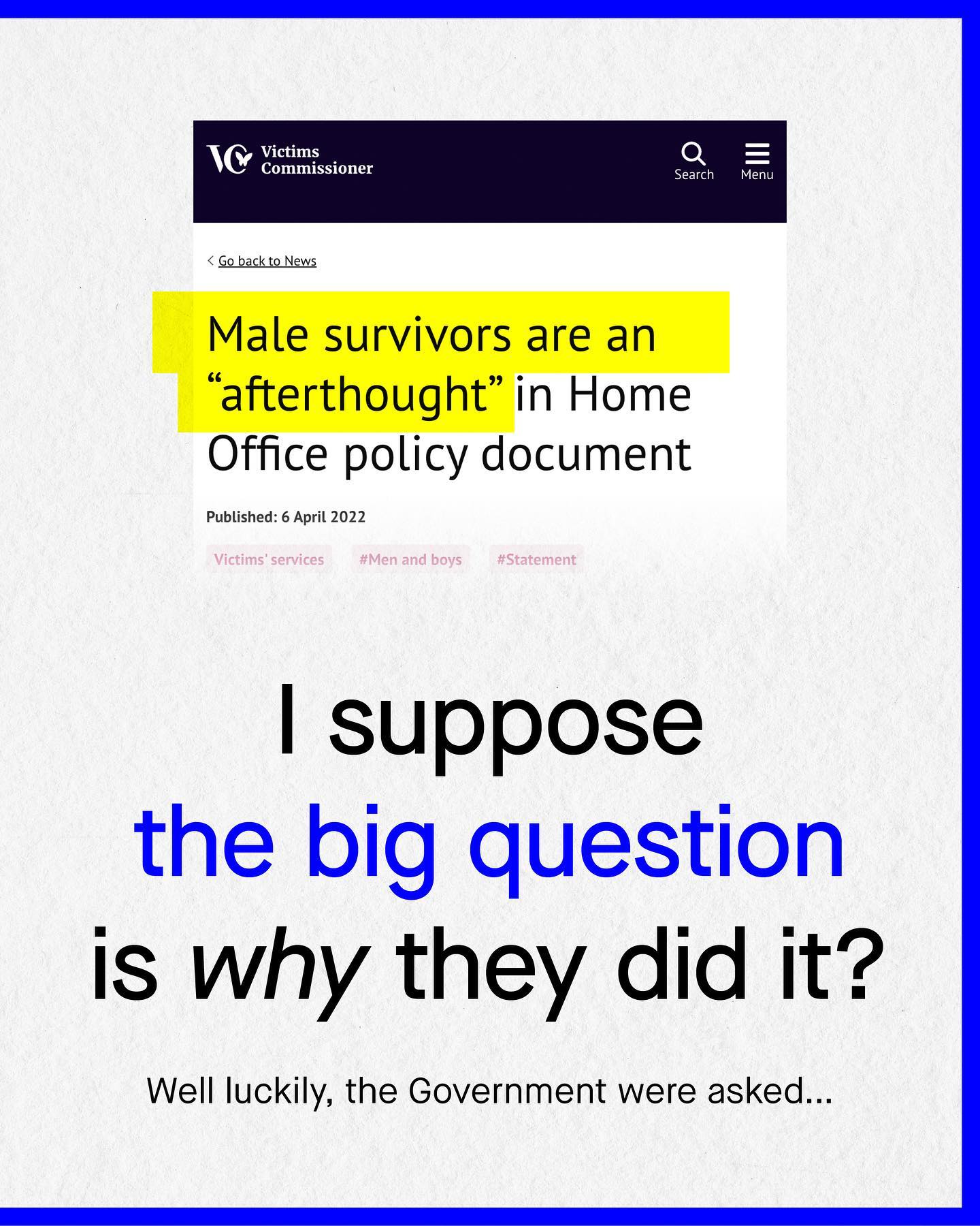 There are 2.9 million British men being misgendered by their own government. 2.9 million. That’s how many male victims of abuse there are in England and Wales, and all of them are officially categorised as women. ‘Male victims of crimes considered violence against women and girls’ to be precise. That is the name of the infamous policy document that the Government released this time last year to ‘destigmatise male victims of abuse’. An objective it failed quite literally on its own front cover. Take a moment to imagine how invalidating it must feel, for a man who is being abused to be considered a victim of violence against women? And this is not just a semantic thing. The whole way we help (or exclude from help) vulnerable men and boys follows this mental gymnastic dogmatic nonsense. For like the title of that document, the narrative is just as one sided; there is no help, no specific interventions and virtually no shelter for men at all. These millions of abused men are the ugly and inconvenient truth, stuck to the shoe of our domestic violence industry, that is being trodden across Westminster. And it humiliates us all. The only thing more shocking than this bogus categorising of men and boys is the answer given to “why?” And the words of our very own Minister of State for Home Affairs say everything – they’re scared. Our own Government are scared of sticking up for abused men and boys, scared of fulfilling their obligations as politicians, and as human beings. Worst of all, they are scared of the domestic violence industry itself. It’s a mess, and one nobody wants to talk about. So what do you think? ~ Source [1] Image by Camila Carvalho, Kiwi Hug, Gradienta, Dan Cristian Padure, from Unsplash. #domesticviolence #malesurvivors #mensissues