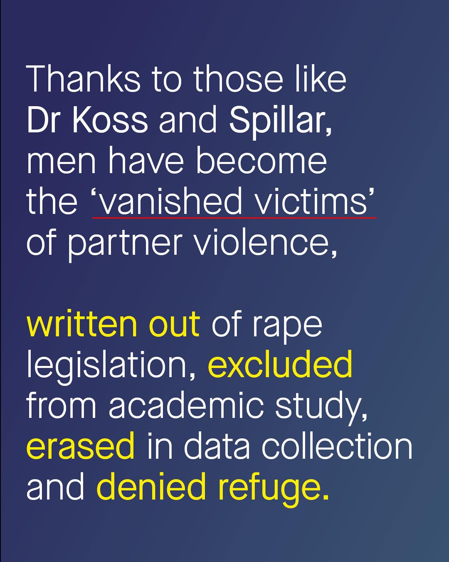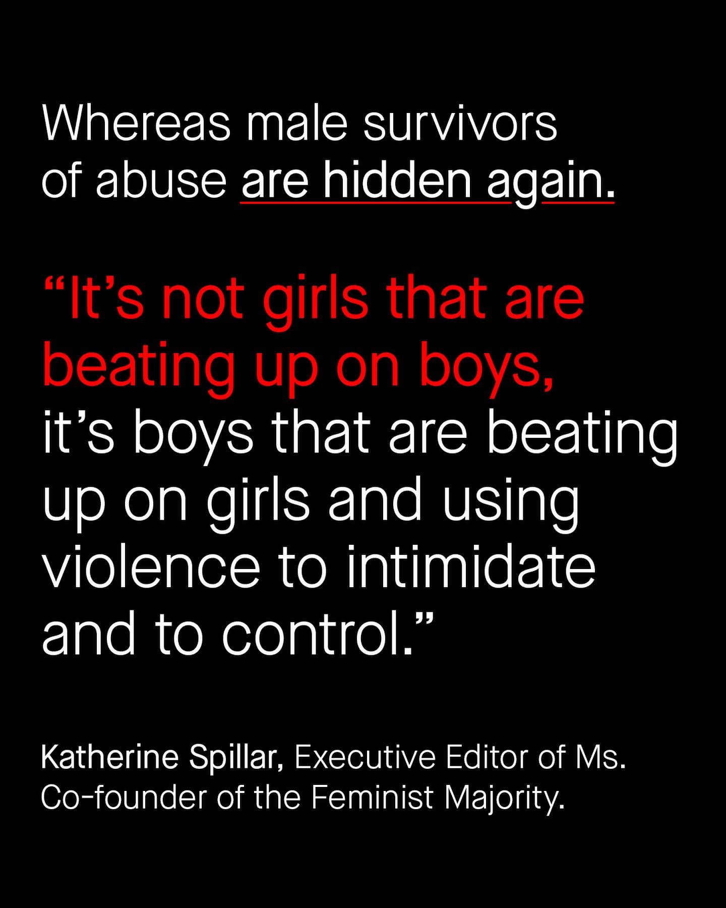 No equality movement should be based on denying reality and the painful experiences of another. And yet we’ve seen it time and time again from feminist voices in certain feminist spaces; minimising, or flat out denying the existence of male survivors of domestic and sexual violence. Katherine Spiller, Editor of Ms magazine, said domestic violence is just a ‘clean-up word for wife-beating, because that's really what it is.’ And Dr Mary Koss, one of the most influential researchers in sexual violence in America, stated it is ‘inappropriate’ to see men as survivors of rape. Both are untrue, but also, how is this *women’s* rights? Why is feminism not just about child brides, FGM, reproductive autonomy or educating girls in Africa? If it were, I’d sign up today. Why is it so often about denying the trauma of men and boys, muddling the data and manipulating the narrative? This is not advocacy. And it’s disappointing to see Spiller and Dr Koss, and the many, many others, not being reminded of such. Because these are not just words of bigotry, they have been highly effective in influencing our policies and laws to exclude male survivors rape from data collection, to deny them refuge in shelters and exclude them from domestic violence strategies and interventions. So when will the beady eye of accountability be turned inward, on itself? When will the ideological dogma be reined in and reinvented, to remind us all of where and why feminism began? When will we see change? Domestic Violence [1] [2] [3]