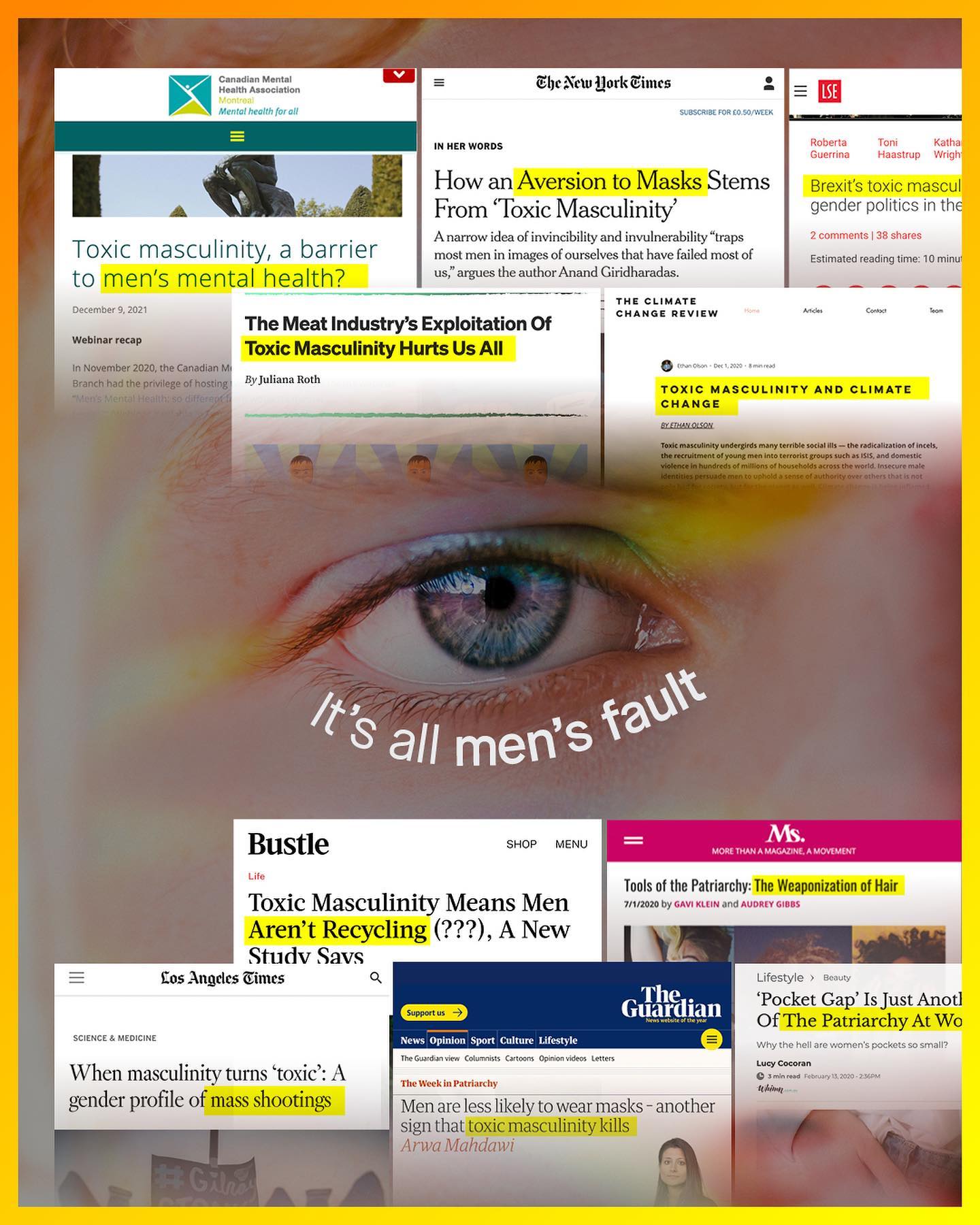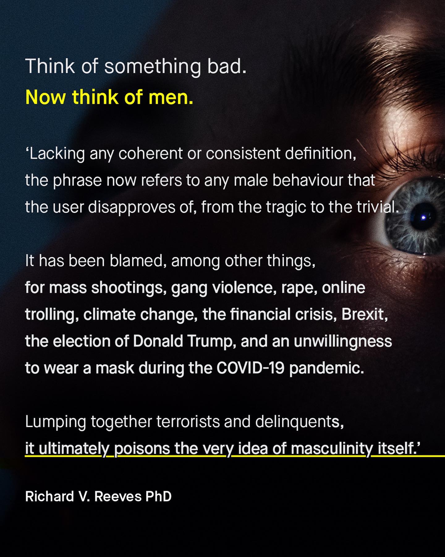 The battle for our boys’ minds did not arrive upon the backs of Bugattis, or in a puff of cigar smoke. No. We did not need to wait for the bombastic squarks of the world’s favourite ‘Alpha Male’, for our boys’ minds to be toyed with, and their heads turned. We’re long past that. The fingers have pointed at, and probed in the brains of boys; told who they are, and what they are destined to become, for decades now. Boys will become one thing: ‘Men.’ Men. A word not spoken, but spat. A word often suffixed by ‘toxic’, ‘entitled’, ‘violent, ‘dog’, or ‘trash’. The word so many love to hate. It’s hardly something to look forward to, or aspire to become. As for so many boys there are no positive male role models at all. Too many fatherless homes, and too few men in classrooms. There’s little to turn to on TV either, and whatever you do, do not turn on the news, or scroll through social media. Men are bad. And over the years, slowly, we’ve learnt to associate everything bad; all bad behaviours, traits, problems, or outcomes, with men too. Even absurd things that have nothing to do with men at all… are now their fault. Does it piss you off how people don’t recycle? Men. What about climate change? It was men. Too few pockets in your dress? Guess what, men took them. What about Brexit? Yeah, that was men too. Don’t ask questions, just think of something bad, now think of men. Do it again, and again, and again. This is how brainwashing works, it starts young, lasts a life time, and happens even without the help of Mr Tate. So is it time we all just stopped telling boys who they are, or what they’ll become? Is it too late to stop the twisted charities marching into our schools to ‘educate’ our boys, so they can perform the apologia of their gender too? Is it time we all stop projecting our own fragility, and ignorance onto innocent children, who are too young, and don’t deserve to be recruited by propagandists into a gender war? How do we let boys, really be boys? ~ [1] Images by Codioful, Dan Cristian Padure, Ian Dooley, Eduardo Barrios, Christopher Burns, Sebastian Mouilleau, from Unsplash.
