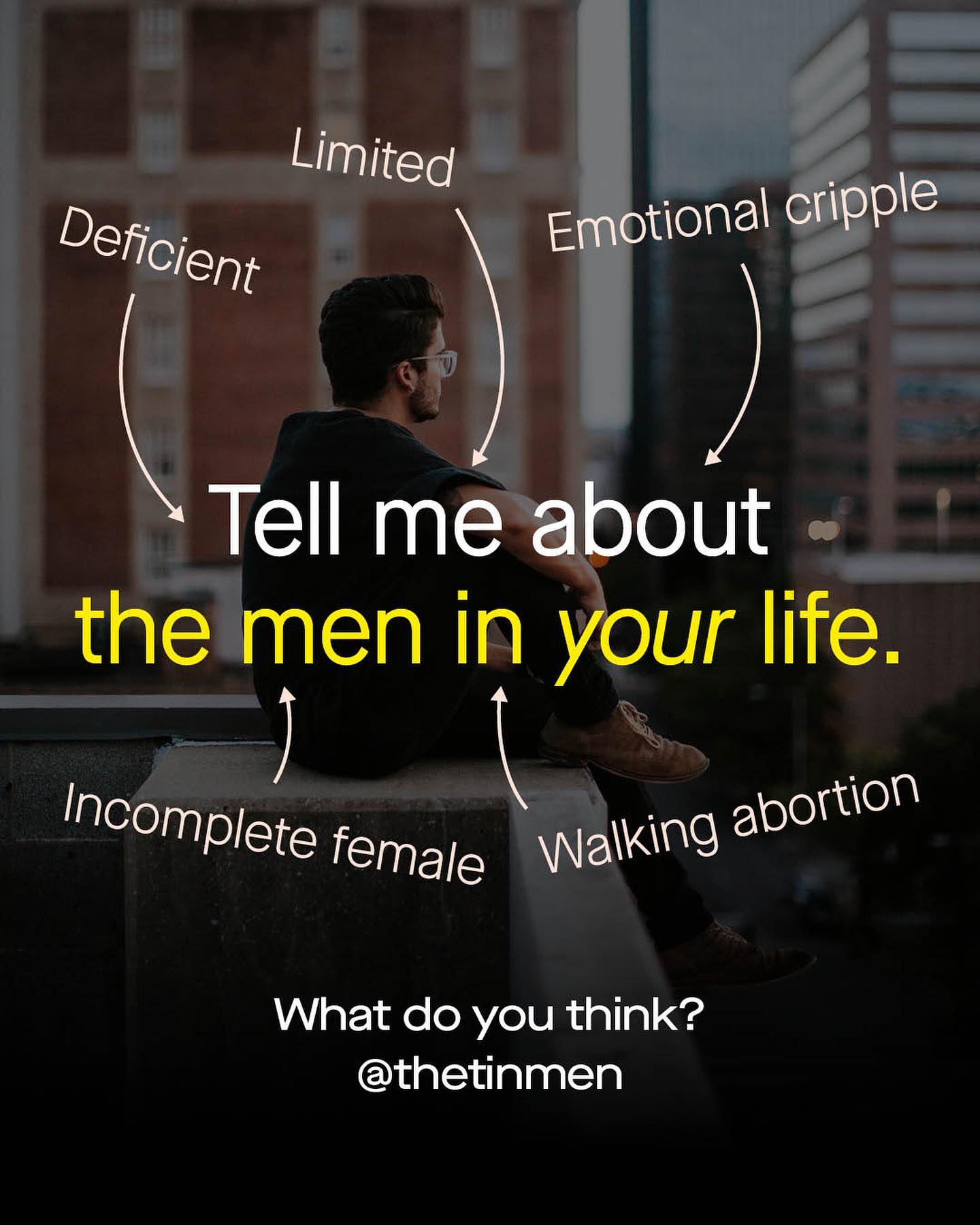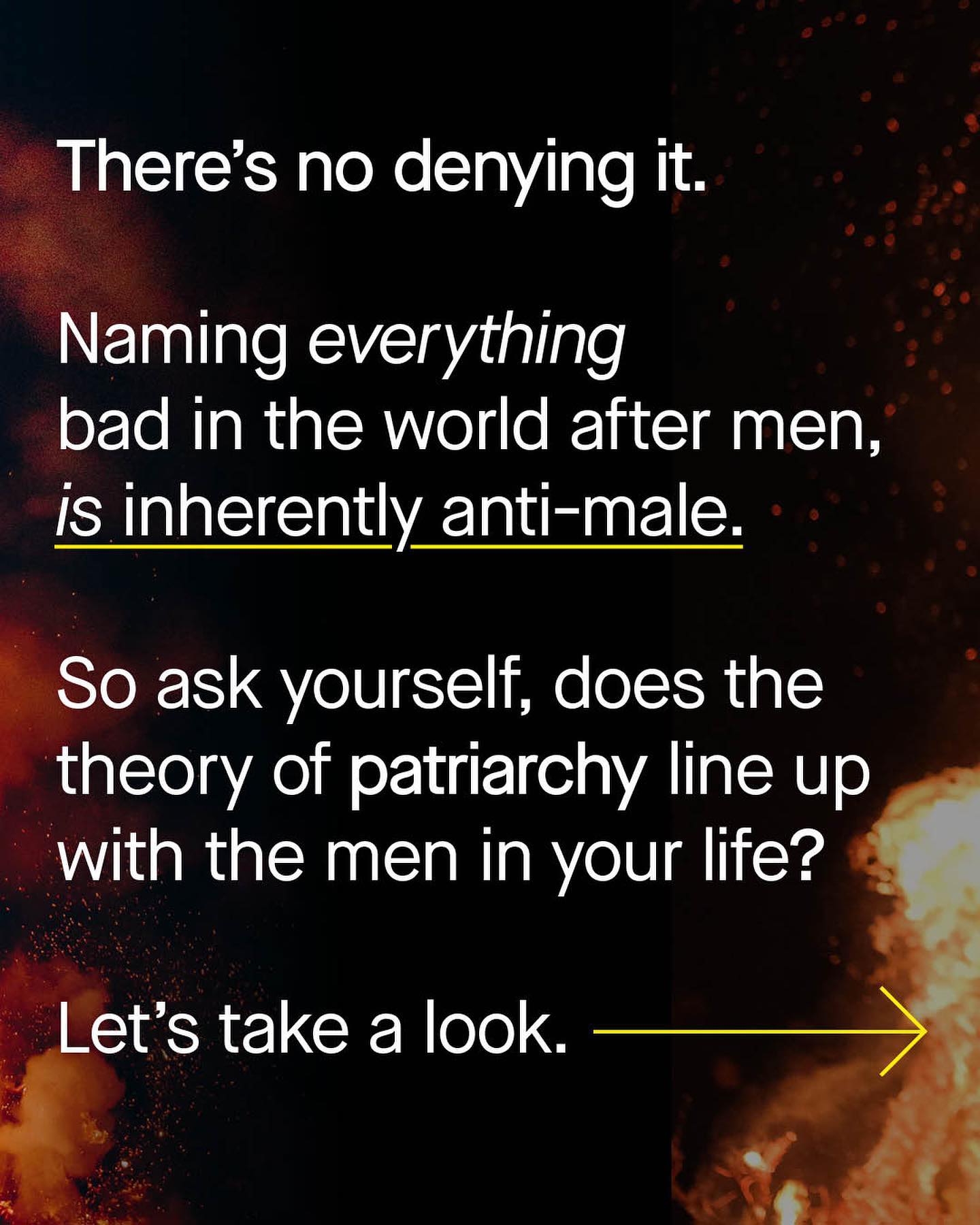 Yes. Patriarchy, as a theory, is inherently anti male. It’s unacceptable. Divisive. And plain wrong. “Oh we don’t blame men! We just name everything bad after them!” This is what happens when unqualified and bigoted malefactors get a hold of the political steering wheel. When critical thinking is abandoned in favour of circular reasoning and recreational victimhood, with discourse guided by people who the rest of us are too afraid to call out, or confront. And our men and boys pay the price - as they are not the enemy (and neither are women). So ask yourself - who are the oppressive, tyrannical patriarchs in your life? And can anyone ever feel truly empowered or autonomous, within such an absolutist and alarmist narrative? ~ Images by Christopher Burns, Toa Heftier, Adam Wilson, Joseph Gonzalez, Hannah Busing and Aaron Andrew from Unsplash.