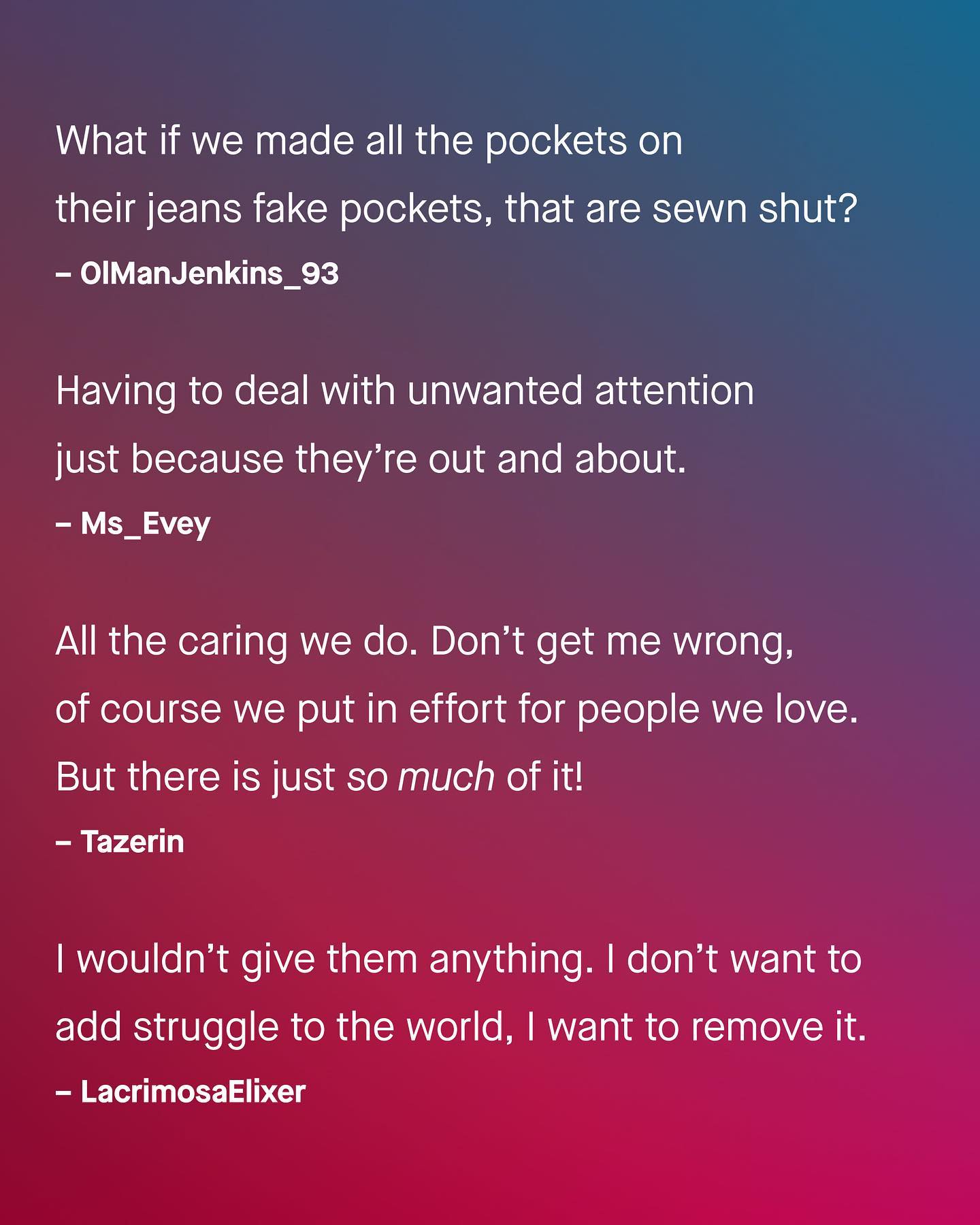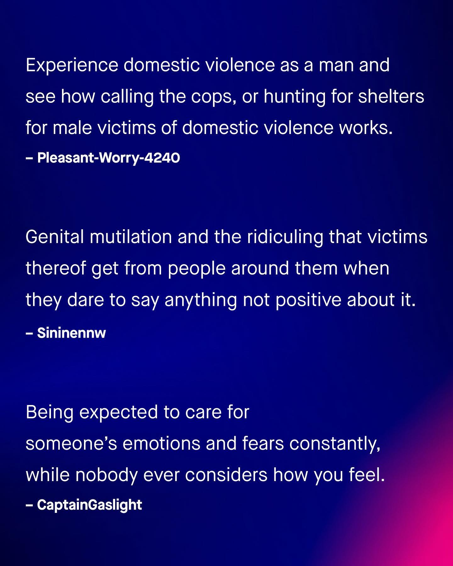 Advocacy starts with good faith. It starts with not only discussing what we do know, but acknowledging what we don’t. And so often, what women can never understand, is what it’s like to be a man - and vice versa. So if there was one issue you think women might better understand if they experienced it for a day, what might that be? ~ Images by Codeioful