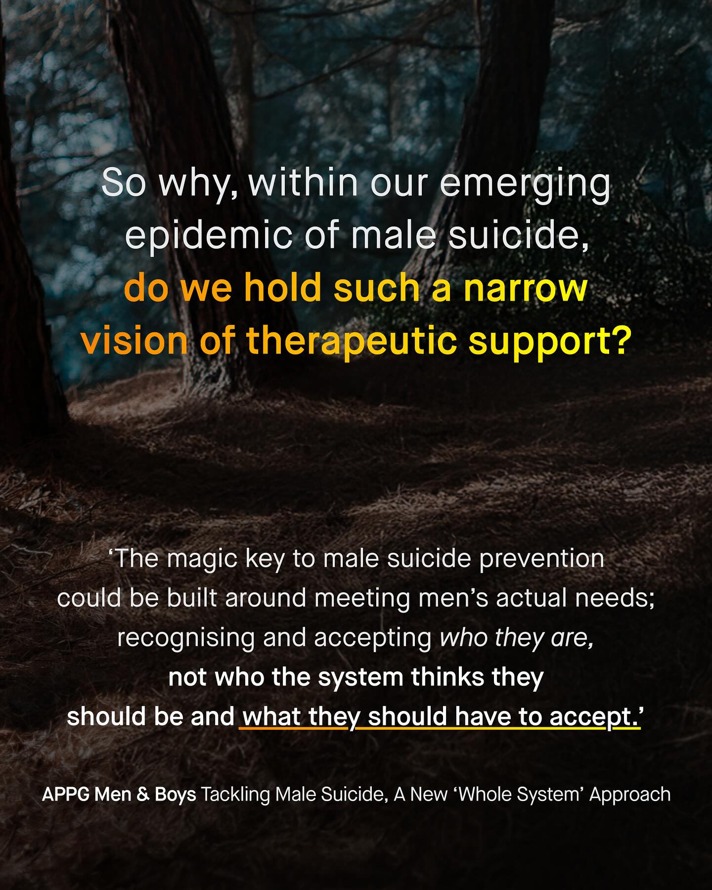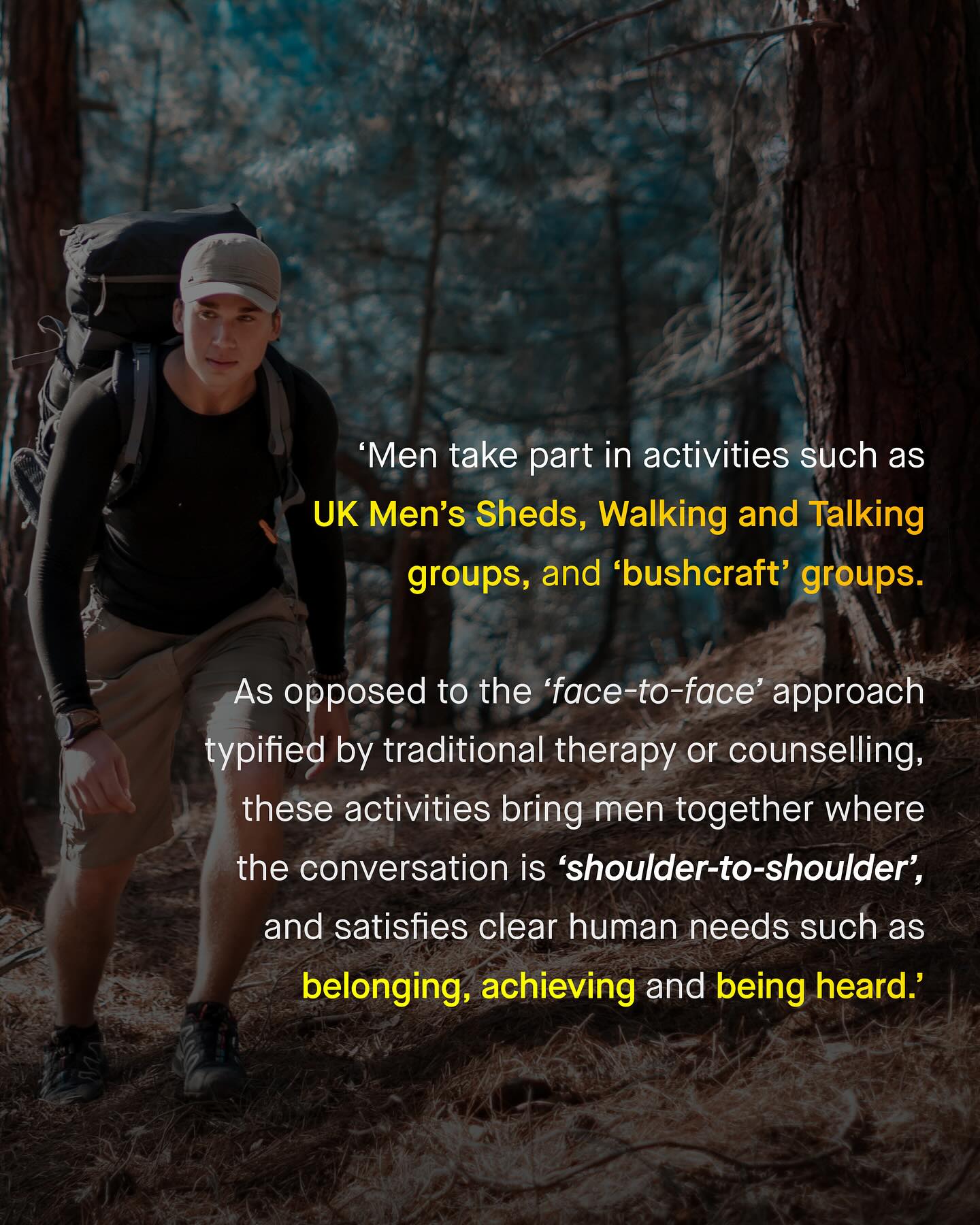 “Men would rather (insert activity) than go to therapy”, is a meme that pokes fun at the unique hobbies men love. Many laugh at these men. Asking why they meticulously restore trains, go fishing, enact historic battles, sing sea shanties, trudge up mountains, or dive into frozen lakes... But have these cynics not stopped to ask if, to these men, that is therapy? Is hiking a mountain therapy? Is building a trebuchet therapy? Is going to the gym therapy? Is enacting the Battle of Agincourt therapy? I think it is. Considering our #malesuicide epidemic, it’s sad to see so many of the idiosyncratic outlets many men use, mocked, derided, or seen as an ‘excuse’ for the very thing these activities already are. So why are we holding onto antiquated, clinical and largely female-centric models of ‘therapy’, and mocking men who choose a different route, for their own needs? And who gets to gatekeep what qualifies as ‘therapy’? If anything, these men dressed in suits of armour swinging swords in the rain, climbing Kilimanjaro with their mates, singing Wellerman, or plunging into ice cold lakes, are the innovators of novel therapeutic models, who we should not smugly insult, but learn from, and admire. So to these men – who bravely pursue such hobbies, and who gain tremendous mental health benefits as a result – I salute you as pioneers, ahead of your time, and I will happily join your next great battle. Thank you for showing us the way. So, what is therapy to you? #mensmentalhealth #malesuicideawareness - APPG Men and Boys Male Suicide