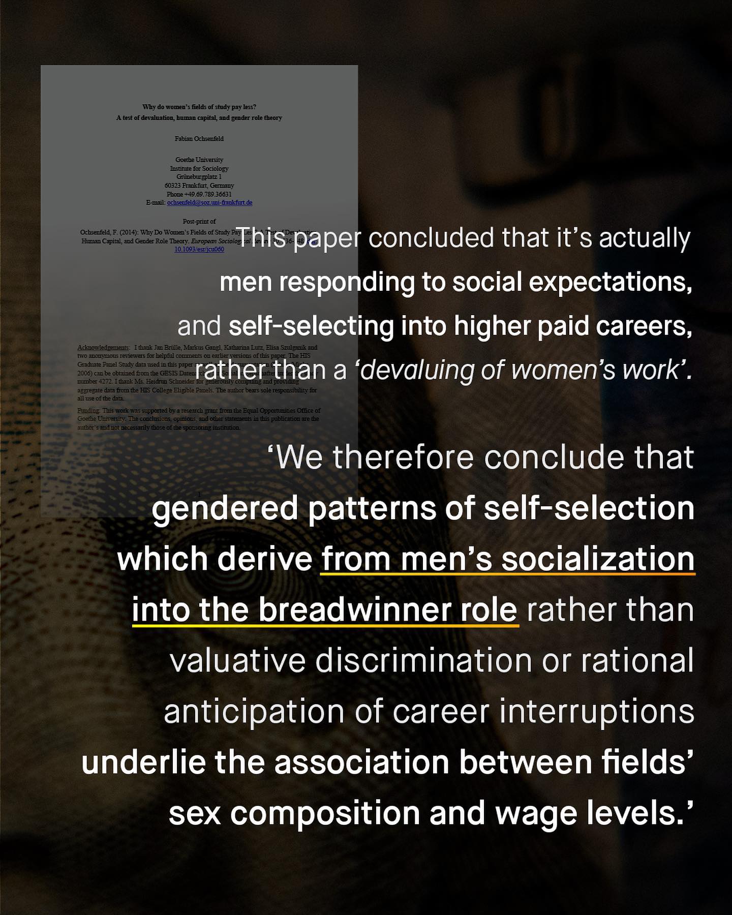 For many, ground zero in gender equality advocacy is the #genderpaygap. It’s perhaps the king of all tropes, from which discussion always seems to start, and inevitably returns too. ‘Yeah well, women are still paid less than men!’ You will hear, like some kind of broken record. And this is true, they are – the average salary for women, is lower than the average salary for men. But hold off the pitch forks, flaming torches, and cries of misogyny for a moment, as the picture changes if we ask, ‘are women paid less than men, for the same work?’ And to that, the answer is no. For whilst it’s true that ‘all women’ are paid 16% less than ‘all men’, the gap quickly dissolves and almost disappears completely (to just 0.5%), when comparing women with men working the same job level, with the same function, and at the same company. So, the better question is to surely ask ‘why are women not working in these higher paid jobs’? Or even, ‘do such jobs pay less, because they employ mostly women?’ Or perhaps we’re looking at this the wrong way round... Maybe we should ask – ‘Do men choose more highly paid jobs, because society tells them to?’ Might society’s warped value system of men being ‘the breadwinner’ be whats really causing the gap? What do you think? ~ Special thanks to r/problem_redditor Korn Ferry Gender Pay index Do Womens Careers Pay less? Images by Luis Villasmil, Nathan Dumlao, and Adam Nir. #paygap #fyp #genderpayequality