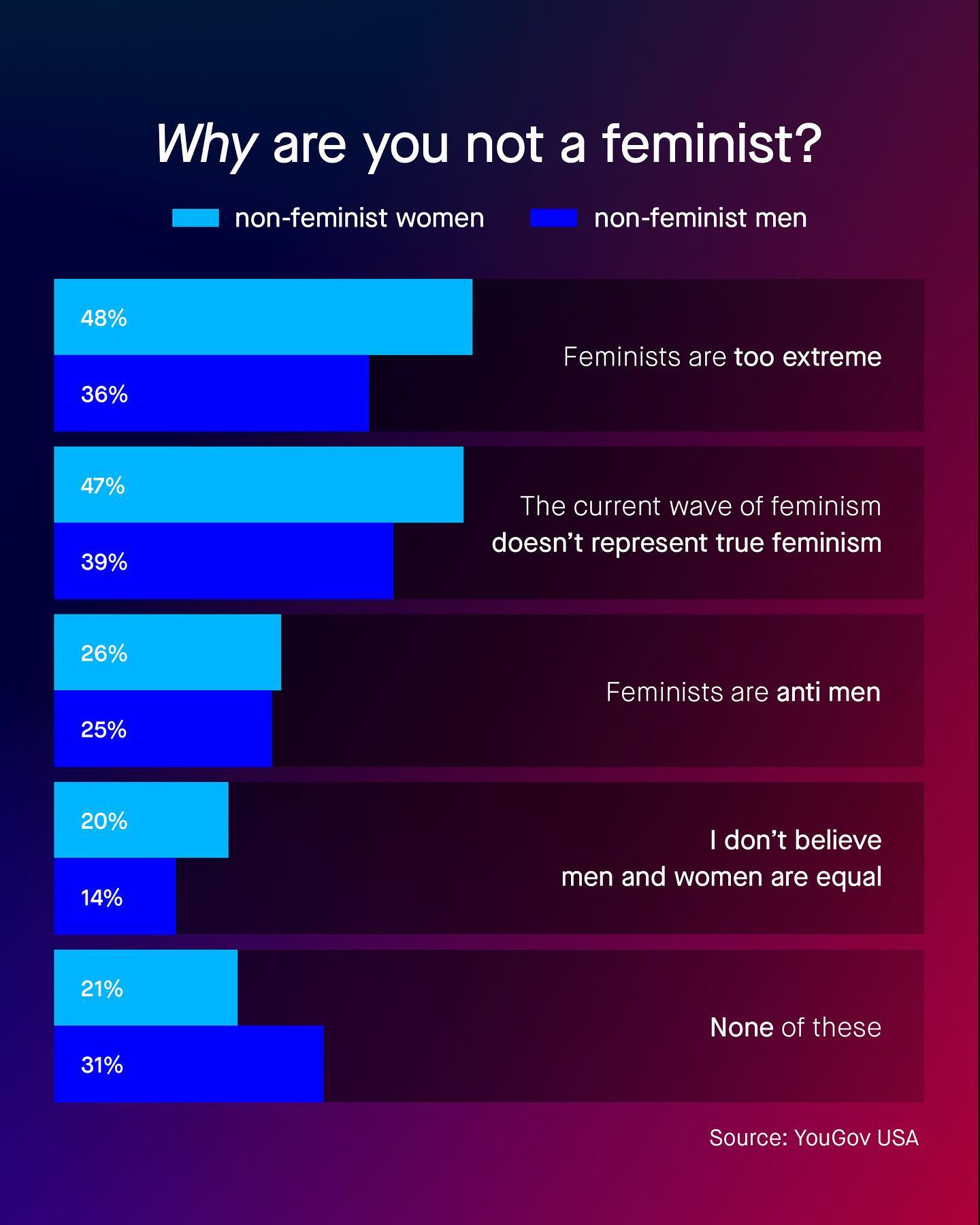 For a movement that is about liberation, feminism seems to love holding a monopoly on gender equality discourse. Yes. Whenever I find myself talking about domestic violence, or sexual abuse, or parenting, or body image, or gender equality in general, often the response is, ‘ah so you’re a feminist too?’ Their beaming eyes and gentle swoons don’t last long, and are soon replaced by a puzzled expression, when I politely explain “no”. Their disappointment is understandable – as to quote Ani DiFranco; ‘you’re either a feminist, or you’re a misogynist’. Or as Emma Watson patronisingly explains. ‘If you stand for equality, you are a feminist. Sorry!’ Ah yes, I am actually a secret feminist (I just don’t know it), automatically appropriated to the movement, by virtue of my egalitarian beliefs. Neither of these fine scholars are right of course. As you can absolutely care for women, be a staunch advocate for their rights, and believe in total gender equality – and not be a feminist. In fact, most people believe in gender equality, but do not identify as ‘feminists’. Personally, I chose to leave feminism, not because I don’t love women, or lost compassion for their plight. I left because I was tired of the anti-male bigotry I consistently found sewn into the movement. I agreed with the goal. I too wanted to reach the same golden summit. I just disagreed with the path taken. So I left. Likewise, one in two non-feminist American women polled said they felt ‘feminism is too extreme’, and one in four non-feminist American men and women believe ‘feminism is anti men’. These are valuable insights, held by millions, and are bitter food for thought for feminism. But sadly, it is food which is all-too-often scraped in the bin, with mutterings of ‘true feminism’. So what do you call yourself? Do you find solace within feminism? Do you want it to evolve? And is it time for feminism to take heed from the scrutiny that continues to swirl around it? ~ YouGov – are you a feminist? YouGov USA – why are you not a feminist? Images by Katie Azi, Pricilla Du Preez, Gradienta, and Kiwi Hug from Unsplash