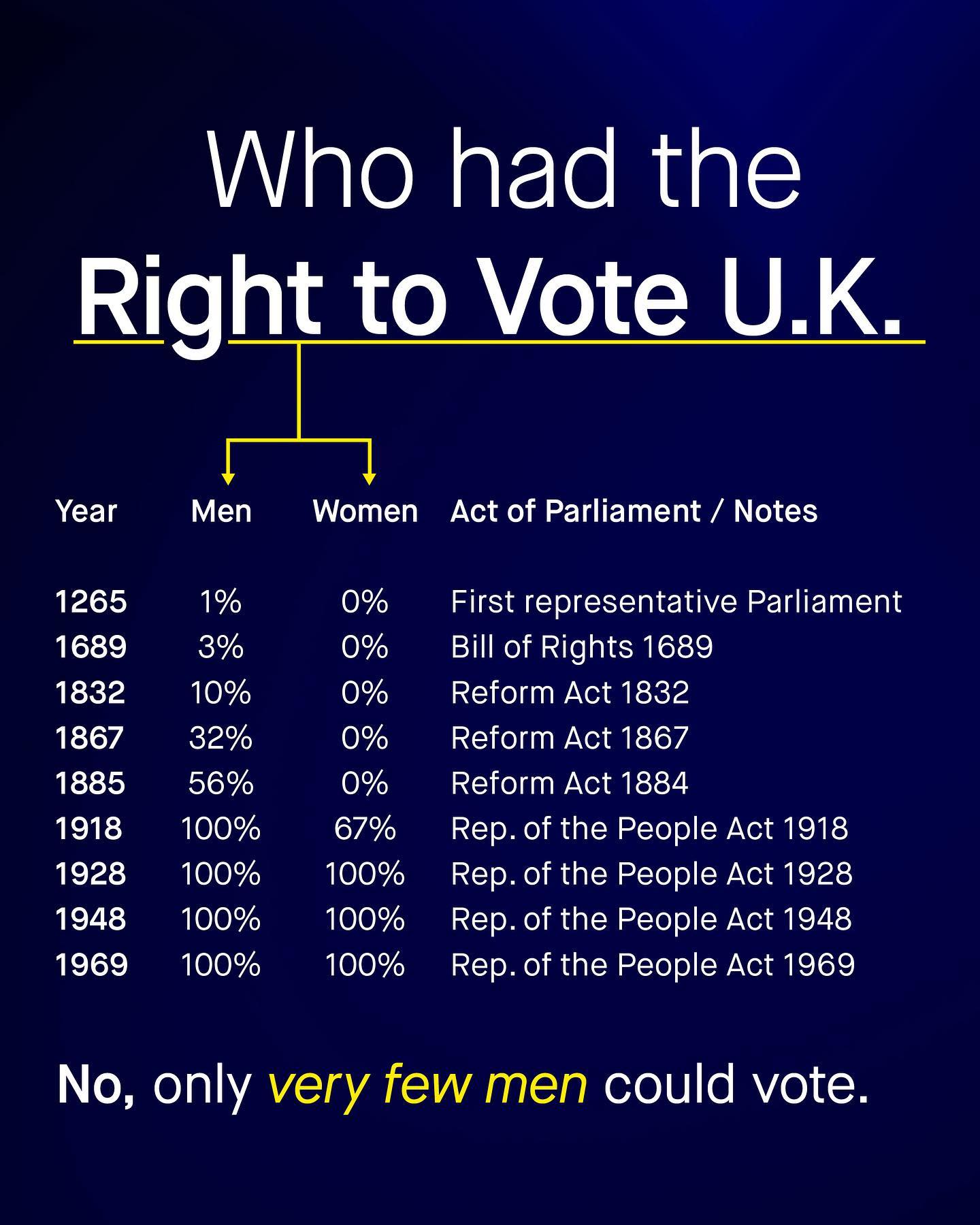 At birth, millions of boys have their right to bodily autonomy violated through needless non-medical circumcision. At the age of eighteen, even more boys will have their Right to Equal Protection violated, when they are legally forced to sign their body away to military service, or face criminal charges. And again, when they become fathers, many of them will not be granted equal Parental Rights to their own children. These are literal legal rights that so many men don’t have, or were deprived of, or which were violated. Even the iconic ‘Right to Vote’ is not as black and white as many try to pretend. And yet, when people put the words ‘Men’ and ‘Rights’ together, you are often (if not always) on the receiving end of eye rolls, laughter and sometimes outright hostility. With complex conversations boiled down to a mere hundred or so characters, or squashed into a tiny glass rectangle, such shortsightedness and missing pieces are to be expected. But one thing that is not complicated, is the fact that being treated as equal in the eyes of the law, is something we should be striving for, for all people and for all groups, everywhere. Yes as unpopular as it may make you, and as painful as the response to it may be, the fact remains the same – men too, in their own ways, do not have equal rights. So forget men, or women, or gender at all if you like; because really we’re just talking about one thing: human rights. What do you think? ~ You can read more about the British right to vote here Images by Ray Zhou and Gradienta on Unsplash.