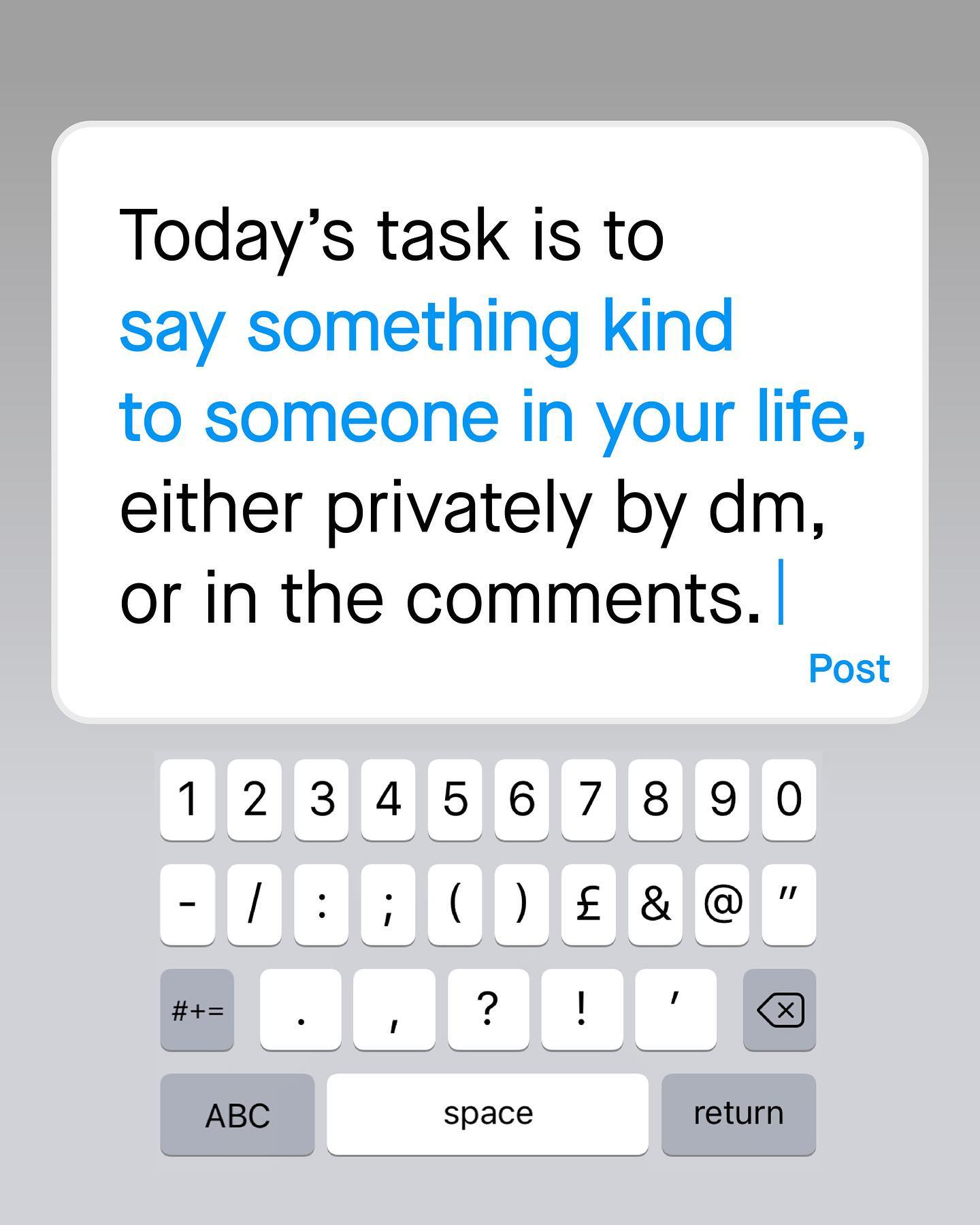 I understand that this page is emotionally draining for all of us. Somedays we don’t want to be swiping through statistics around suicide, domestic abuse or sexual violence; or reading the words, or witness the experiences of vulnerable men and boys. Sometimes we just want to see something nice, or to do something nice, for someone else. So today, let’s do that. Today I want you to spend these two minutes saying something kind to somebody that matters to you - right now. Send it via dm, or if you’re brave enough, comment them below. Whatever it is, however you say it, or whoever you say it to, you can transform someone’s day for the better – in mere moments So what’s stopping you? Happy Friday everyone. ~