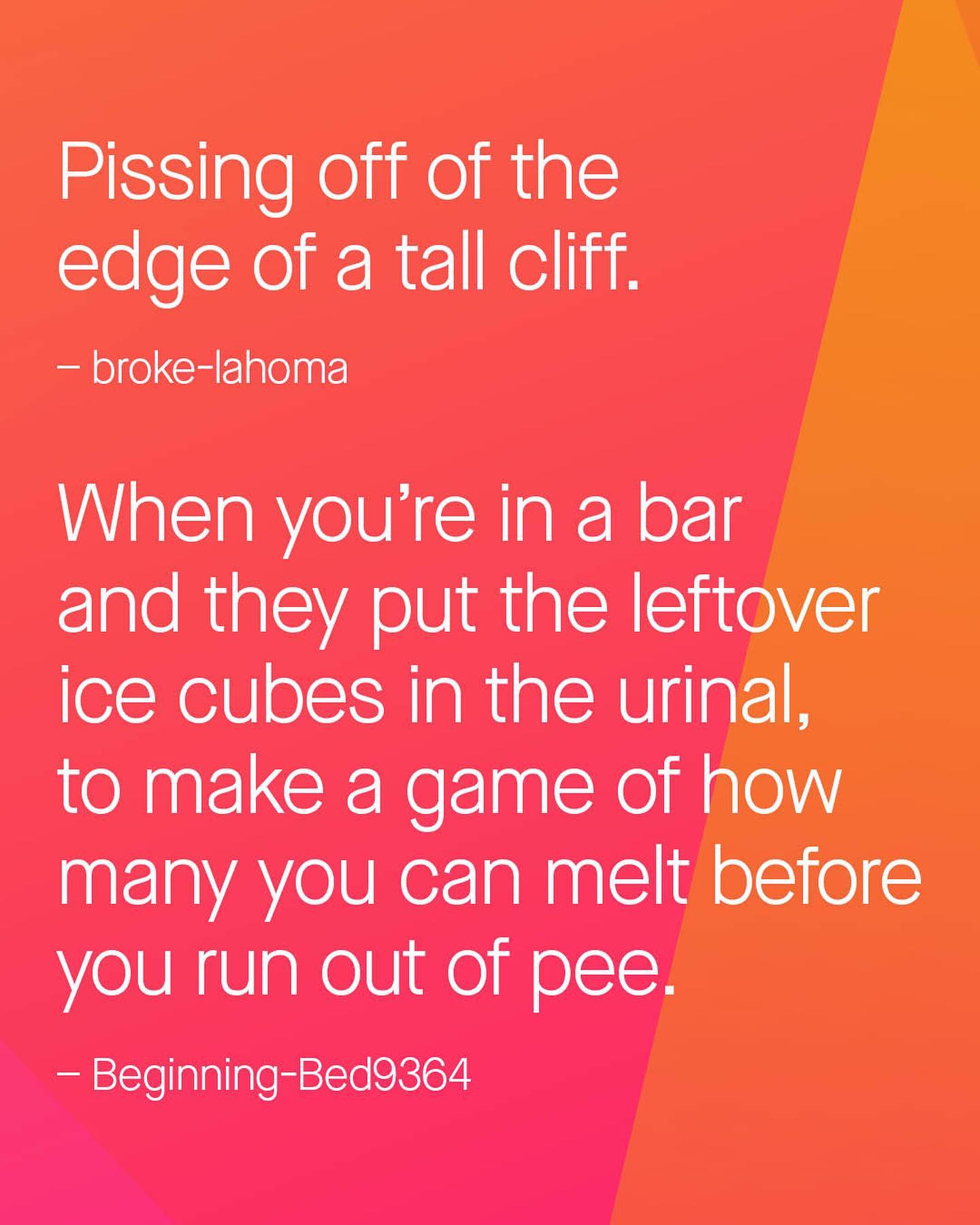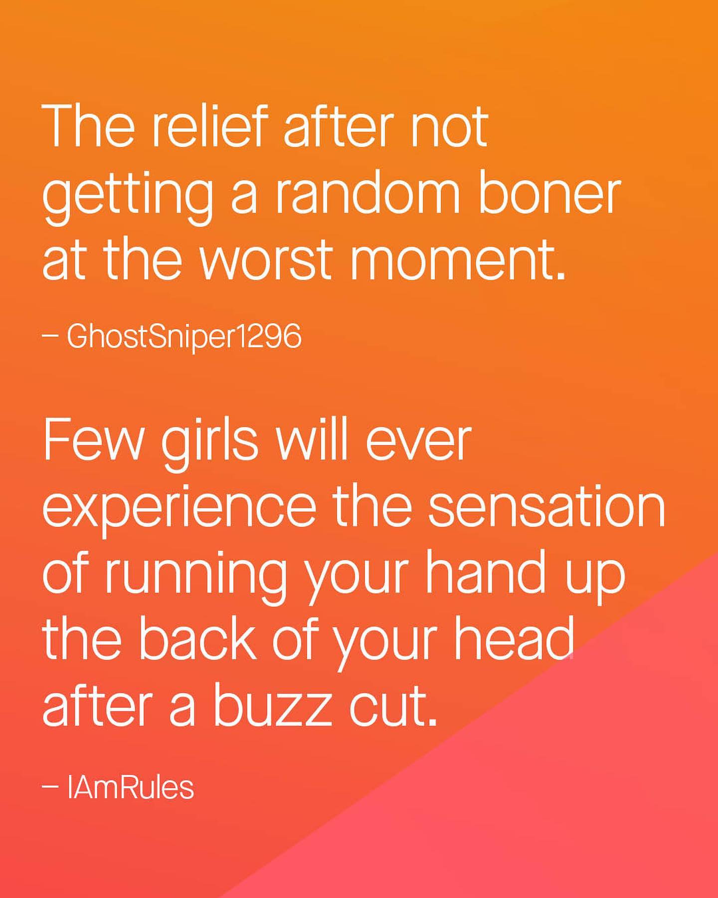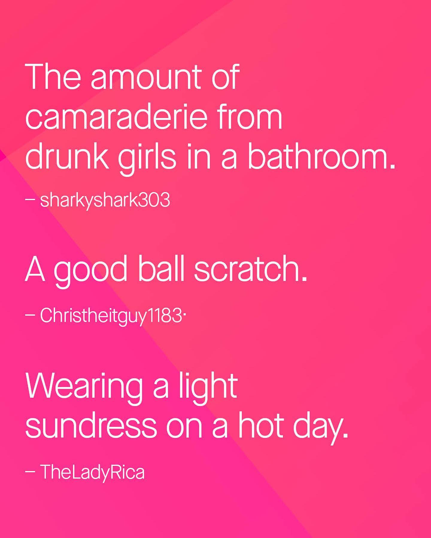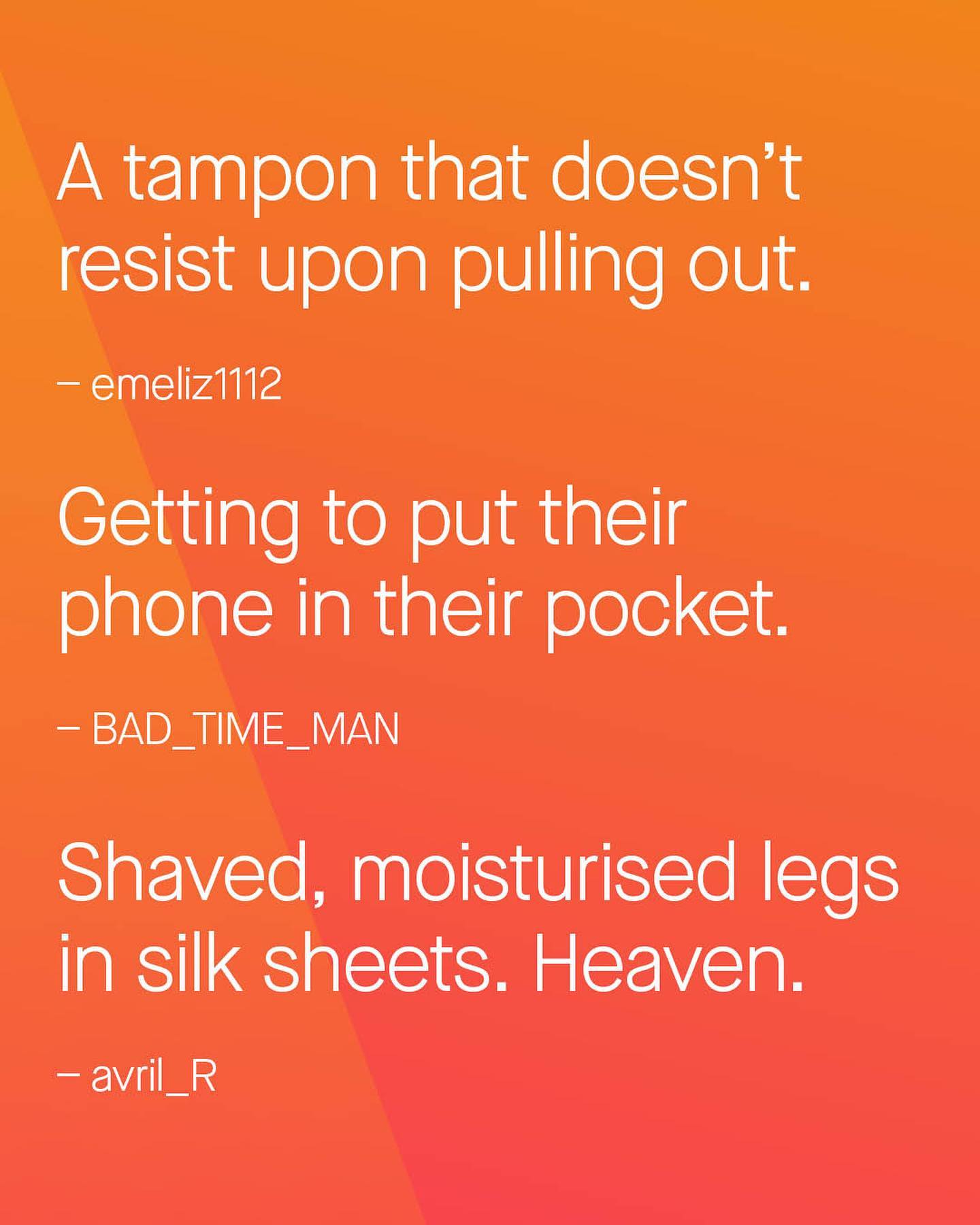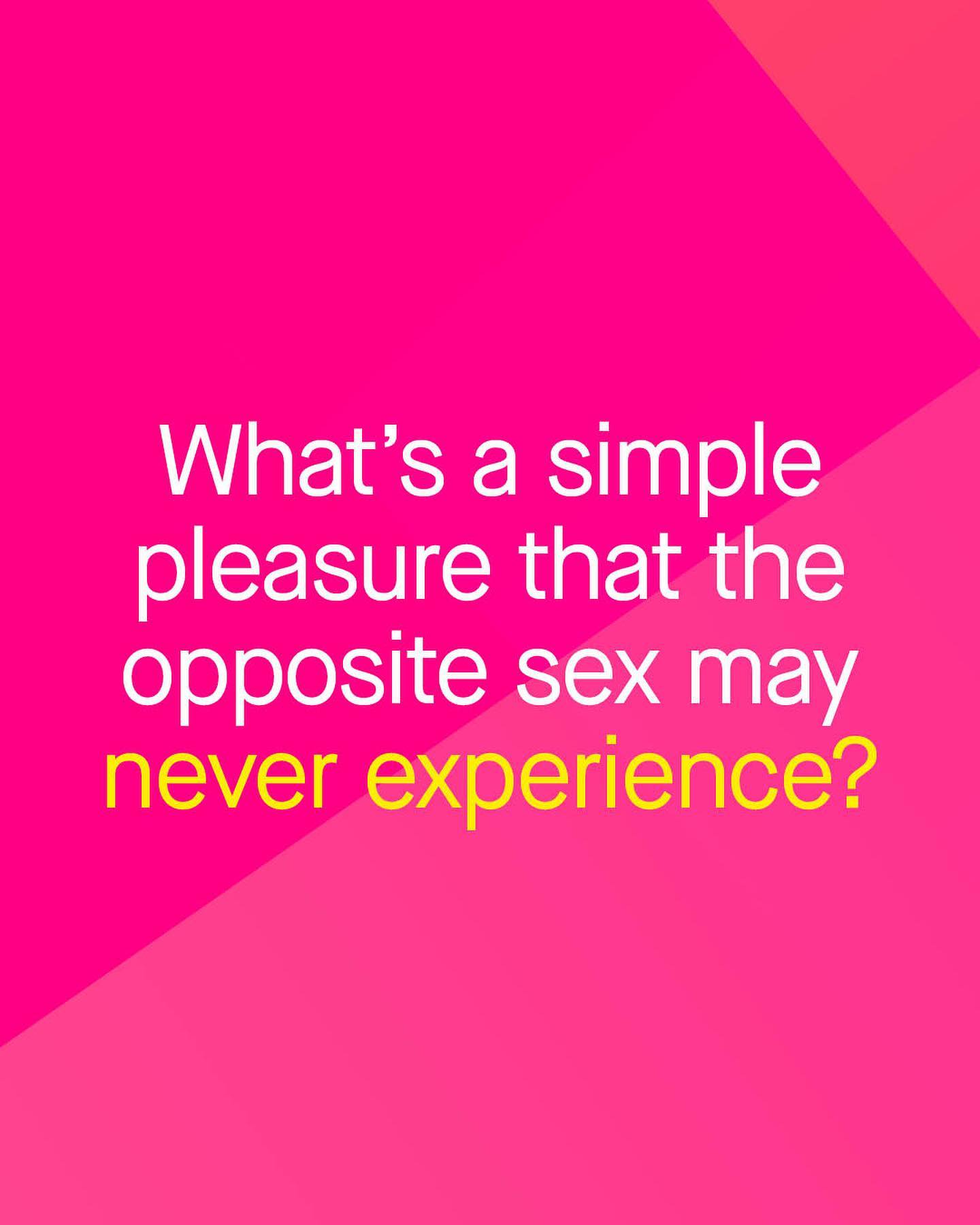 We are the product of our experiences, and these experiences are often different depending on who we are. So what are simple pleasures that you think the opposite sex may never experience? ~ More here https://tinyurl.com/2p84x8sd