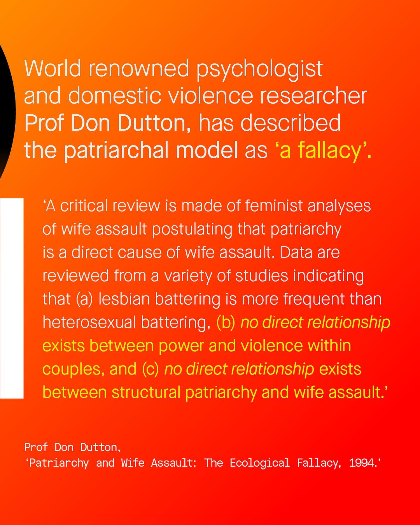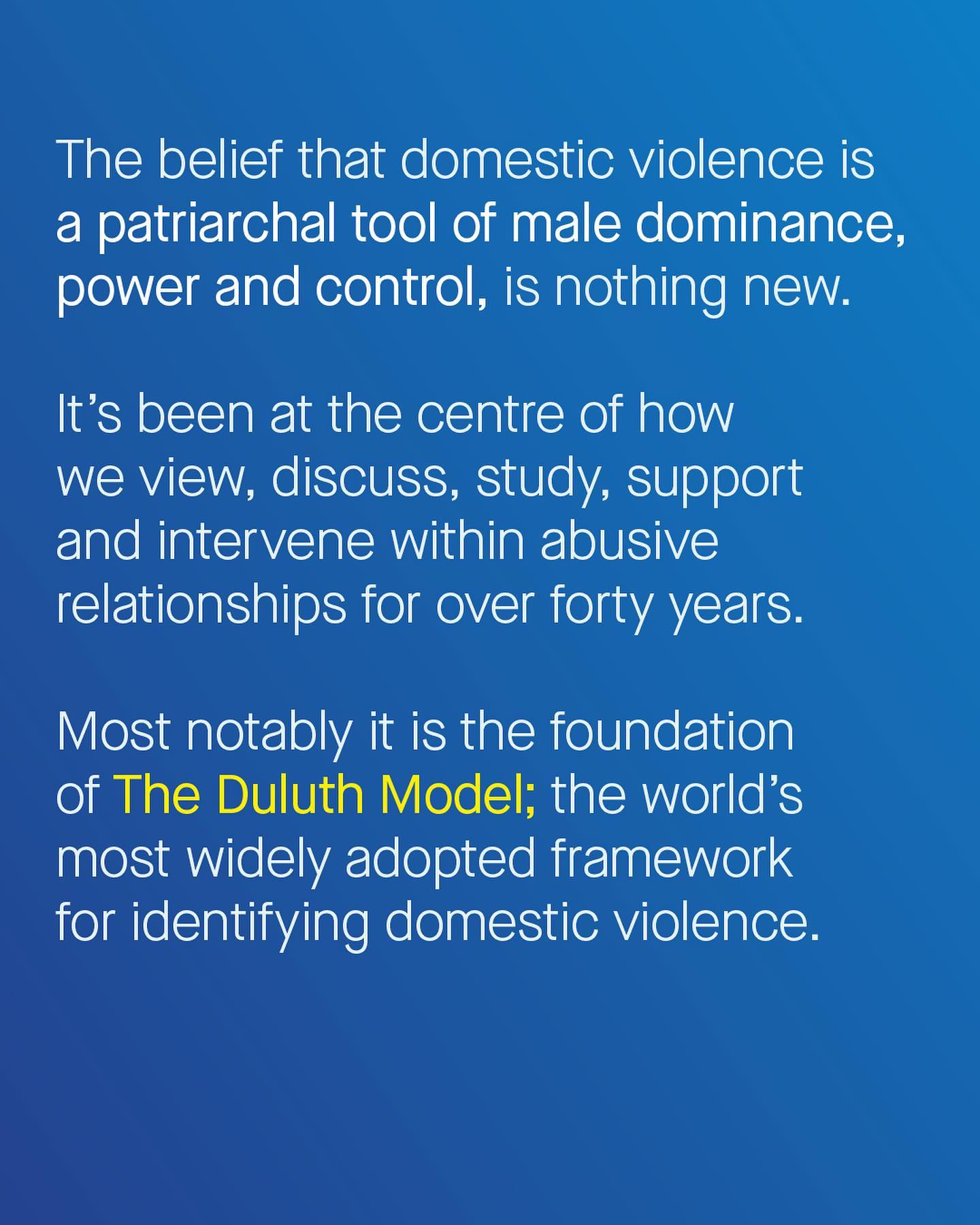 The problem with patriarchy theory, is that it isn’t just a sassy catchphrase to be thrown around by empowered instagram warriors – if it were, I wouldn’t really care so much. The problem is that for decades, the theory has been a piece of immovable dogma at the very heart of how we see, discuss, intervene and support within the issue of domestic violence. For generations we’ve seen ‘the patriarchy’ presented as the primary motive for partner violence, in a kind of religious zealotry that has erased countless studies and stomped over numerous intriguing theories, that tell us otherwise. Forget about the myriad of other risk factors, forget about the irrefutable statistics that show women and men as equally violent in relationships. Forget about the work and wisdom of world leading experts who try to widen the picture. No – DV is simply men exercising patriarchal power and control over women. So for 50 years, as this obscene theory has been built into the very bedrock of our most influential intervention strategies such as ‘The Duluth Model’, and adopted as gospel, by our refuges and charities as a means of operation – we’ve seen male victimhood and female perpetuation systemically erased. It’s no coincidence, that this theory being so deeply entwined into the domestic violence industry, has created a dogmatic monolith that offers literally no support or compassion for our men or boys who are suffering abuse. So, impervious to testing, and fiercely reluctant to scrutiny, does this tired and antiquated theory hold any truth to it? Or is the reality of domestic violence a little more complicated than a quippy hashtag presents? [1] https://tinyurl.com/46fdpr9p [2] https://tinyurl.com/yckkjpuw [3] https://tinyurl.com/c9c445yv [4] https://tinyurl.com/mvftyfhy [5] https://tinyurl.com/2rr6b4n2