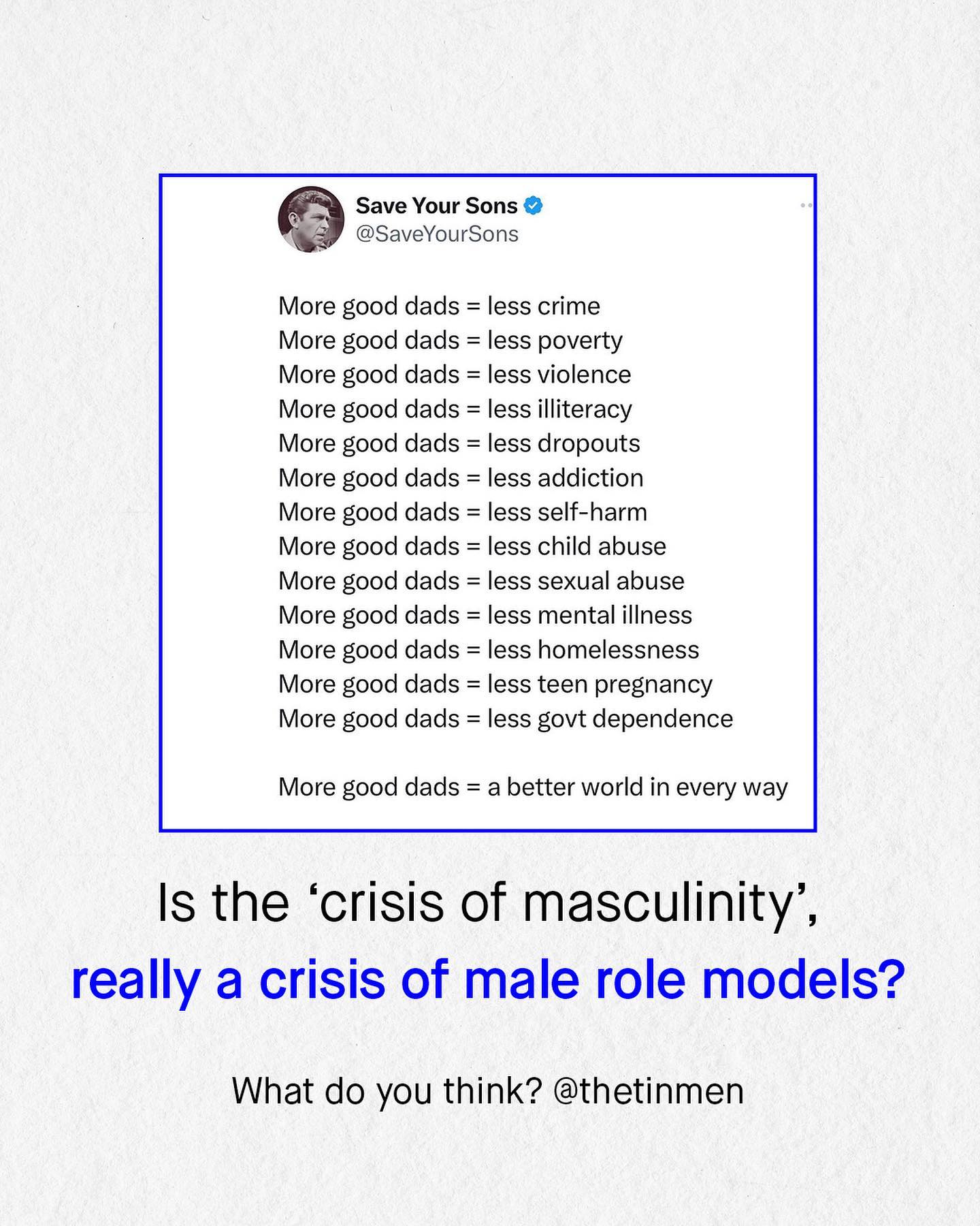 It’s a strange thing to watch my fellow lefties erode the importance of male role models, especially fathers, within the socialising and care of children. It’s outrageous to hear prominent politicians like Harriet Harman advocate against fathers, as ’not essential to harmonious family life’. It’s saddening to see enormous feminist organisations such as the NOW; stand in the way of shared parenting laws for generations, again, and again, and again. And it’s depressing to turn on the TV and flick through channel after channel of useless dads, portrayed as clowns, ‘babysitters’, and caricatures for our ridicule. In fact, the problem of ‘inept tv dads’ become so bad that the Advertising Standards Authority had to step in and ban such harmful stereotypes. Gone are the wonderful, sophisticated, and wholesome fatherly role models of Mr Rogers, and Bob Ross; to be replaced with oafish fools like Homer Simpson, Peter Griffin and Hal. We ask more and more of fathers, and yet give them nothing but insults and shaming in return. We expect fathers to take equal responsibility for children, but have yet to give them equal rights, or equal parental leave. We ignore the essential importance of fathers; yet scratch our heads confused when the wider impacts of fatherlessness wreak havoc on society. Addiction, suicide, violent crime, youth delinquency, gangs, school drop outs, adolescent behavioural issues, mass shootings, and anti sociality… All of these are tied to fatherlessness, and all remain ignored. We as a society punch ourselves in the face with our own ignorance, and then complain about the black eyes and broken skin our own actions have caused to ourselves. And we continue to vilify and pathologise ‘masculinity’ as something harmful, to be expunged. So is there more to be done for fathers, and the importance of male role models in the lives of children?