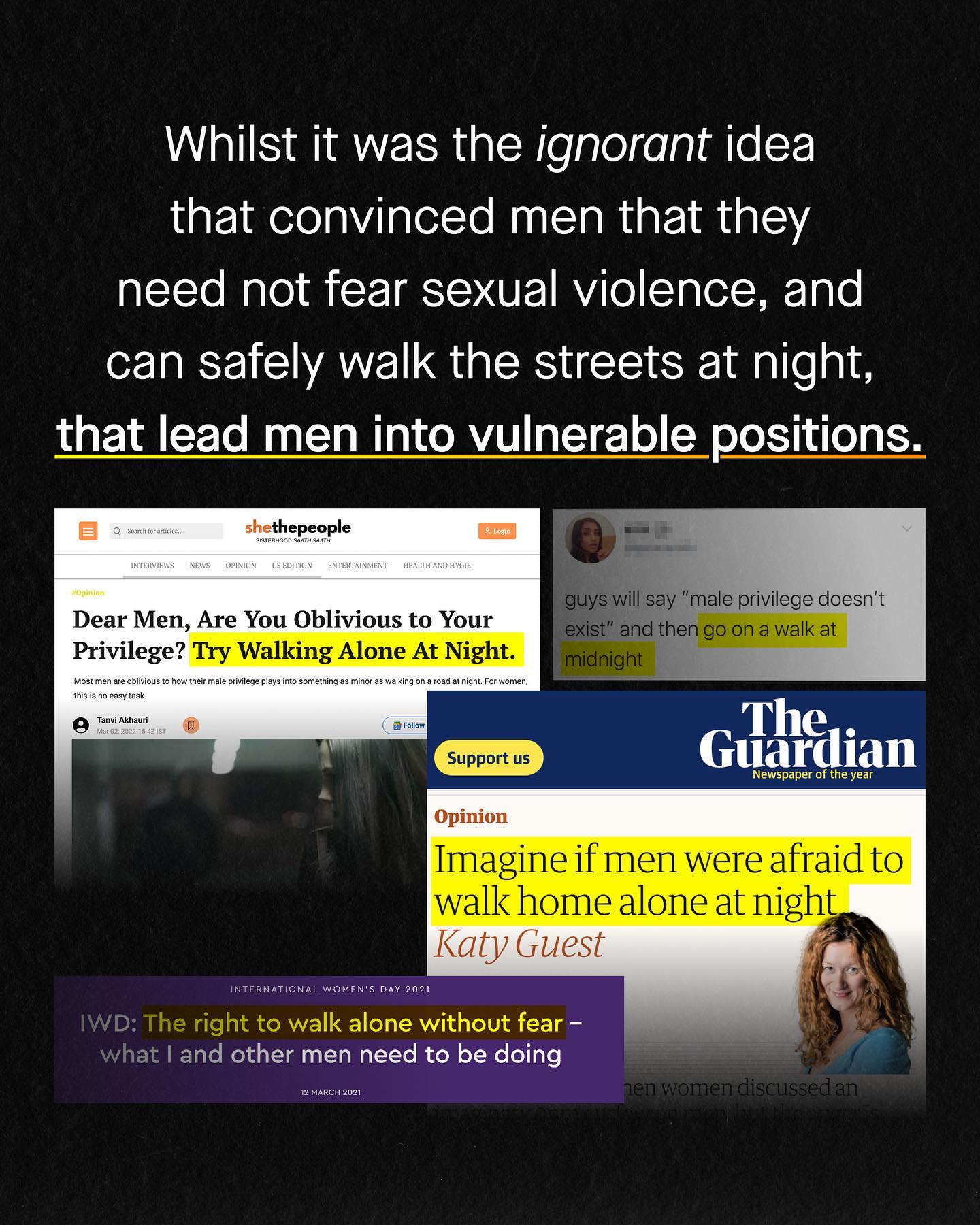 ‘Men need not fear sexual violence’, ‘men can walk the streets at night’, ‘men are rarely raped’… The endless waterfall of stupidity cascades down my phone, betraying my eyes on a daily basis, to remind me of just how ignorant and spiteful many have now become. We are told by the news, politicians, and advocates, that sexual violence is a “women’s issue”, that men will never understand. We are force fed a one sided story of ‘male privilege’, and ‘gendered crimes’, splashed across our social media feeds with aplomb. And whilst these virtuous ideas might sound good, they fall apart when you hear of the monster, Reynhard Sinaga; the most prolific rapist in British legal history, who solely targeted men. Yes. Sinaga sexual assaulted, or raped, at least 206 men; his victims the same men we smugly told can ‘walk at night without fear’. He was a monstrous man. Short, unassuming, and petite; who despite his small and effeminate size, was able to overcome hundreds of men, many far stronger than he, by drugging and ambushing them whilst drunk. His evil actions were his alone. But who knows how much sooner we could have caught him, had we offered these vulnerable men a more honest and responsible insight into sexual violence? Who knows how many men could have avoided what happened, had they be given the same mindful warnings as women are? For how many times have you seen men portrayed as the *victim* of sexual violence? How many campaigns call for awareness of male victims of rape? Our society is complicit in what happened. It was our failure to inform and protect men, and worse mislead them, about the dangers of sexual violence, that allowed such a tragic story to continue so long. Singala opperated in the blind spots we created. His 206 male victims, almost none of who reported their assaults, never saw themselves as victims - because neither did anyone else. Little has changed since. The same story continues, as Singala’s horrifying actions fade into history. So when will we talk about the full shape and scale of sexual violence, and those vulnerable to such crimes? What do you think? ~ Images by Black Kiwi Hug, Ray Zhou, Gradienta.