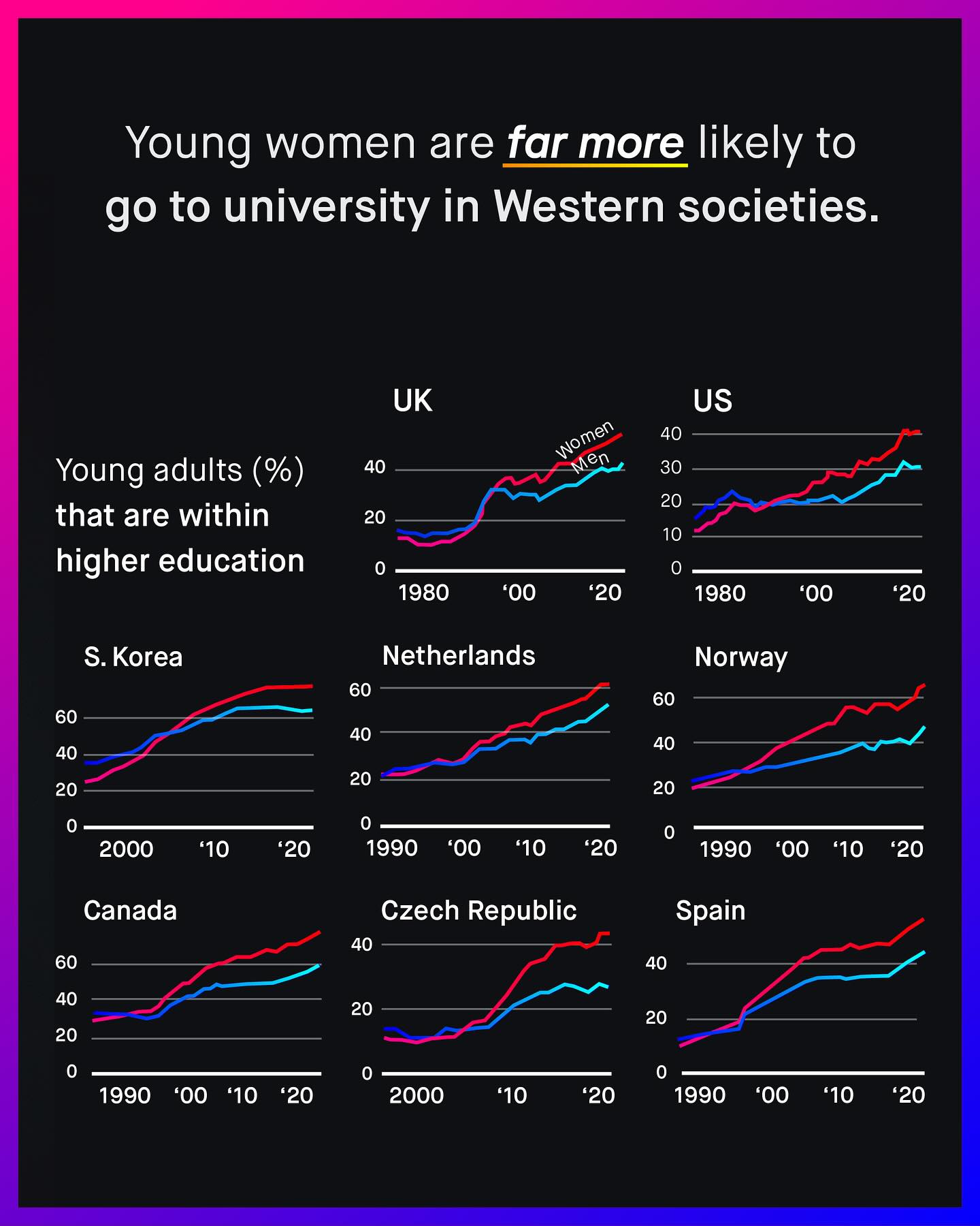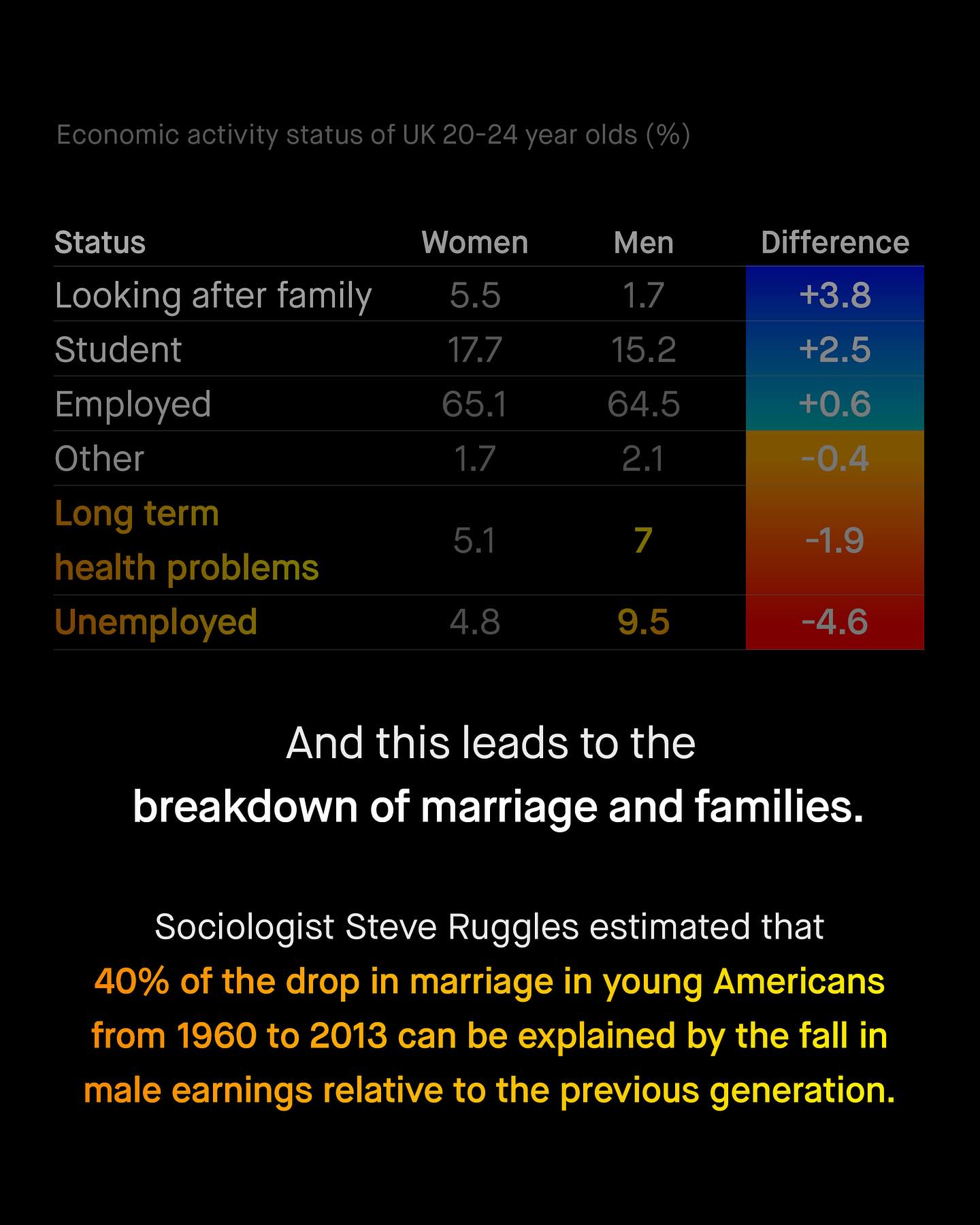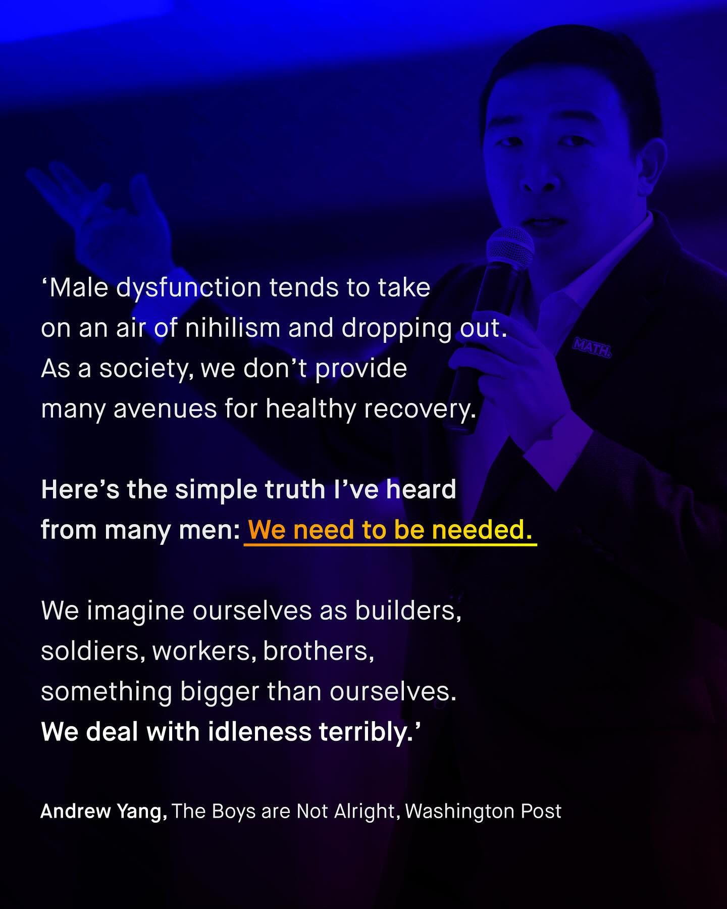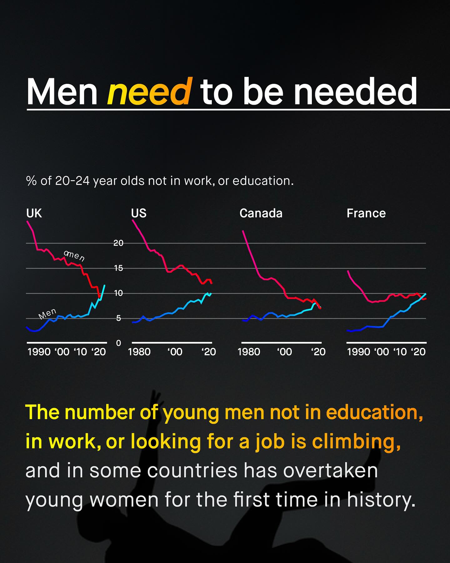 Men and boys fall behind, drop out, give up, and die in darkness; falling into the abyss of public ignorance, political cowardice, and betrayal. They are more likely to die at every age, in every country, and have worse health outcomes than women, in every group. They are behind at every stage of education, and across every demographic group. They are more likely to suffer from addiction, alcoholism, and homelessness; to die at work, and from suicide. More likely to join a gang, to be killed, stabbed, criminally exploited, arrested, or shot by police, More likely to be suspended, held back, or excluded from school; more likely to be illiterate, more likely to be diagnosed with behavioural problems, more likely to be the target of sextortion. More likely to be lonely. More likely to be unemployed, or burdened by long term health problems. To be male is now the single largest demographic factor predicting early death. Any one of these is deserving of a public emergency, and yet the bang of the drum from our noble advocates, falls silent. The kind and brave words for women, that told the world “no more”, is now replaced with brittle vitriol, entitlement, and sneering arrogance. “They did it to themselves” “Who built the system?” “They had their turn!” “Men’s issues don’t exist!” Says the social media brat, whose privileged life and online whines, are made possible by the very men they now lament. There is no excuse good enough to absolve society of how we’ve allowed this to happen. And the misandry and anti-male rhetoric splattered onto the faces of those who have tried to help, will soon become one of our greatest shames. So ask not, ‘why are men and boys behind?’ And instead question, ‘why does nobody care’? What do you think? ~ Wall Street Journal  The Financial Times