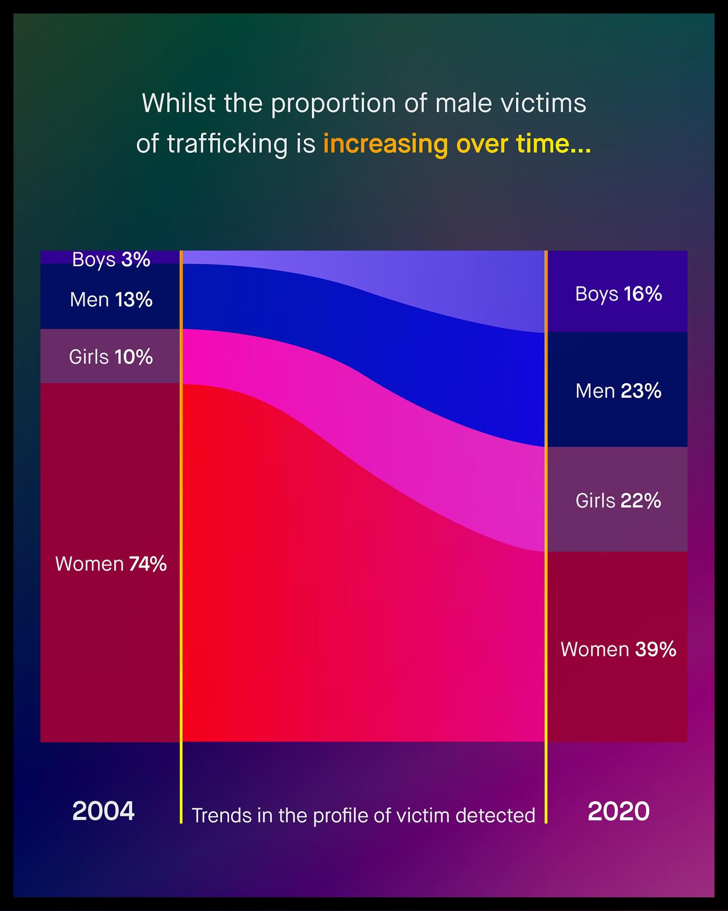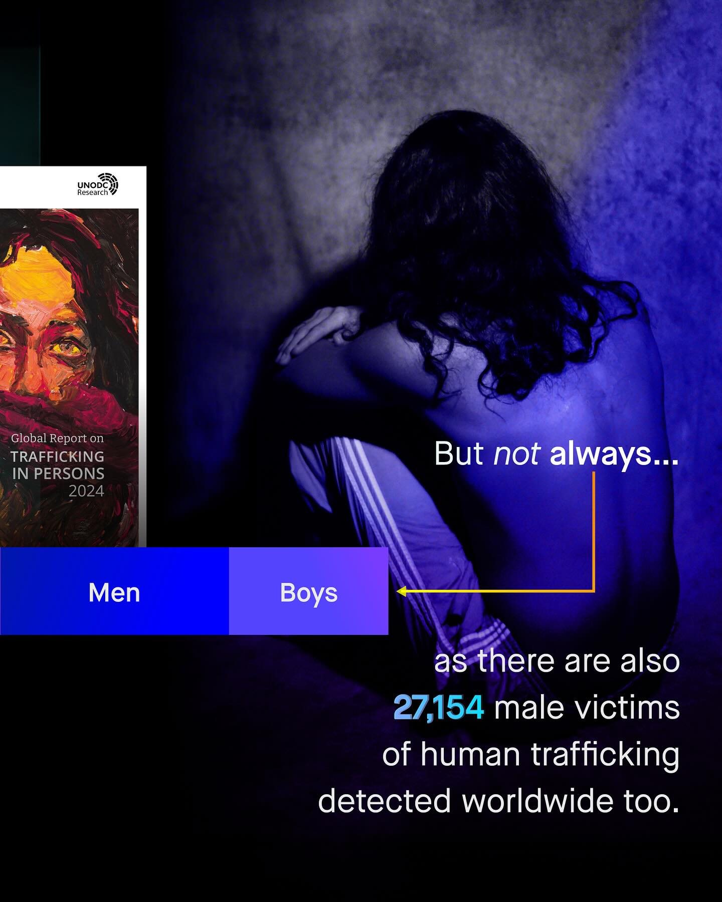 Close your eyes and think of a CEO, or world leader, and chances are most of you (although I expect less than you think) are imagining a male. Yes, a long line of male CEOs, presidents, politicians, and prime ministers; shows our narrative of “leadership” is twisted by asymmetrical societal gender norms But what about “victimhood”? Is society’s view of vulnerable people twisted in the opposite way, with the same narrative of one-sidedness, but with male voices, unceremoniously erased from the conversation? Well, close your eyes again and imagine a victim of abuse, sexual violence, or someone whose assaulted by their partner… Is it a woman? What about someone who’s trafficked? I am sure the same lazy, exclusionary, and cartoonish narratives beleaguer these areas too, but in the inverse way. And, let’s be clear – just as they are wrong about CEOs, they are wrong here too. Because nearly half of new business owners are female, and a similar percentage of those trafficked globally, are male. But… we never hear of them. The words of urgency and care for the tens of thousands of trafficked men and boys are heard only in quiet corners of the internet, whispered in comment sections, or spoken about by a small gaggle of brave advocates. And the same missing pieces exist when discussing those doing the trafficking too… who I expect you’d imagine as being male – but in reality, 26% are not. Yes, at least one in four traffickers are female, again so rarely spoken about, whose erasure only leaves more people vulnerable. So is it time we talked about #humantrafficking in all of its ugly fullness? Is it time we spoke about all victims, both male and female, and all perpetrators, if we are really serious about ending such a heinous crime? What do you think? ~ UN DOC Trafficking 2022 UN DOC Trafficking 2024 Reuters Images by Andrej Lisakov, Behrooz, Darius Bashar, Davide Ragusa, and Ya Wahyu