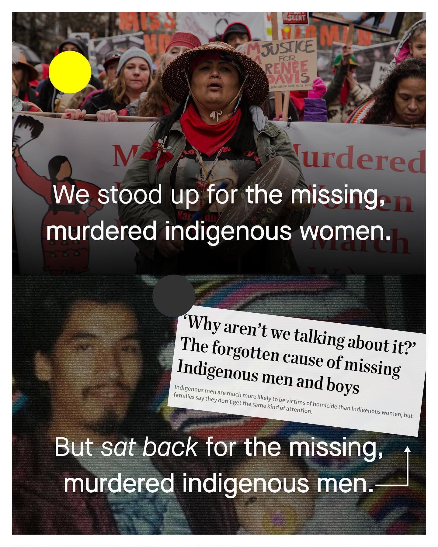Missing men and boys don’t just go missing from their homes, or our streets, but also from our hearts. They go missing from news reports. They go missing from inquiries and investigations. They go missing from our cries of advocacy and compassion. Missing from our placards, and missing from the speeches of our political leaders. I call them our ‘missing missing.’ Whether it be the boys taken by Boko Haram, those disappeared in Kashmir, or the lost indigenous males of Canada; we simply don’t care about men and boys when they go missing. This tendency to prioritise missing (white) women, is a phenomenon known by social scientists as ‘Missing White Woman Syndrome’: ‘Missing white woman syndrome is a term which is used by social scientists and media commentators in reference to the media coverage, especially on television,of missing-person cases involving young, attractive, white, upper middle class women or girls compared to the relative lack of attention towards missing women who were not white, of lower social classes, or of missing men or boys.’ So ask yourself, why have you never heard of Missing and Murdered Indigenous Men? Why is there no hashtag to #BringBackourBoys? Do we simply care less about our missing boys and men? ~ Globe and Mail Toronto Star EquitableEducation.ca The Wall Street Journal The New Yorker Sommers Study Images by Black Kiwi Hug, Max Whitehead, Dan Cristian Padure, Francisco Andreotti from Unsplash. Illustration by Umer Younas