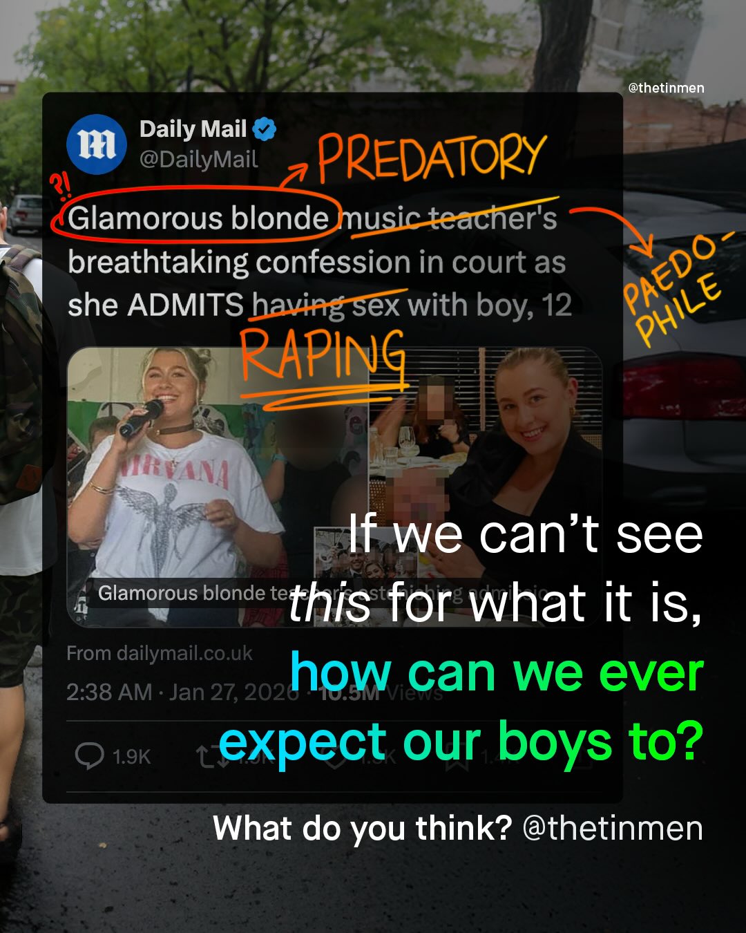 For every step society makes toward recognising boys as legitimate, equally important victims of sexual violence, it’s only a matter of time before some grotesque Daily Mail slop, drags us back to the dark ages. And so here we are, once again, with the Mail reminding us why they are so roundly and rightly hated, with yet another guided tour of their moral bankruptsy and ineptitude. A filthy rag. A safe harbor to an army of parasitic writers; bottom feeders, dredged from the lowest levels of the gutter-press. No other paper could openly celebrate and glamorize a p*edophile, to the surprise of absolutely nobody. No other paper, would consider a ch*ld r*pist to be ‘glamourous’. But here we are… It sounds quite insane to write it myself, or to think anyone needs reminding – But an adult, male or female, cannot have ’s*x” with a child; such a thing can only be described as ‘r*pe’. And those who coerce, and groom children in such ways, are not ‘glamourous’, they are predators. More shocking still… It’s not just our tabloids that forget these lessons, but large parts of the public, and even the very judges who are presiding over the case themselves. So no – these boys are not ‘having an affair’, they are not ‘in a sexual relationship’, and they are certainly not ‘lucky’. They are children. And those in need of help. So let’s end the ‘lucky boy’ phenomenon, once and for all. What do you think? ~ ‘Lucky Boy!’; Public Perceptions of Child Sexual Offending Committed by Women https://tinyurl.com/2yrzxdku