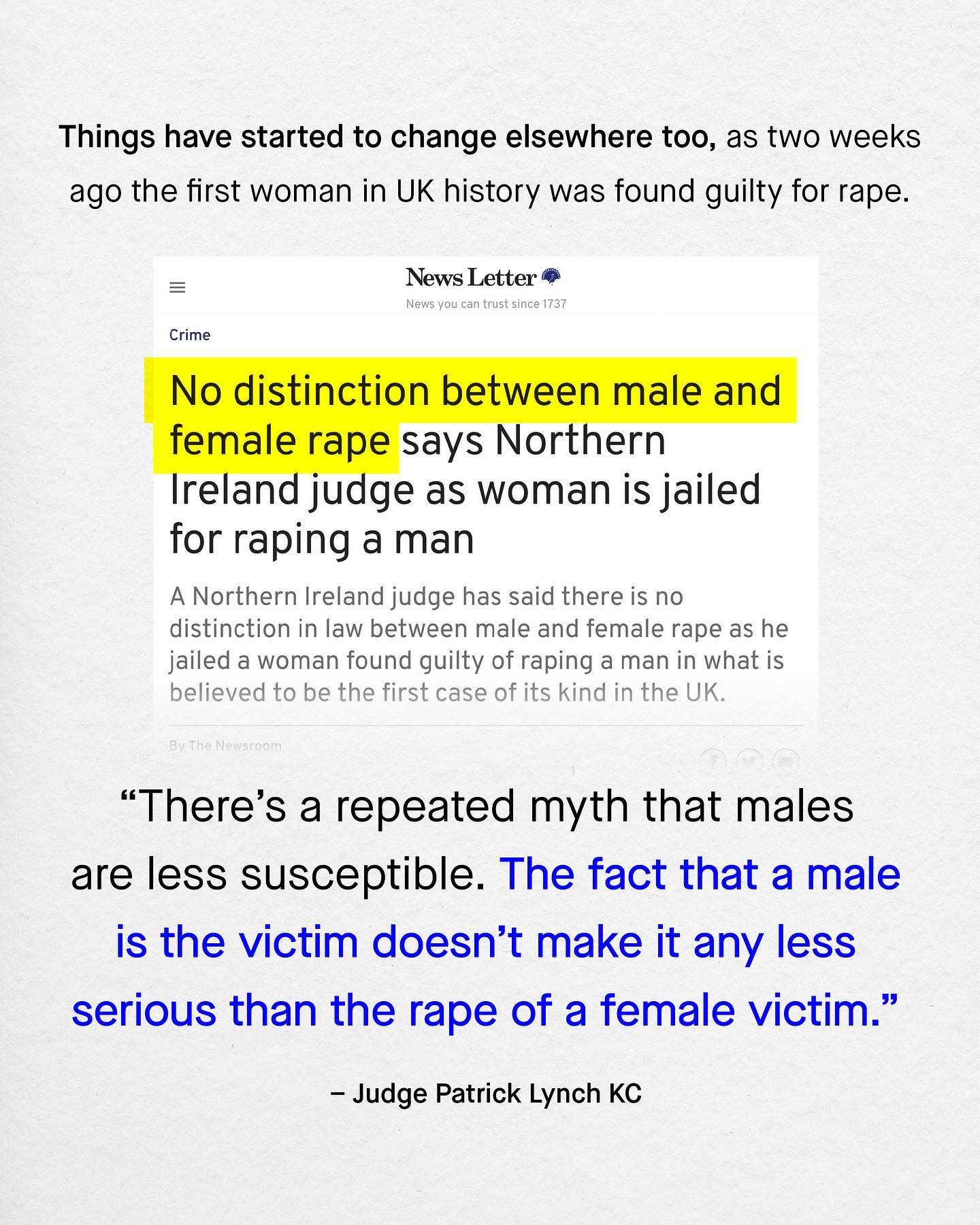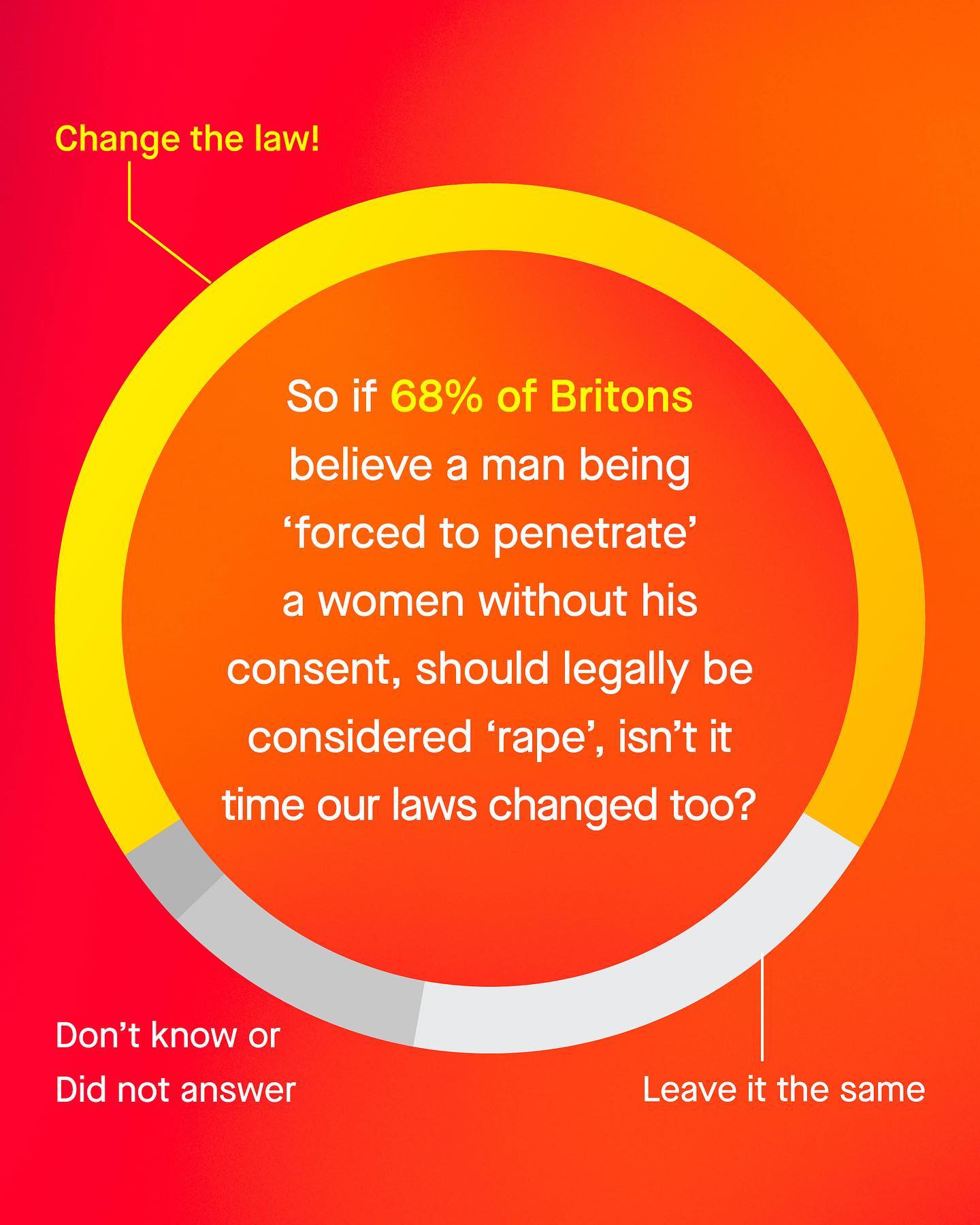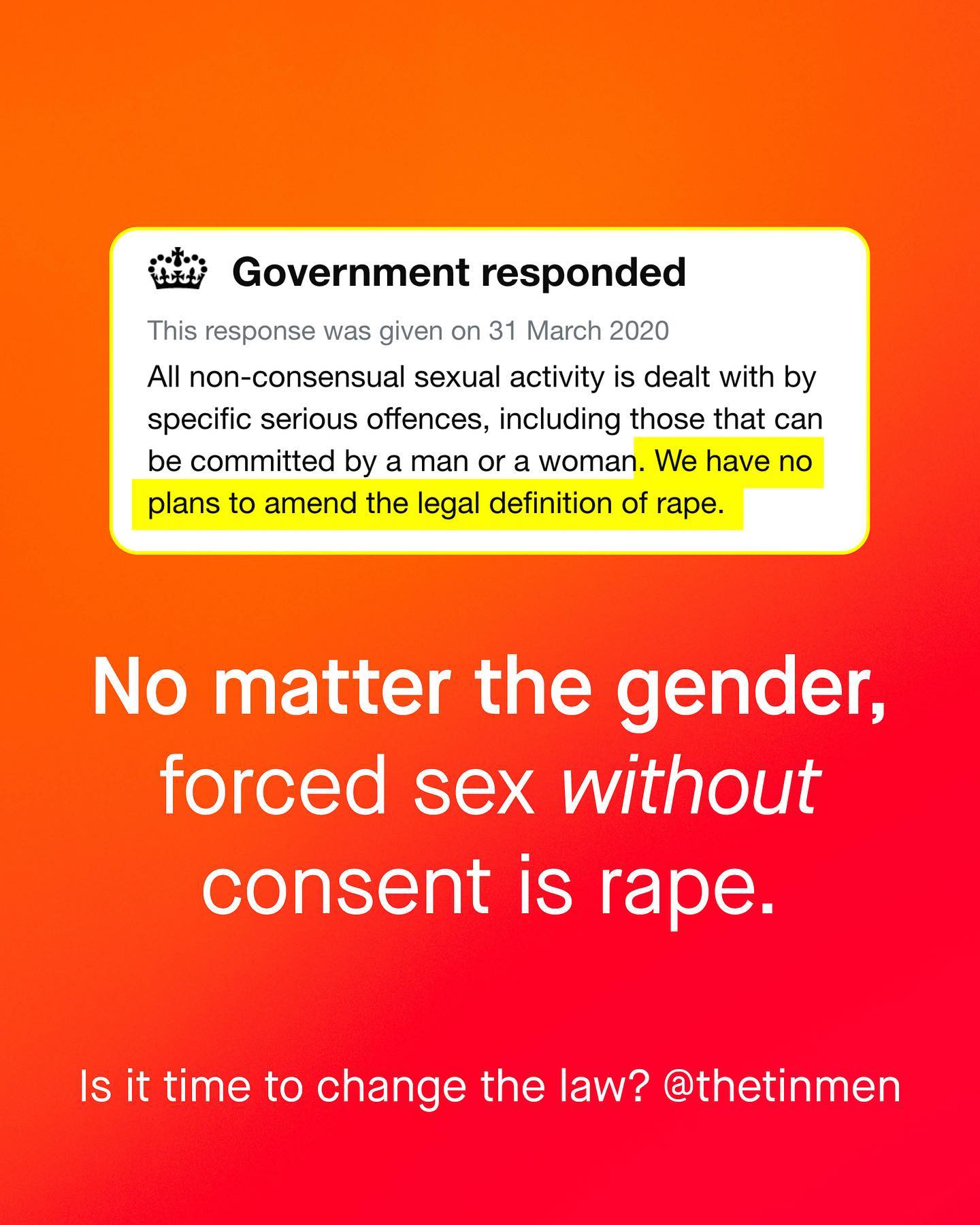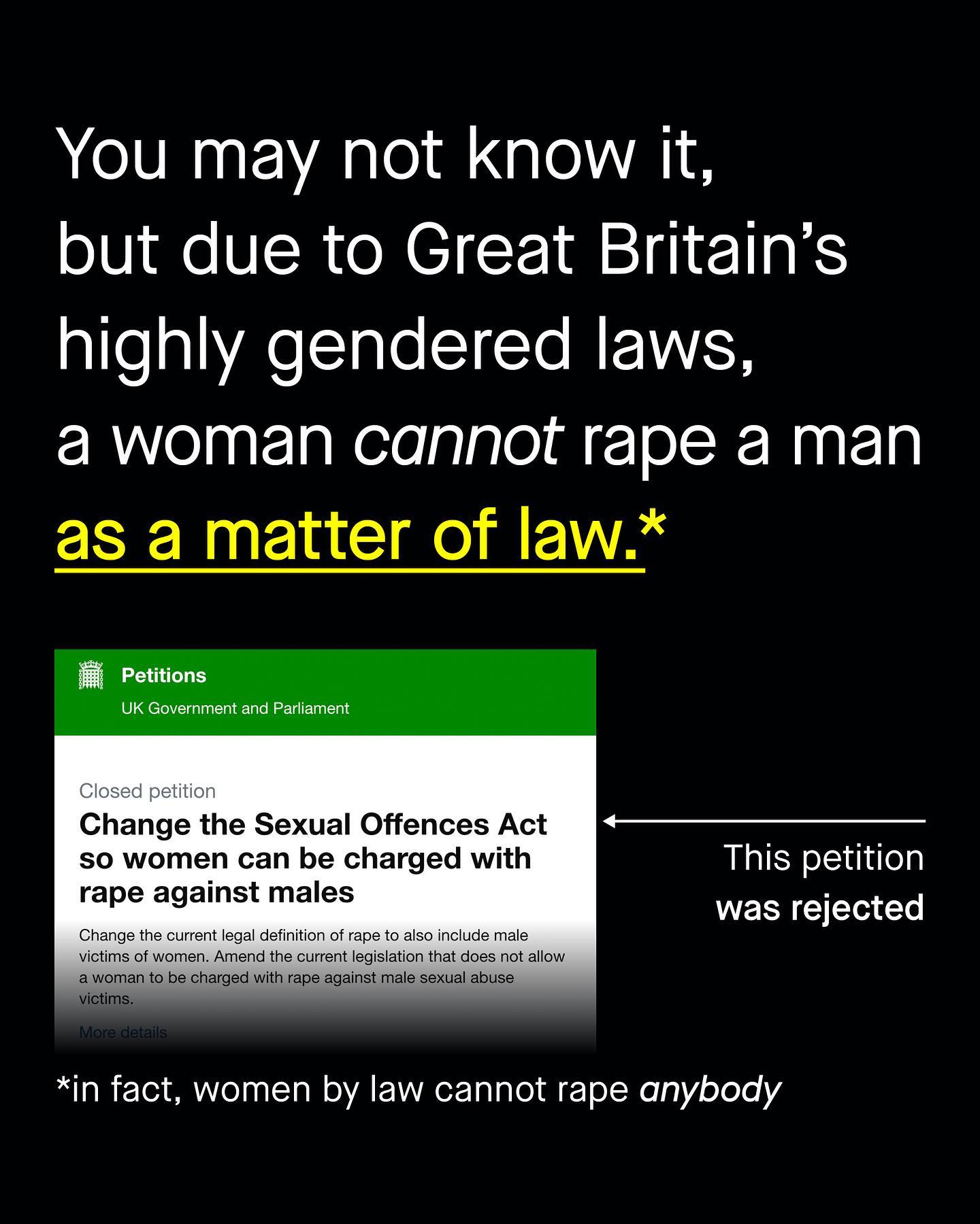 Amongst the scoffs, eye rolls and yells of social media, it’s easy to feel alone in this space. So too it’s easy to feel hopeless. To feel that nobody cares about men and boys; to think that the tantrums and whines of a few brittle social media brats, represent the words of the many. But this is not true. You are not alone. Not in the least. People do care about men and boys, they just don’t know what’s going on. And people do agree with us, they are just never asked. Recently however, they were asked, and they turned out for boys and men in staggering numbers. If you follow me, you’ll know that by British law, a woman cannot be charged for ‘rape’ against a man or boy, or anyone else. Quite literally no such crime exists, and changing this legislation to recognise all survivors of rape, has been at the centre of campaigning for men and boys for many years. Now, finally, the public have been asked to weigh in too, and nearly 80% believe a woman *can* rape a man. Whilst those in support of changing the law to recognise this, outnumber those who don’t by nearly four to one. So don’t be fooled, you are not alone, they are. And they will become more and more alone as support for their ideas wanes, and understanding and compassion of men and boys continues to grow. So hold old a little longer. And in the mean time, let’s ask – can women rape men? What do you think? ~ YouGov Poll Images by Gradienta and Mathias Reding from Unsplash Illustration by Alice Noir #sexualviolence #malesurvivors #mensissues
