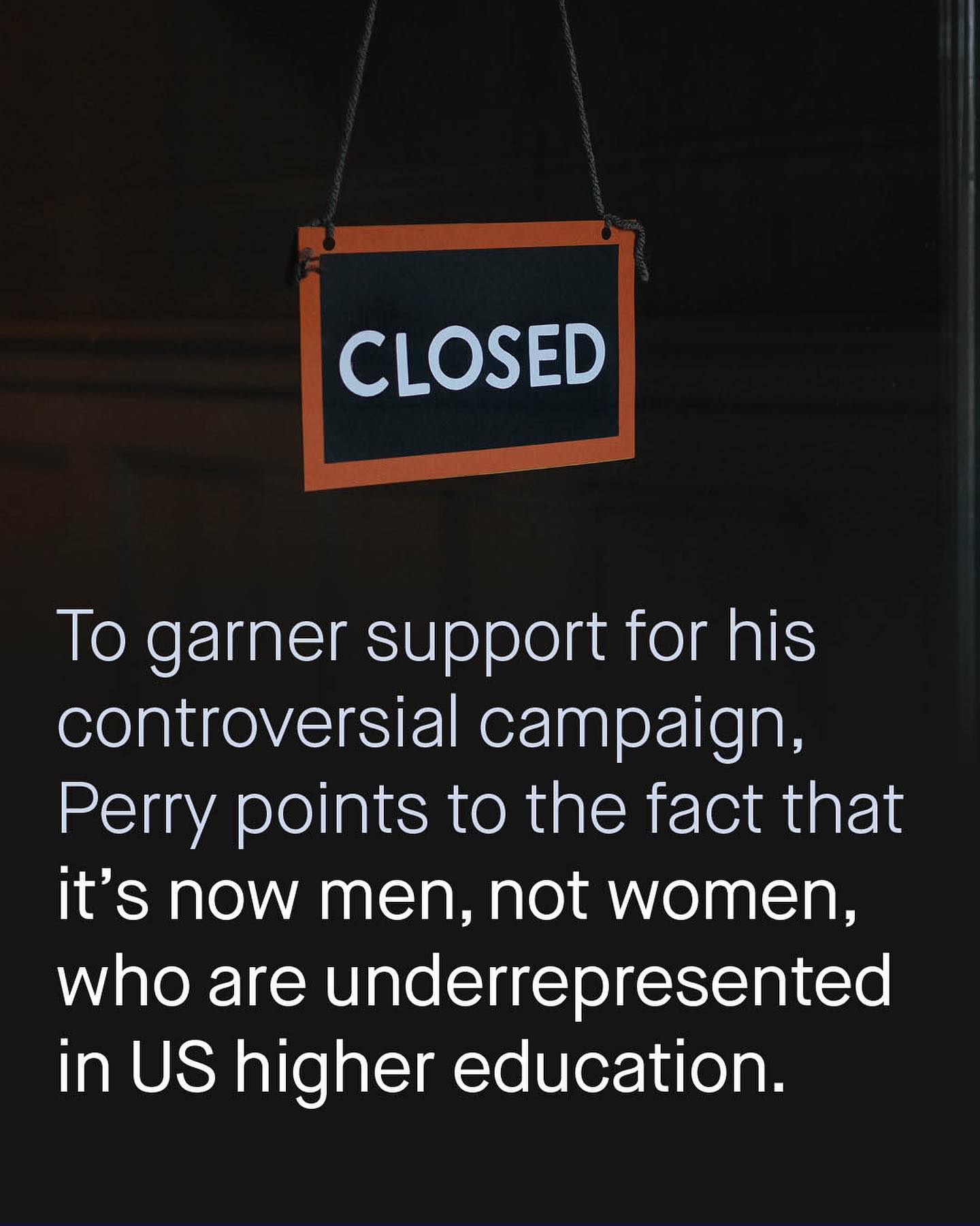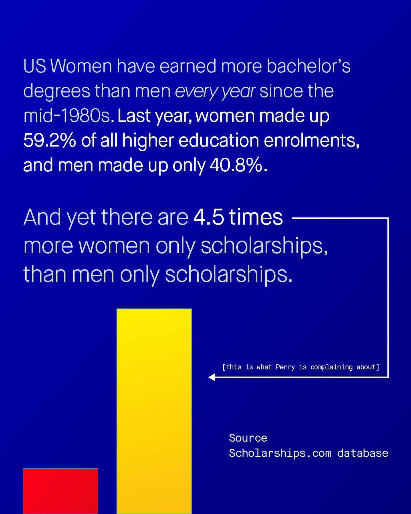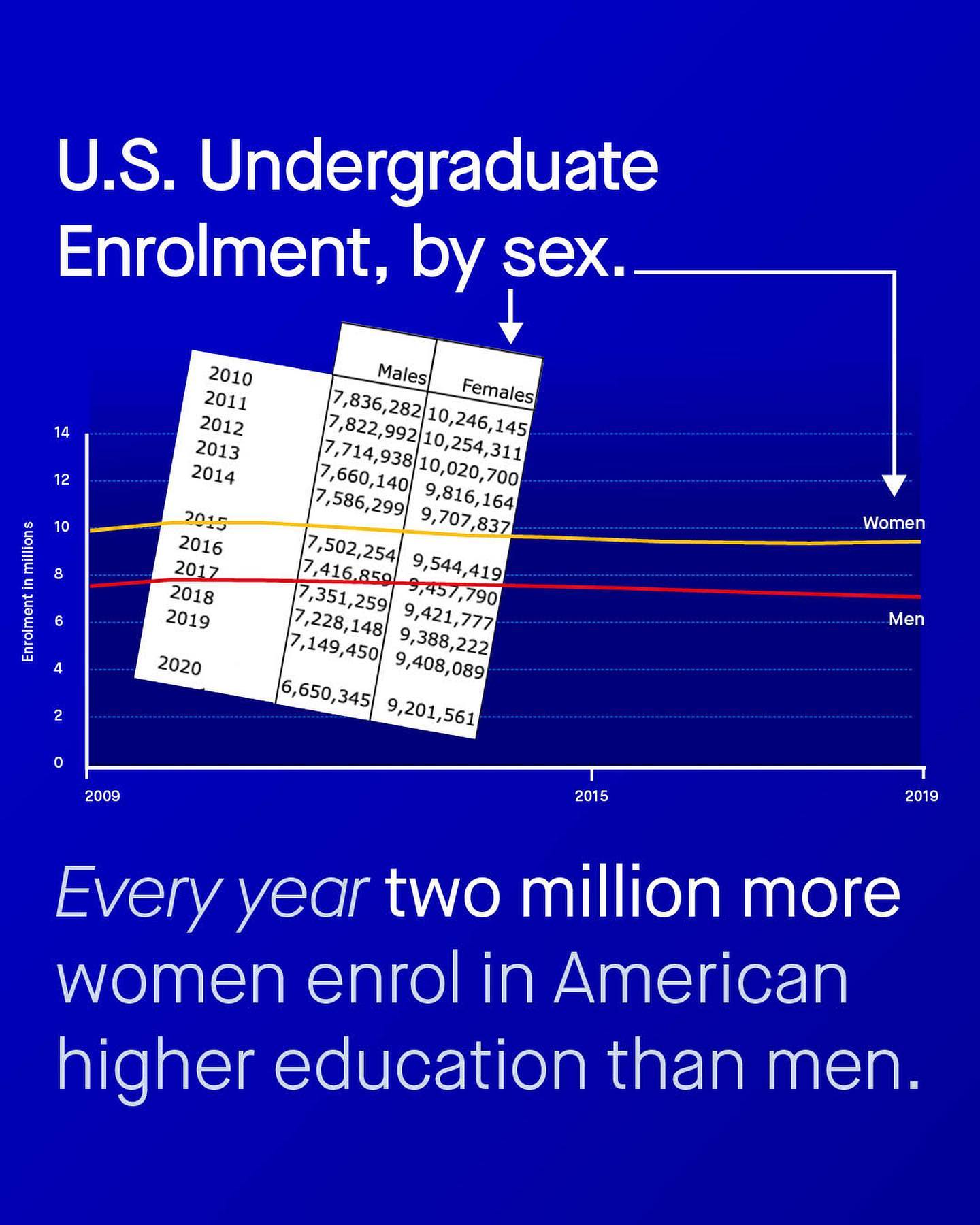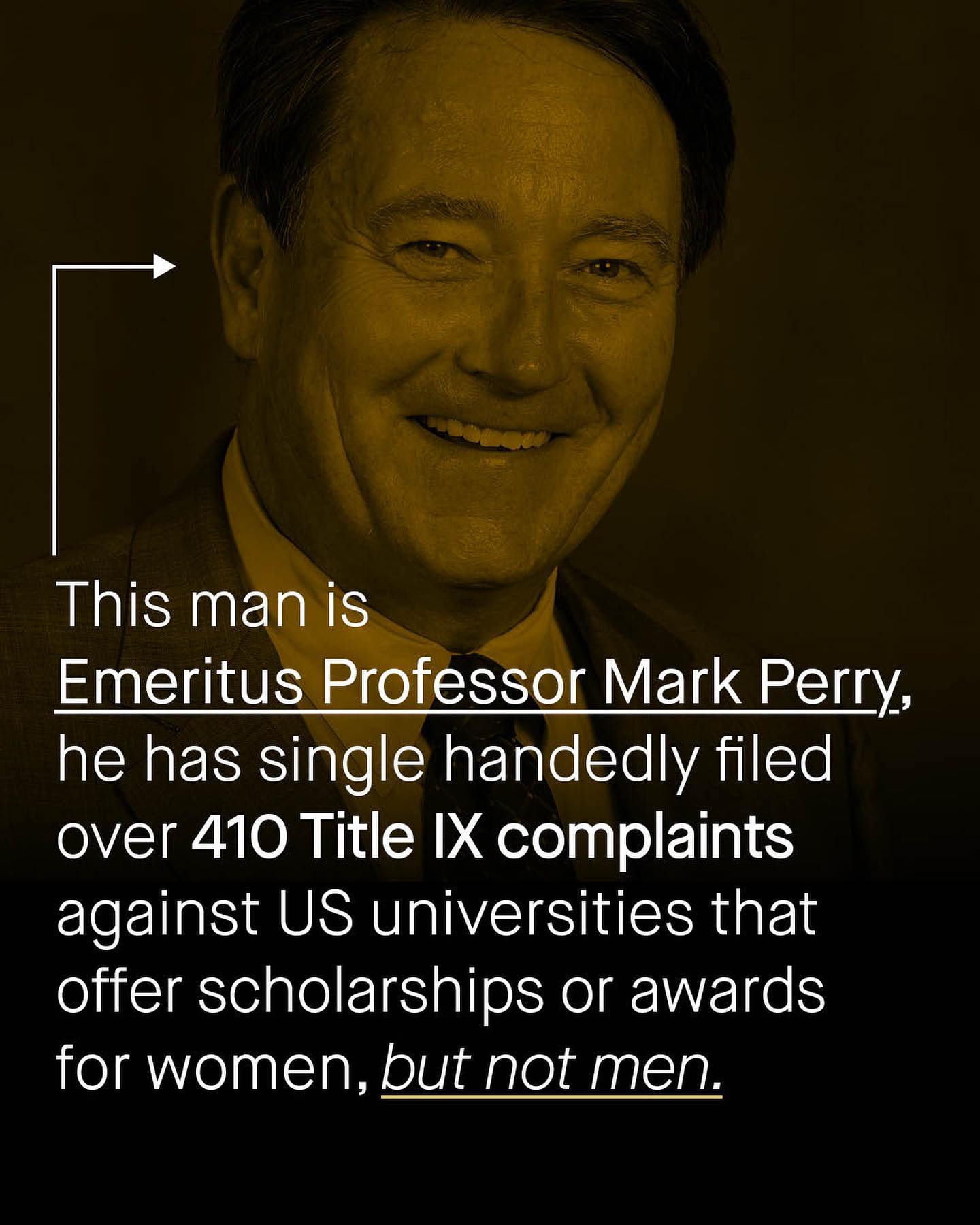 Title IX is a Civil Right in America that makes it illegal to discriminate in education on the basis of sex. 50 years old this year and originally intended to help women and girls, Title IX has now being used in the opposite way – to address the huge educational attainment gap that hurts American men and boys. Today – girls are advantaged in Western education, and have enjoyed higher enrolment rates than boys for decades. And yet, the vast majority of gendered scholarships and higher education awards in America, continue to be earmarked for women. Yes. Scholarships being given to those most privileged; this violation of Title IX has passed under the radar for so many, avoided in conversation and once again, ignored our media. But not Professor Mark Perry. Who has now filed over 400 complaints to the Department of Education, who have themselves begun taking action against universities. So what do you think? Is Professor Perry the ultimate Karen (or male equivalent), or is he a hero of male advocacy, doing the dirty work so many avoid? What do you think? ~ Sources DES Enrolment Data  Undergrad Enrolment Data  Forbes Title IX Images by Colin Lloyd, Tyler Callahan, Joshua Hoehne, Kelly Sikkema.