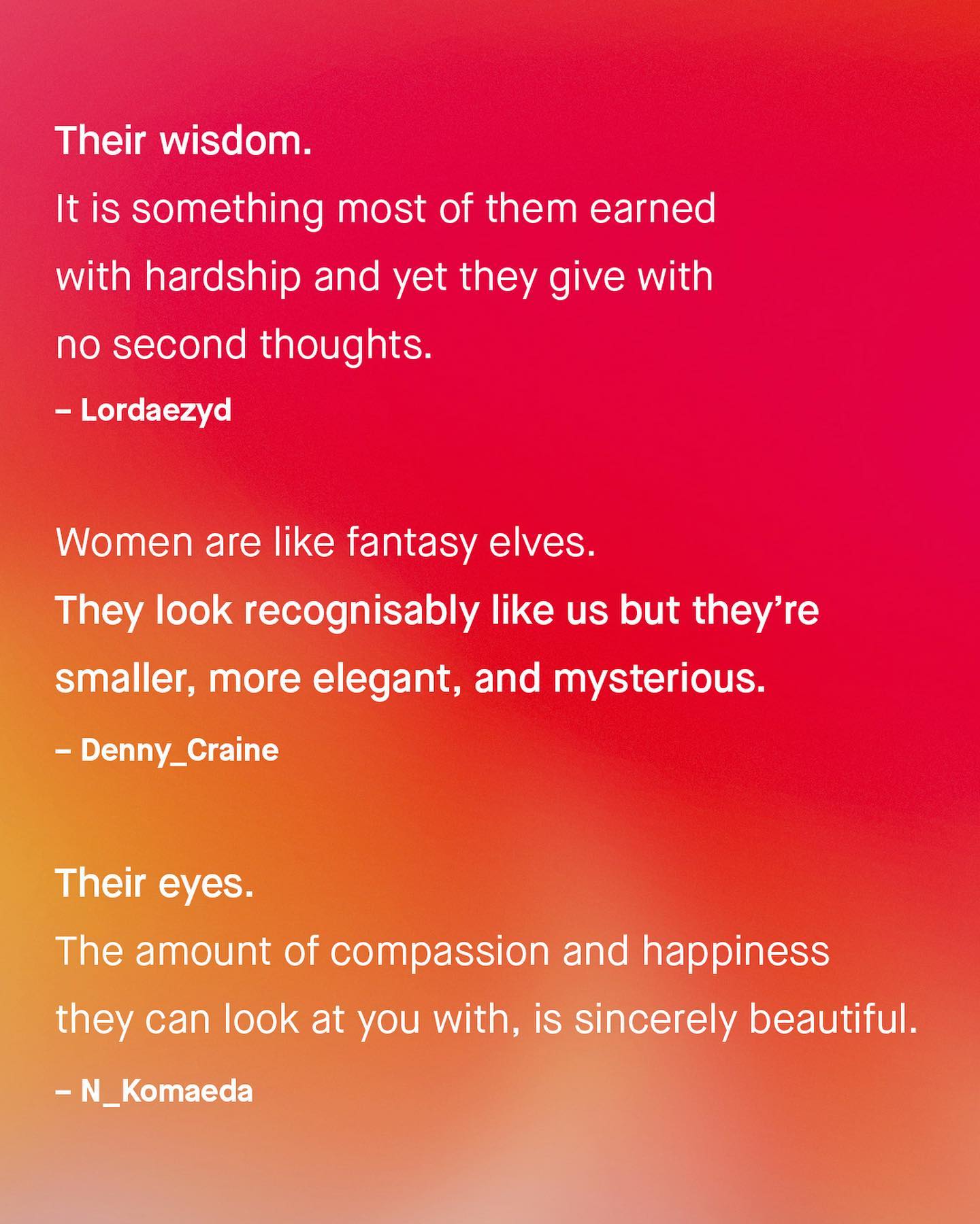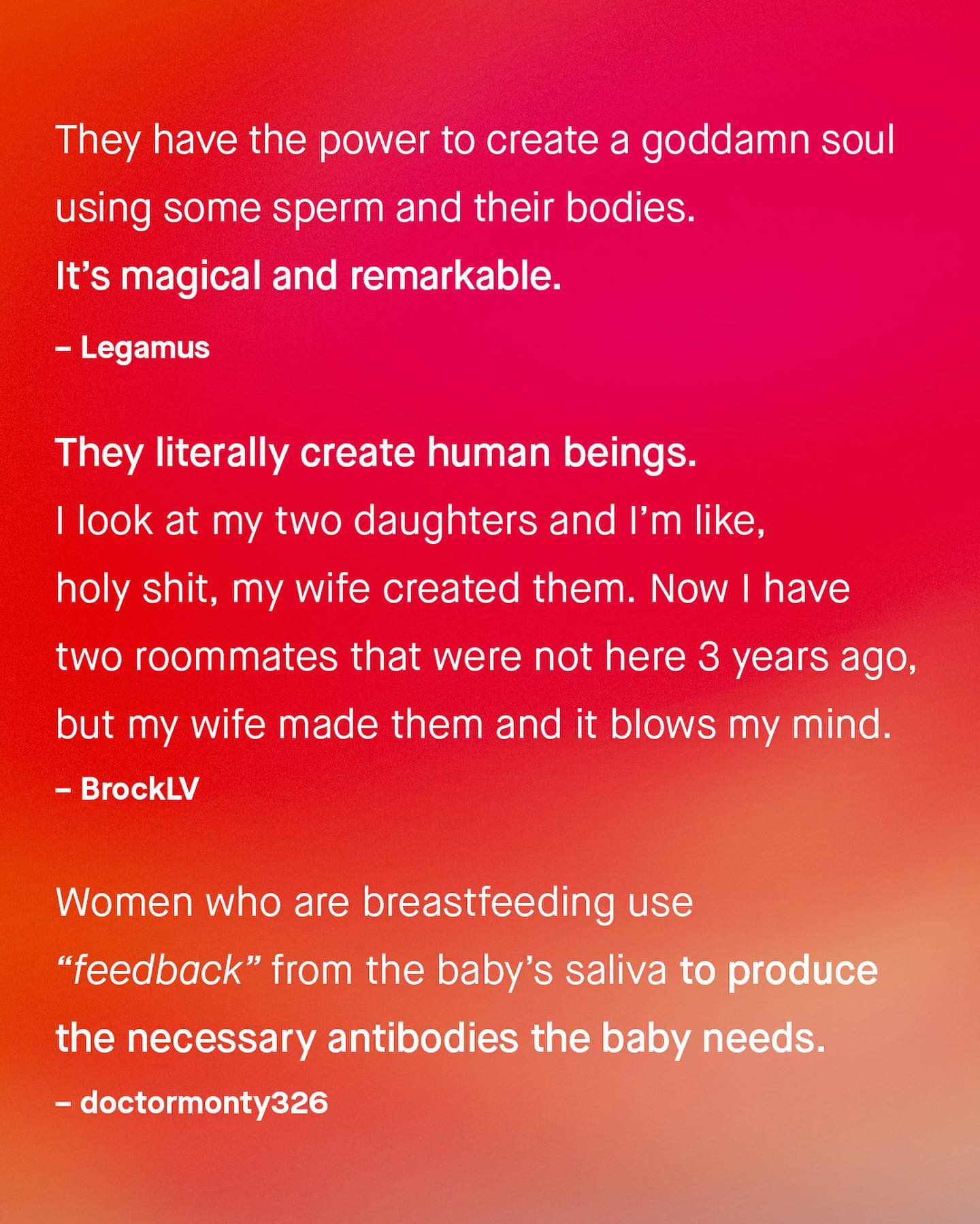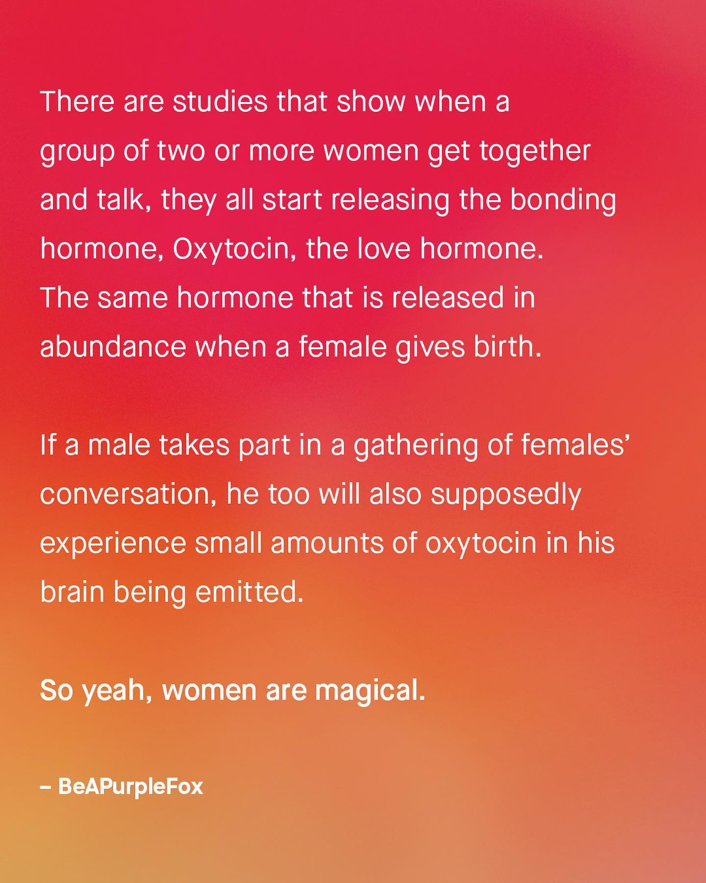As controversial as it has now become to admit, women and men, in general, are not quite the same. I know, this account discusses many of the ways in which women can be different to men, and often in negative ways. But it goes without saying that women’s uniqueness, and their wonderful idiosyncrasies are an overwhelmingly good thing for society. Their contributions, original insights, and invaluable perspective, are a huge net positive, that we simply cannot do without. And not just to society, but to each of us as individuals. So to the guys I want to ask, what do you find genuinely amazing about women? ~ #men #women