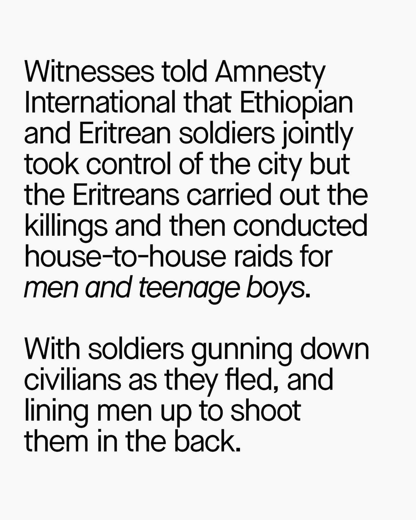 Amnesty are still putting the pieces back together of what happened in Axam in December of last year. The story so far is horrifying, the systemic and indiscriminate murder of men and boys by Eritrean forces – I wonder, will the world wake up to this? News sources Sky BBC Cover image by Clay Knight