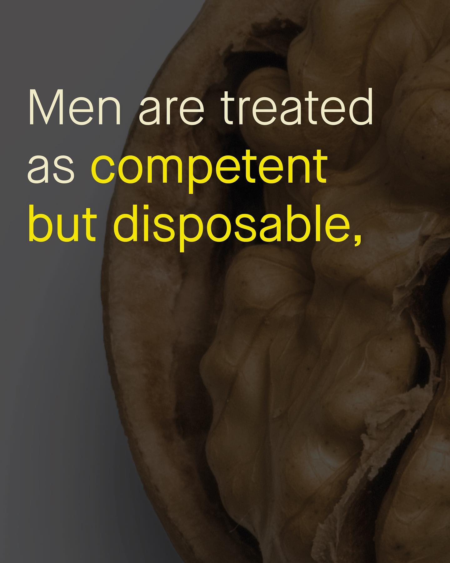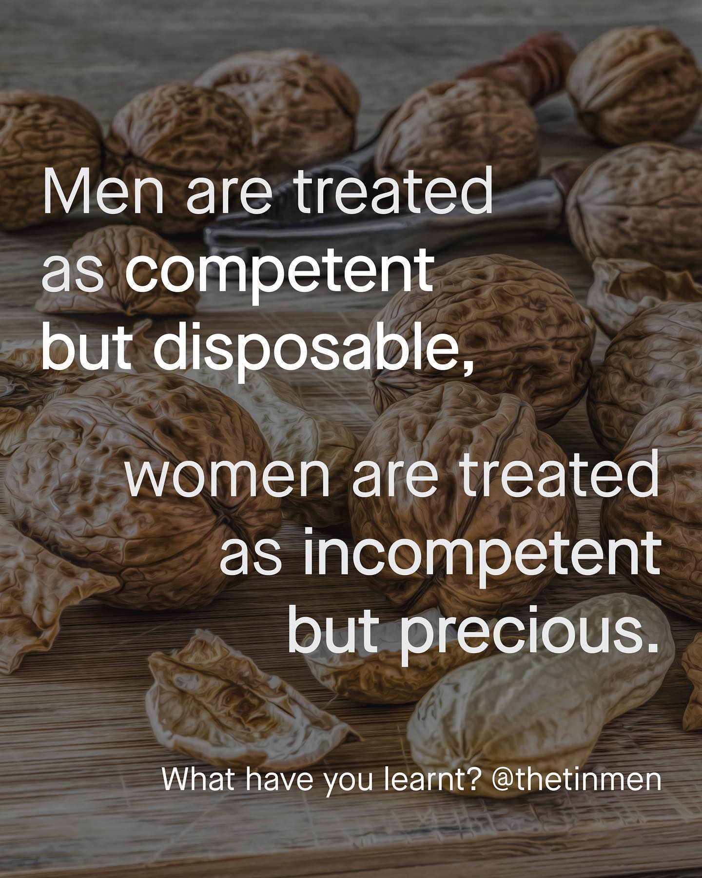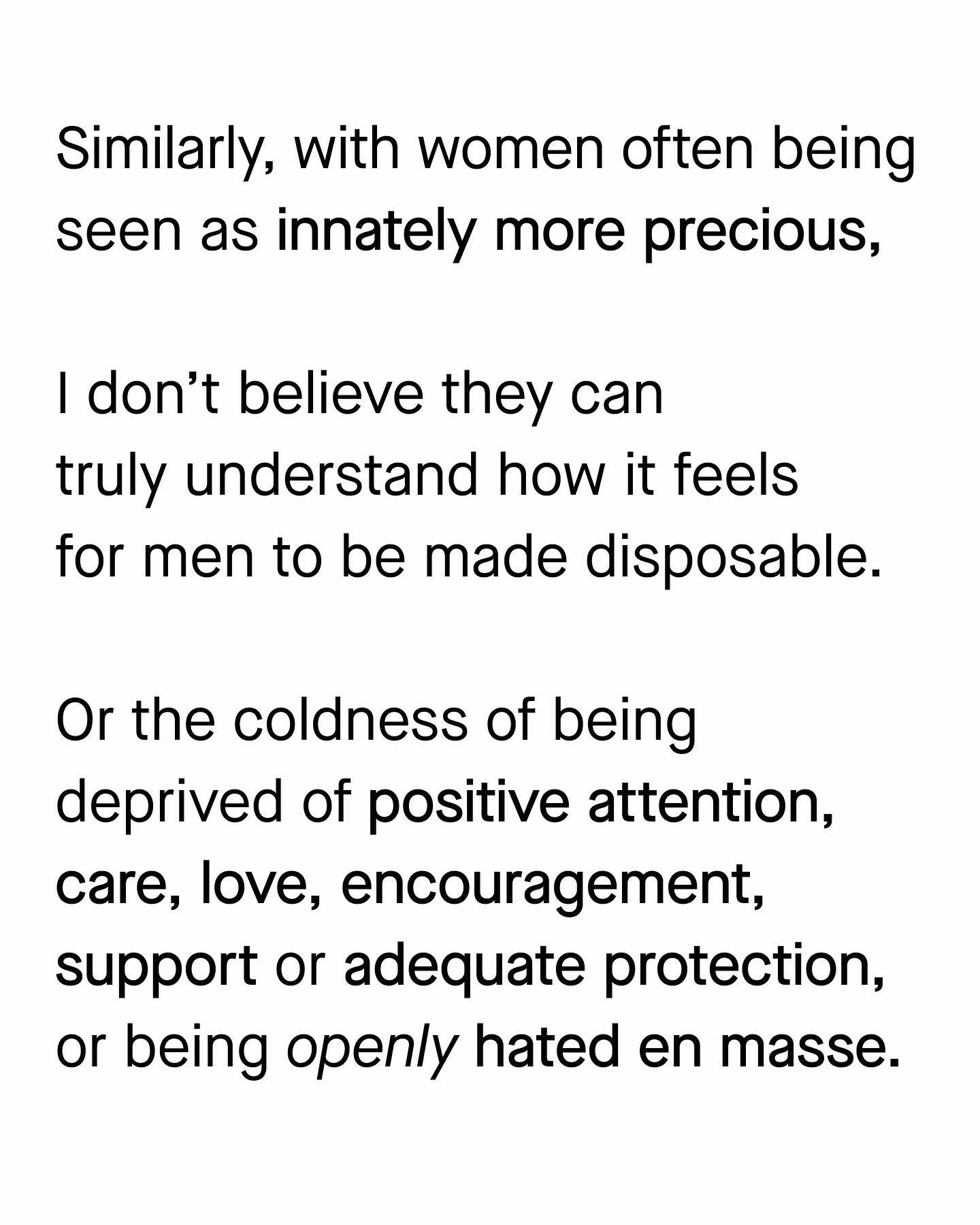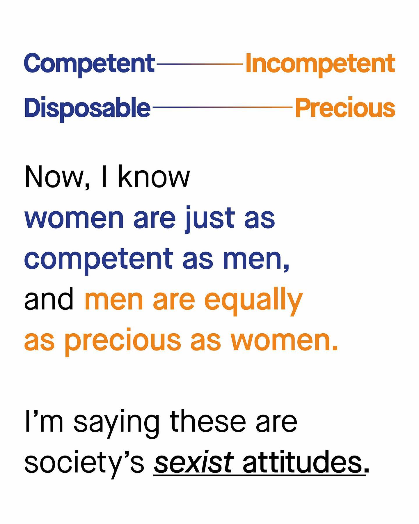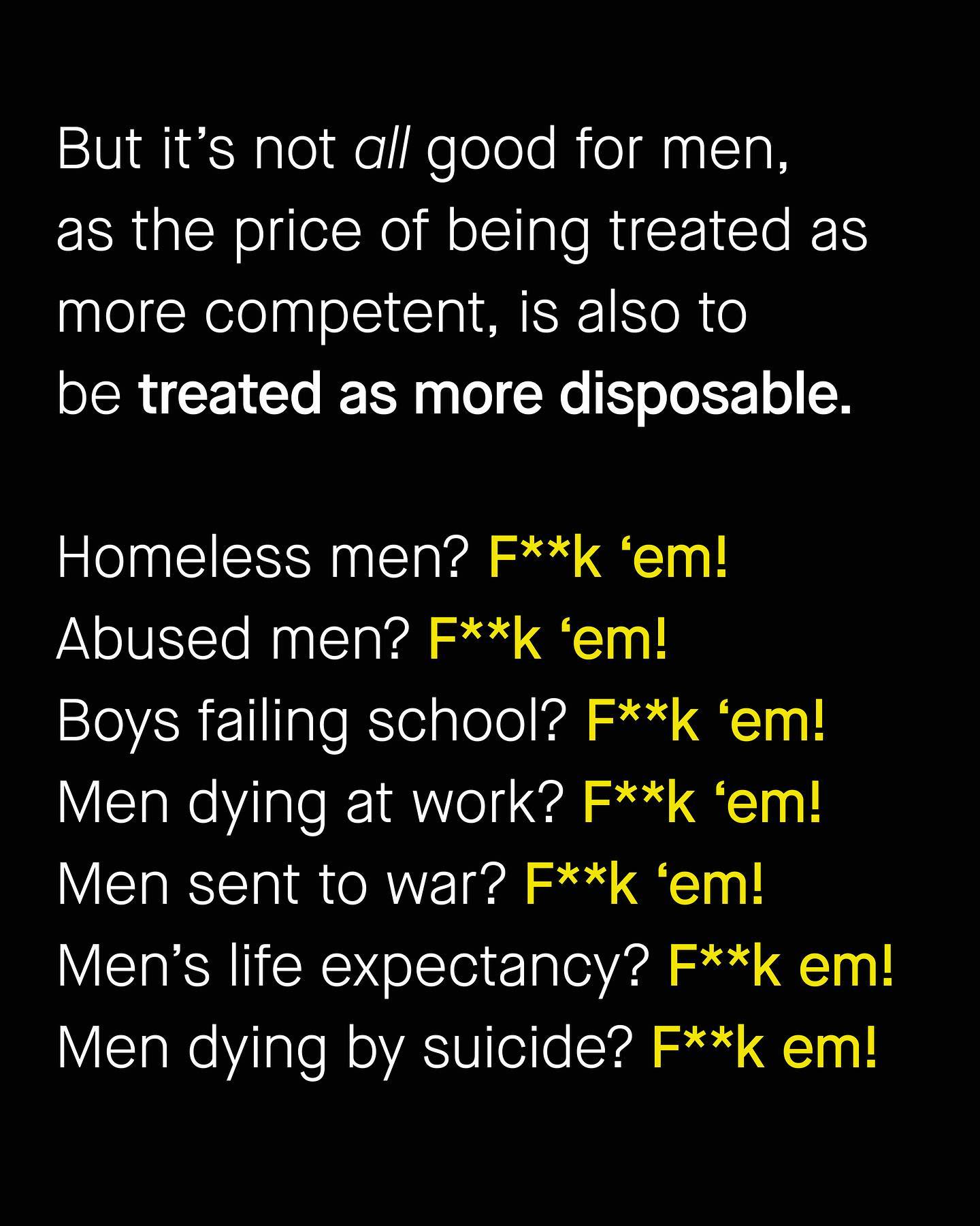 The way society treats men and women is complex, and intersected with so many other variables, such as race, class, age, geographic area and sexuality. What might be right for one, is not so for another. And depending on who you are, when you were born, or where you come from, the rules change – or can invert entirely. But, that said, I have noticed one rule that I find fairly ubiquitous in underlying so many of the painful experiences of women and men, that helps understand sexism from a wider perspective. Something that makes sense of why so little is done to support vulnerable men, and also, why so many women are overlooked, and infantilised as incapable. The problem is, one side will always struggle to understand the other, unless we are truly willing to listen and learn from our opposites’ lived experiences. So in a nutshell, it’s a little like this: ~ Images by Felix Mittermeir and Mock Up Graphics from Unsplash #sexism