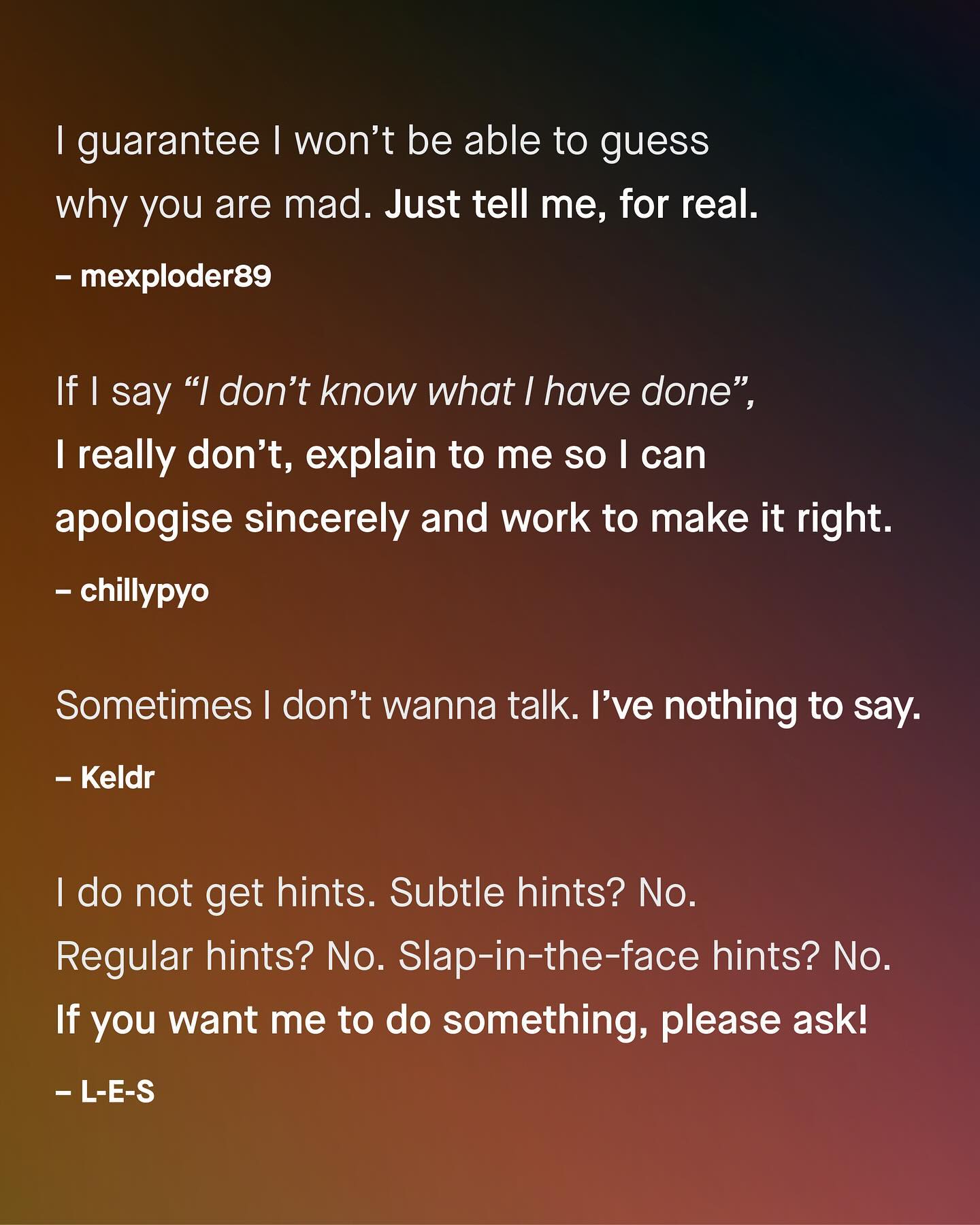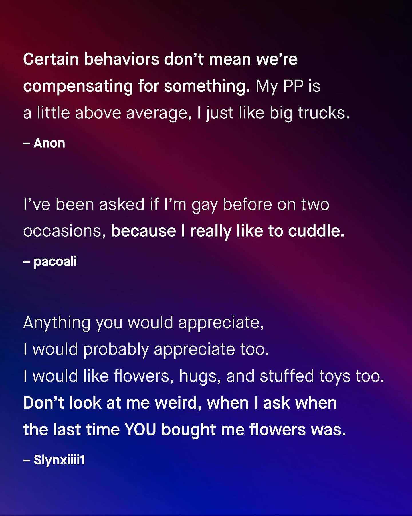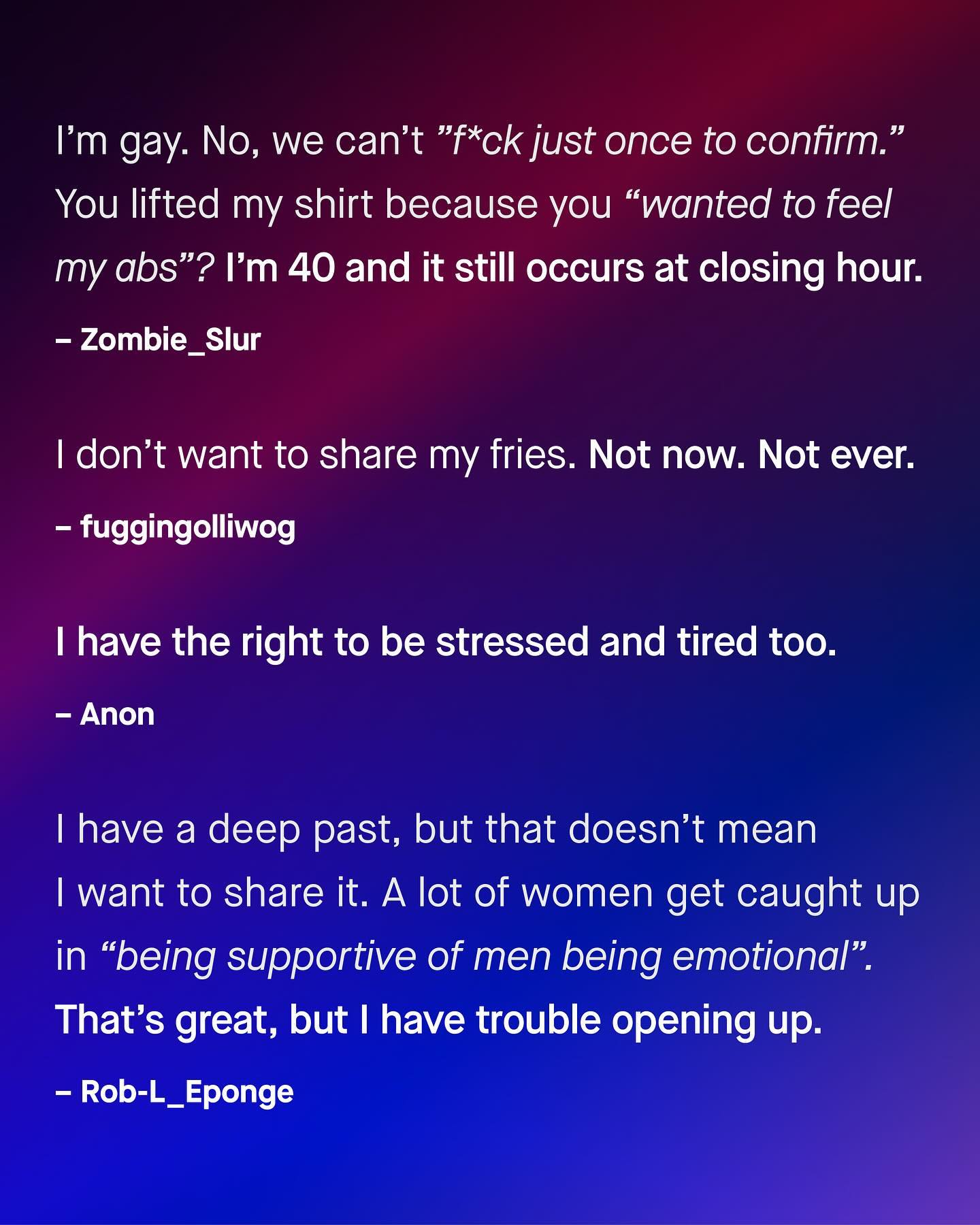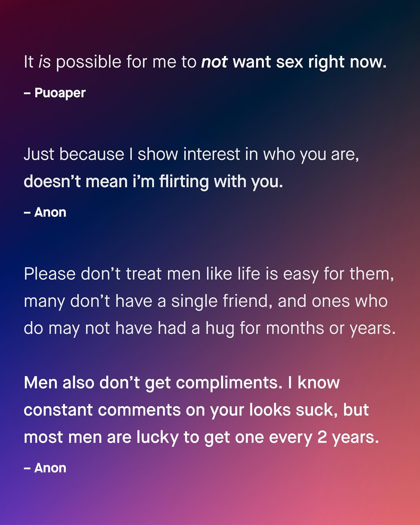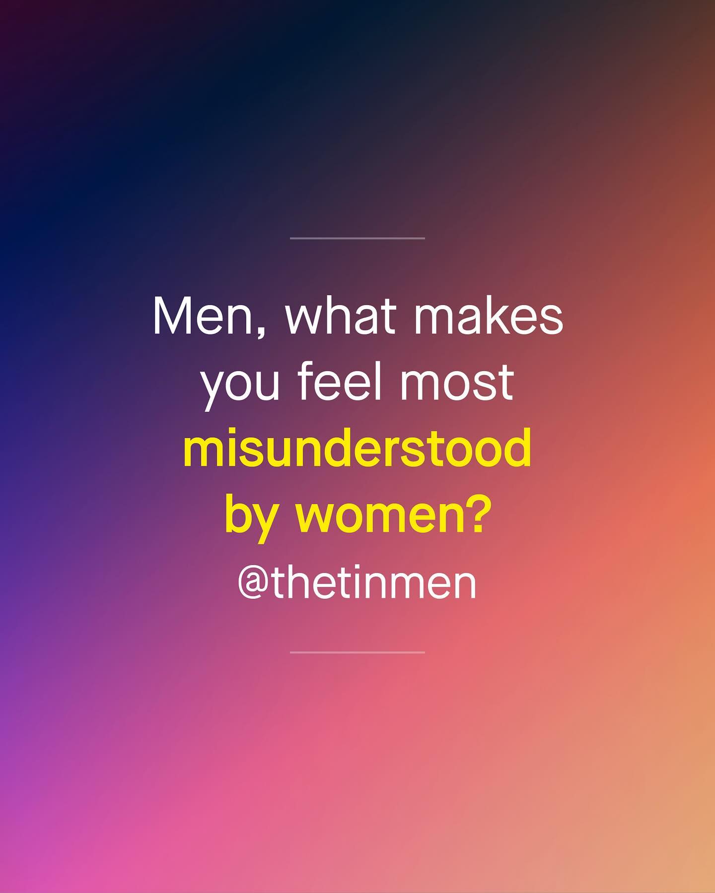 If you’re looking for a quick solution to the deepening divide between women and men, there isn’t one. The only answer is a long, patient journey of sharing, listening, and learning, both to and from one another. You don’t know what you don’t know. And I am sorry, no matter how worldly you think you are, when it comes to the experiences of the opposite sex, then no, you probably don’t know. So let’s try to bring these two halves together, and fill in the gaps. So men, what makes you feel misunderstood by women? #maleperspective #lifeofaman #menandboys