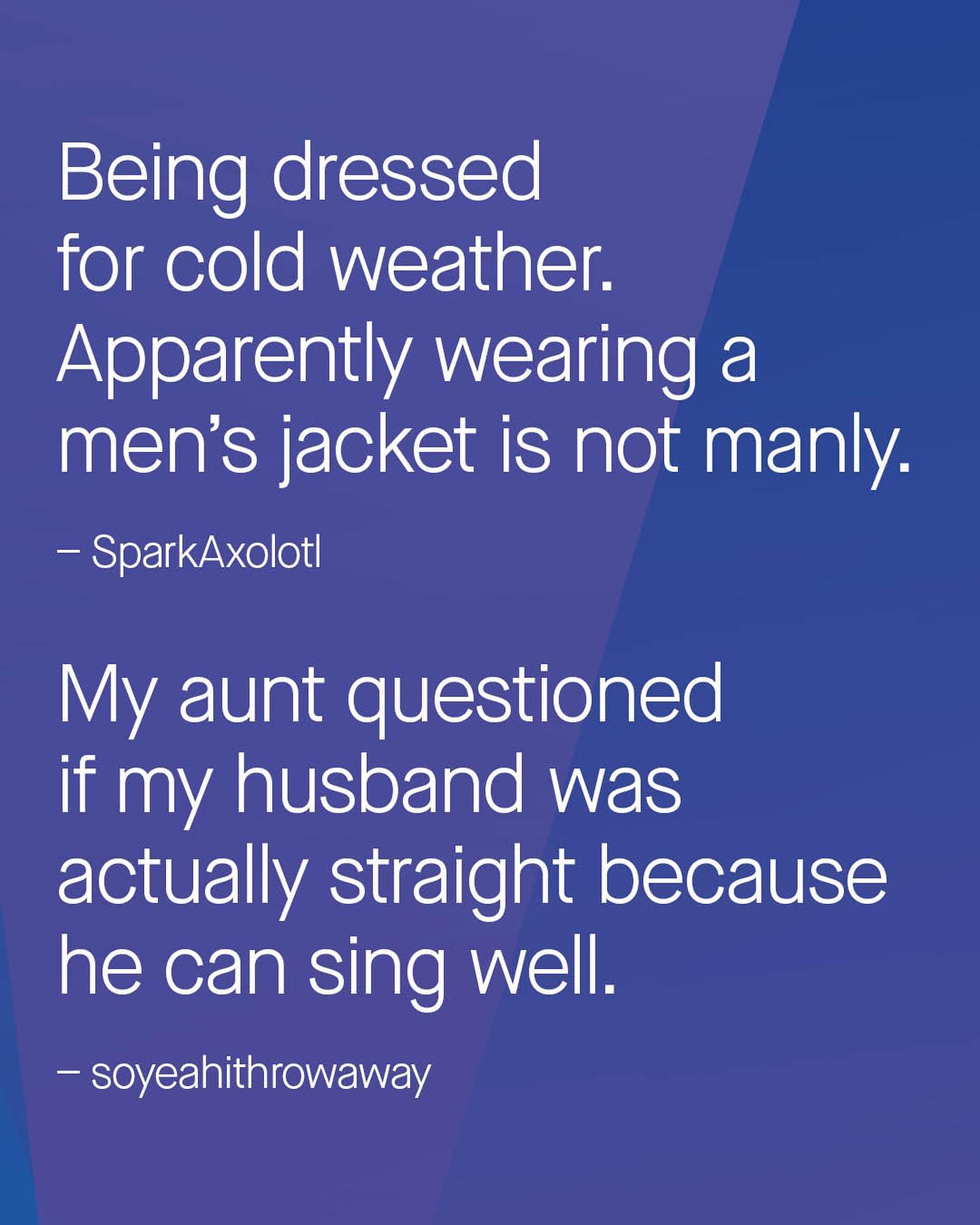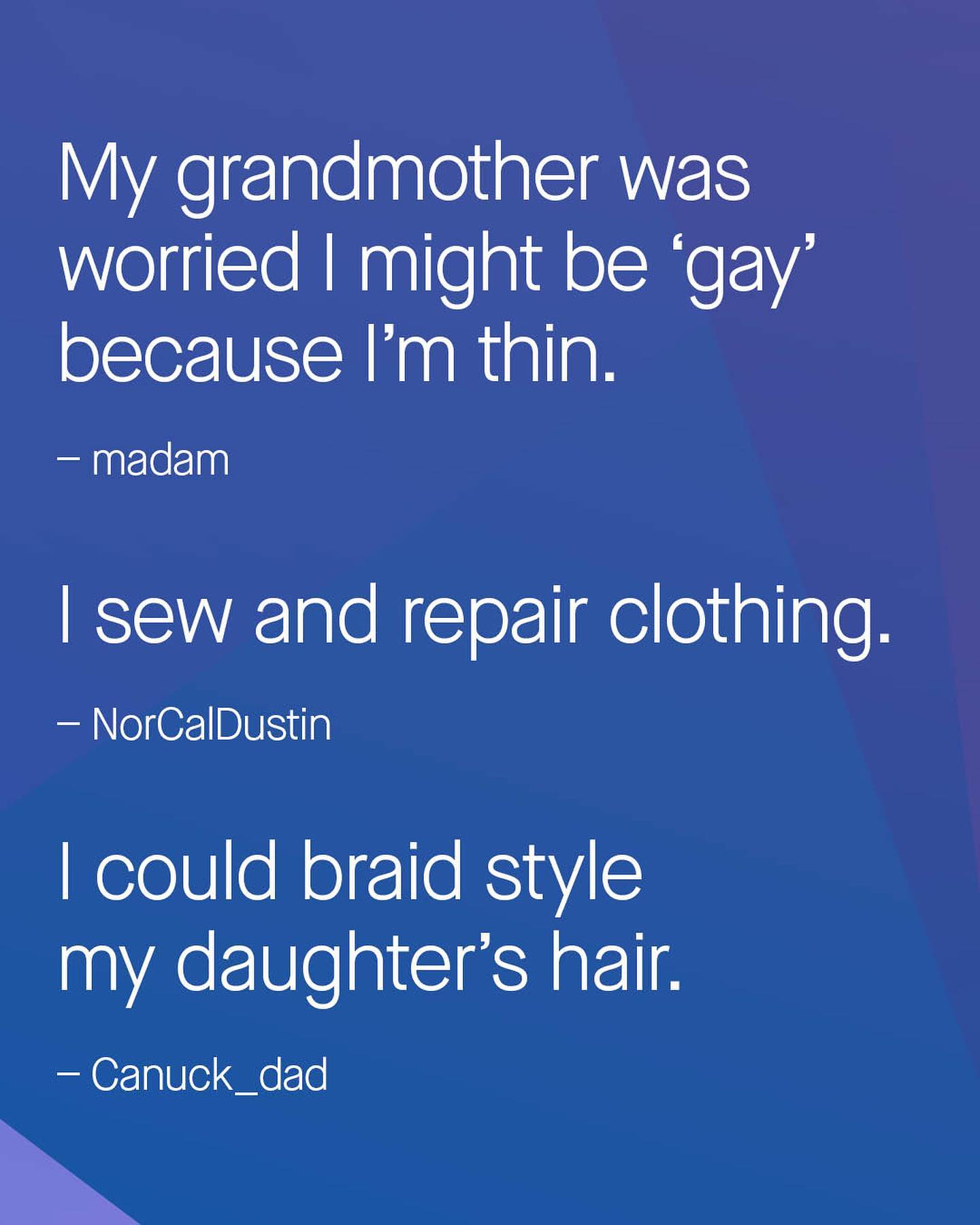 Masculinity, the hot button topic on which everyone has an opinion. What is it, where did it come from and why is it important? So I wanted to ask the fellas, what’s the most ridiculous reason why someone questioned your masculinity? More here - https://tinyurl.com/bdd9n9u5