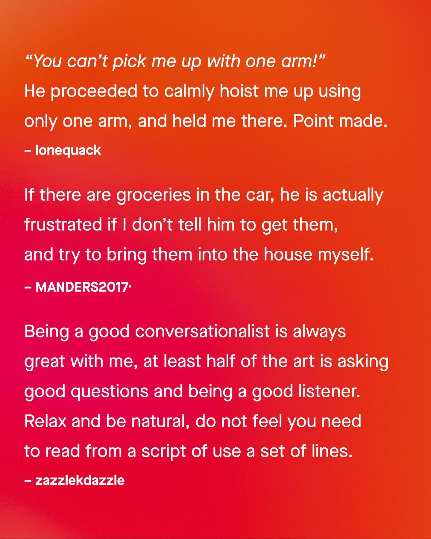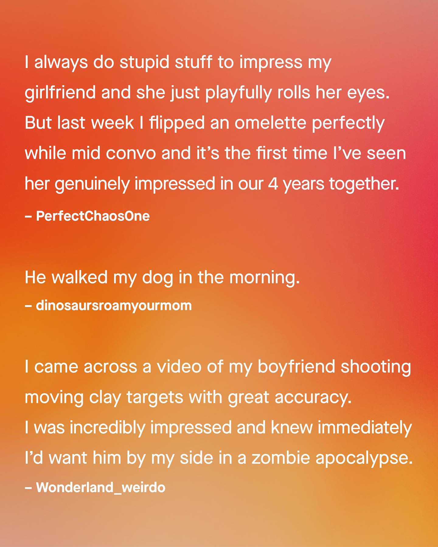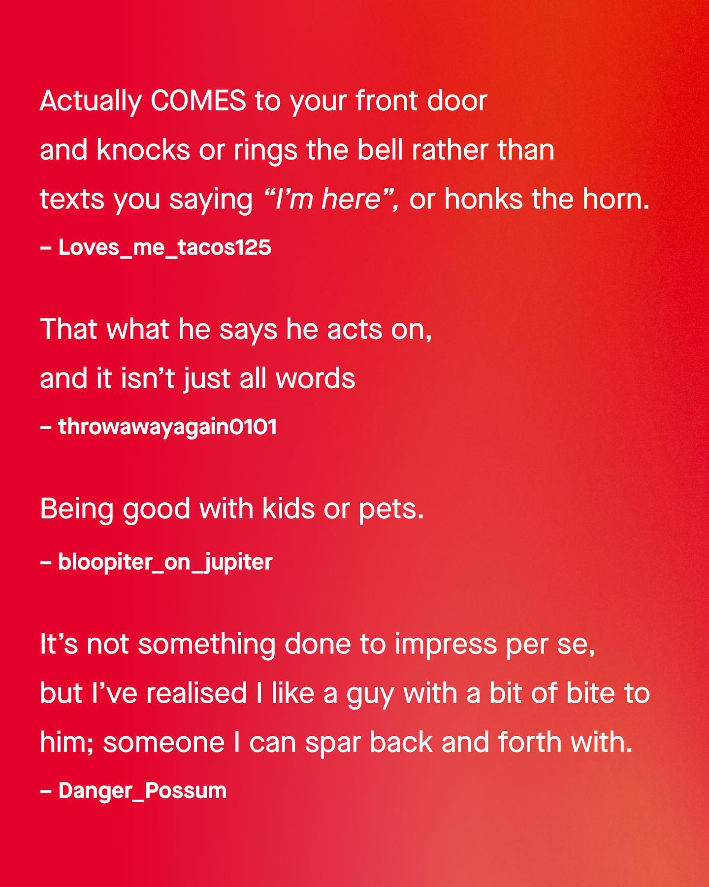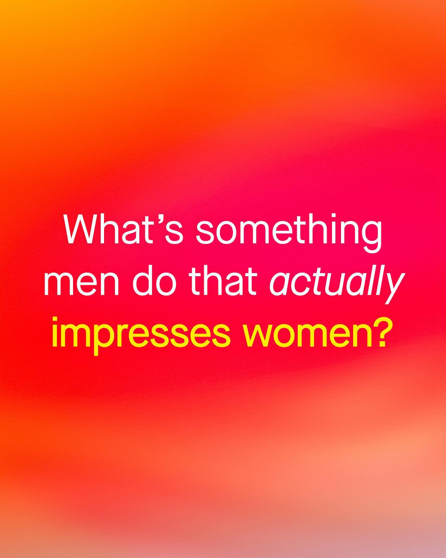 The conversation of ‘what impresses women’ continues to be had by obnoxious podcast bros, who are, decidedly unimpressive to women themselves. It blows my mind, the very last thing I’d ask any of them, is dating advice. Especially when so many women are openly telling us what impresses them, and are more than happy to give men the cheat codes to winning their heart. Ironically, the things that seem to work are not supercars or expensive watches, crypto portfolios, or undermining their confidence… The things that work are kindness, and humour, washing the dishes once in a while, making her coffee, walking her dog, or showing an interest in her day. Seriously. Why save up for a Bugatti Veyron, when reading a couple of books, holding a conversation, helping around the house, or giving her grandma a hug could do far, far more than any million dollar car. The job is almost done for you, if you just listen to what women really find impressive (rather than other men). Images by Codioful