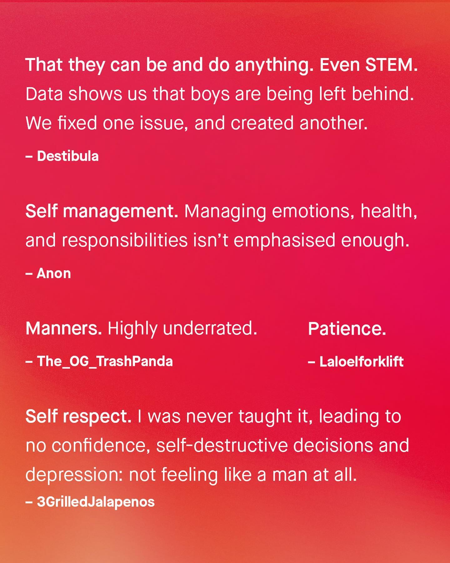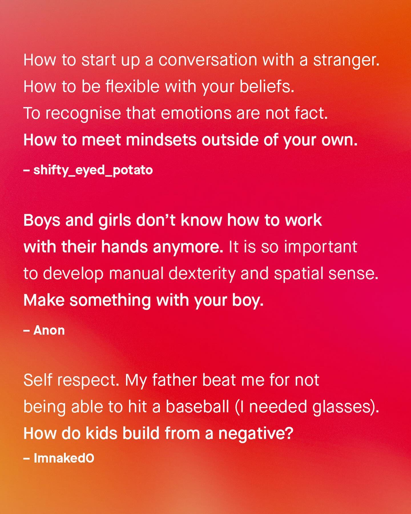 For so many, to grow up as a boy, is to be told you are living life on ‘easy mode’. But if you honestly look around at the world right now; at the hostility toward, and betrayal of boys, you might see a starkly different story. As a boy you are less educated, less safe, less protected from harm, and will face higher mortality rates every year, than your female counterparts, for your entire male lives. Boys are more likely to be excluded from school, more likely to be a victim of modern slavery and sextortion, more likely to fail education and run away from home, more likely to be stabbed on the streets, to be killed by a police officer, to be incarcerated, or join a gang. More likely to be a victim of modern slavery, or experience dating violence, addiction, and lonliness, and more likely to lose their life to suicide. Millions of boys are being raised without a father, for whom there are seldom positive male role models at school, on the TV, or in the media either. And so a dearth of positive male role models, and the failure of progressive politics, has created a power vacuum into which grifters like Andrew Tate, and other insecure men, have climbed in. So yes, the journey of a boy child in 2024 can be a solitary, painful, and misunderstood experience. It is to be openly shamed by society, to be spared of compassion, dignity and support, and to instead be immersed within shame laden, paranoid political theories instead. It is be called “toxic” at the earliest possible opportunity, to be seen as predators in waiting; roundly condemned for quite literally everything wrong in the world, as the newest members of a nonsensical monolithic oppressor class of men. Such a set of experiences will quickly steal the innocence of any child, and ironically, likely push them into becoming the very thing we accused them of. So have we failed boys, and what advice do they so desperately need to hear? What do you think? - #mensmentalhealth #malesuicideawareness #mentalhealth #parentingtips #dadlife