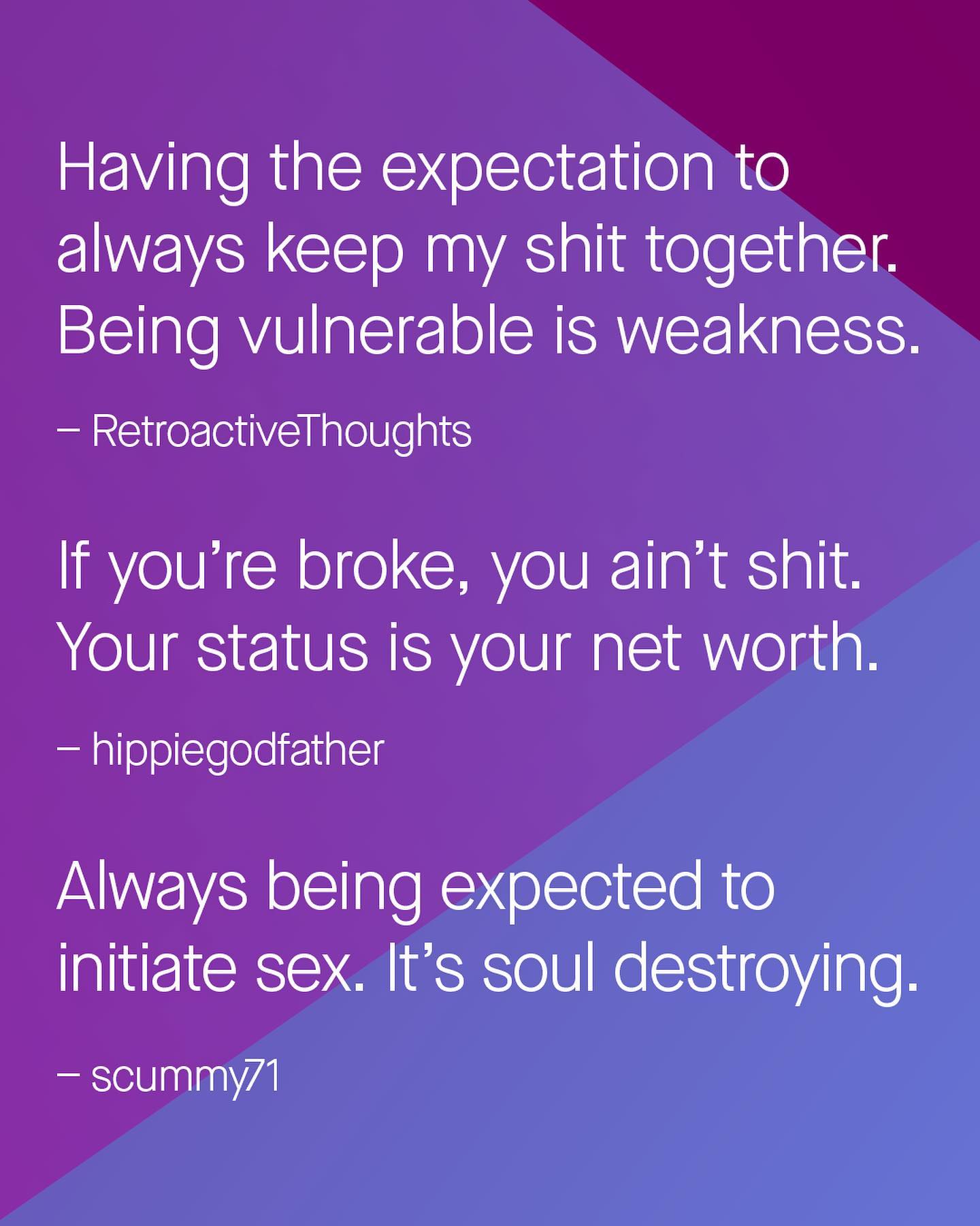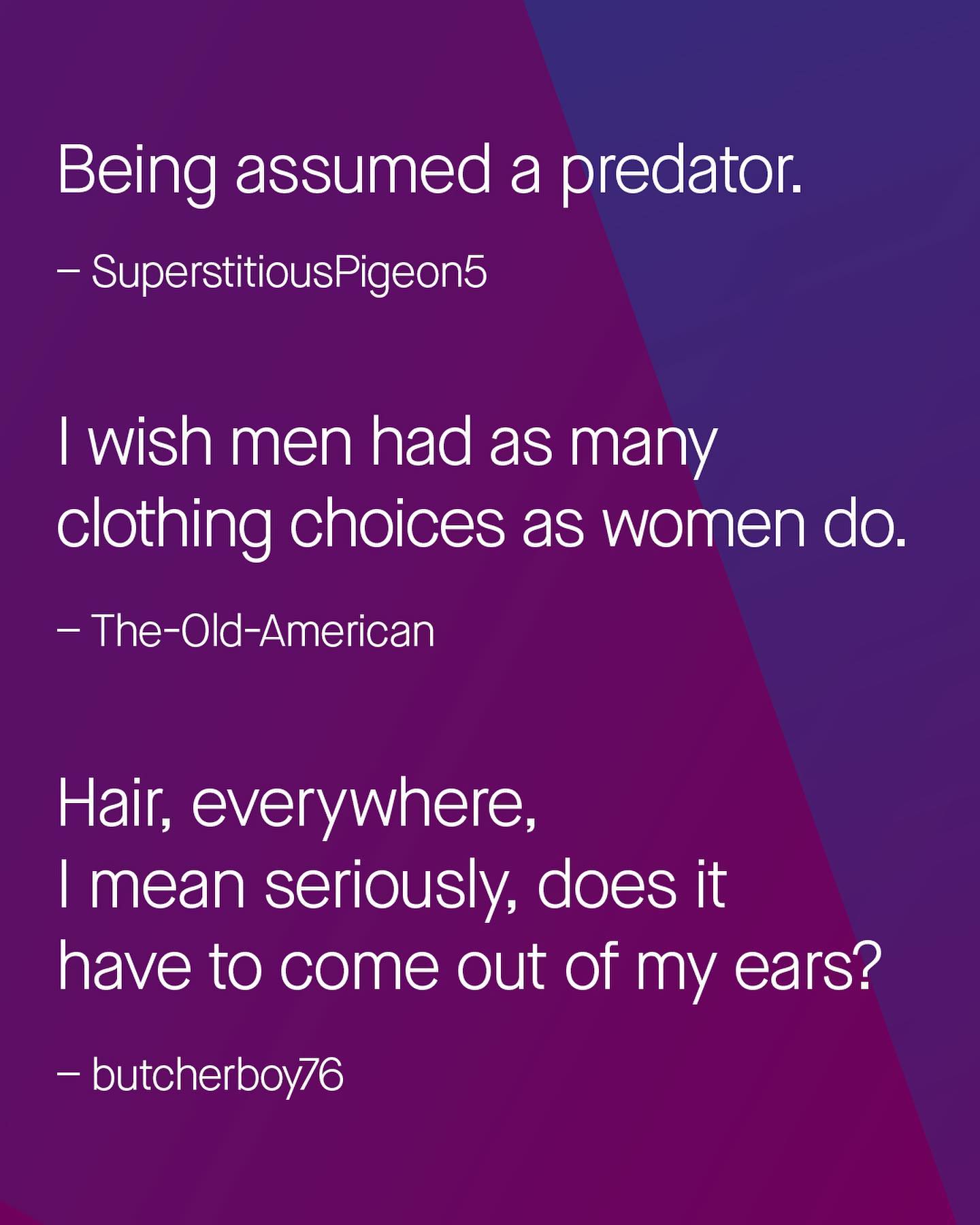 As men we’re frequently told we’ll never truly understand what it’s like to be a woman, and I agree that is true. But are women really any closer to understanding what it’s like to be a man? Take a read and you tell me.
