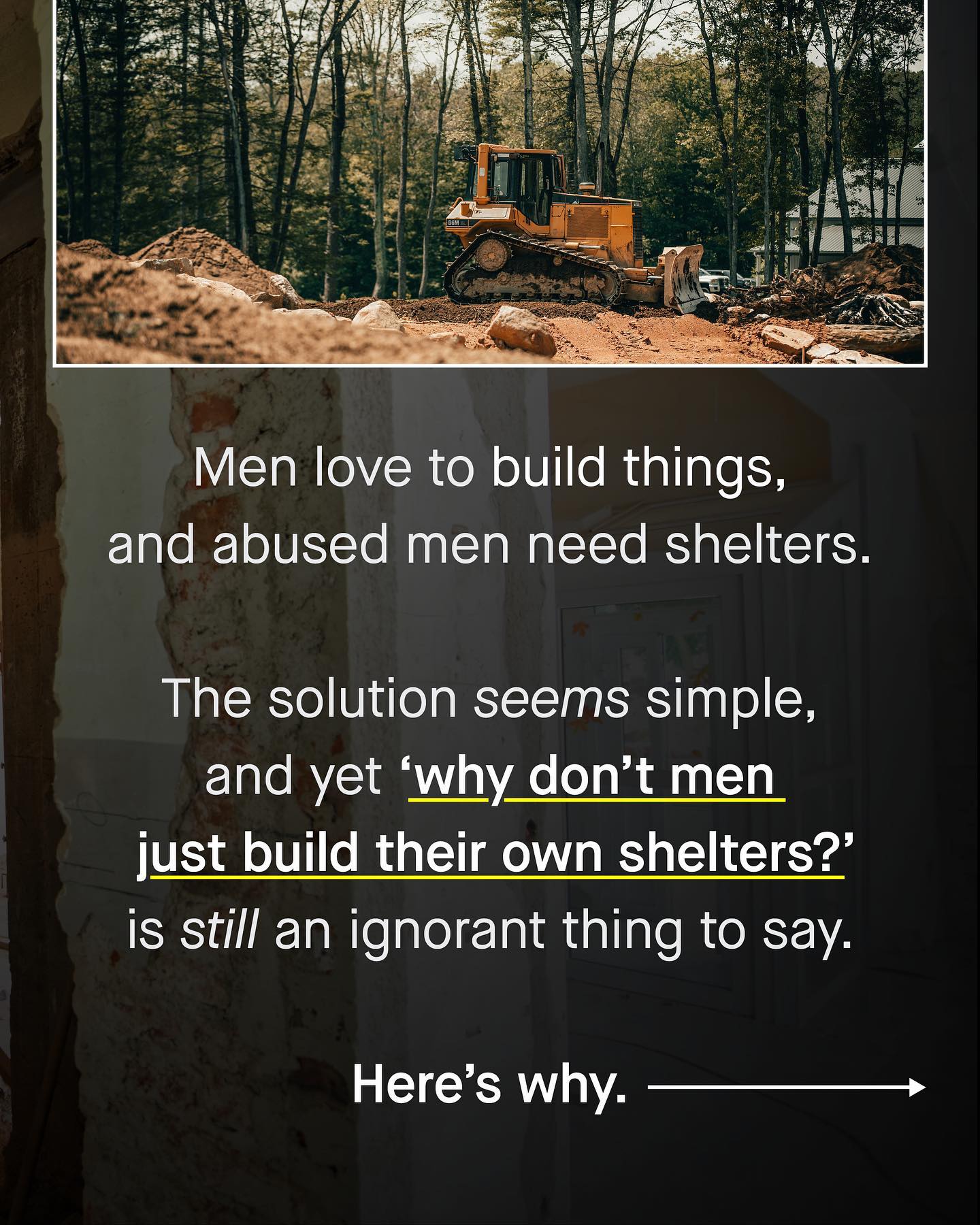 It was men who built the pyramids and laid the great railroads. Yes, it was men who laid down the bedrock of society; from the buildings high above, to the infrastructure deep below, all of it was built by the hard work of hardened male hands. And so the problem of there being no shelters for male victims of abuse, seems kinda simple to solve? Let’s build them boys! 🔨 How hard could it really be; bricks and mortar, some timber, chuck in some hard hats and some elbow grease, and were done. In fact, funnily enough, it wasn’t women or bra burning feminists who built the first women’s shelters, in fact… it was men. So why can’t the boys get together again, and reunite, to do what they do best? Build. Why can’t ‘men build their own refuges’, as you’ll probably hear asked around social media. Well, the issue is not necessarily the building itself, the boys love that, the problem begins when the building is done. For there is a huge amount of hostility around the idea of men’s spaces, especially refuges, and to make it harder there’s quite literally no funding to help build them. Many of tried of course, but each have fallen at the wayside of contempt, anger, neglect, outrage, or apathy. For the world will congratulate and pat you firmly on the back for building spaces for vulnerable women escaping violent homes, and rightly so. Just don’t expect that to last if you try to do the same for the men and boys. The smiles will drop, the funding vanishes. The proud face of joy turns to a snarled lip of contempt. Reminding us that the problem is not what men can or can’t do, because building is easily, the issue is… what are men allowed to do? So tell me, would you ever open a refuge for men? Could you? ~ Image by Codioful, Billy Freeman, Dave AJ, and Brett Jordan. Gelles Refuge Funding (charity commission) #domesticviolence #domesticabuse