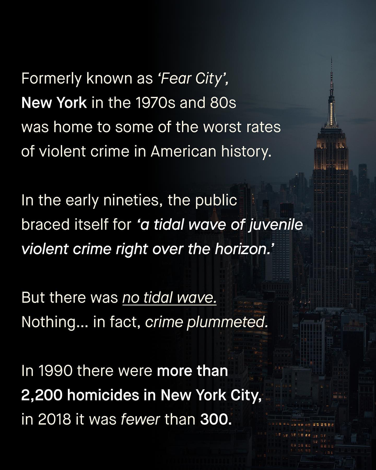 How do we fight violent crime? It’s a subject of discussion fought valiantly in the trenches of social media, often with virtuous calls for ‘accountability’, with any kind of solution placed solely at the feet of ‘men’. But as I shared recently, the majority (63%) of violent crime is perpetrated by a tiny majority of people (1%), meaning any calls to “do better”, will almost certainly be heard by those who already are. For me, a better solution is to look at the times and places where violent crime radically and consistently dropped, to learn from the success of others… And one of those places is New York in the 1990s. In the year 1990, New York, formerly known as ‘Fear City’ experienced 2,200 murders a year, whilst in 2018 that number has dwindled to less than 300 – so what happened? Was it gun restriction? Police training? Or a booming economy? Could it be new pernicious drug laws? Was it harsher sentences, education in school, or public awareness campaigns? Well, as police and politicians scrambled to take the credit, each presenting their own theory… none seemed to really fit. That was until a new hypothesis arrived, a highly controversial one, presented by two economists from Stanford and Chicago, that was based on one thing – women’s right to choose. So do reproductive rights have an impact on reducing violent crime? Let’s talk about the Donohue Levitt Hypothesis. ~ There’s also a great podcast about it here Image by Luther Bottrill, Agreen G, Dan Cristian Padure, Gradienta, Humphrey Muleba, Christian Di Fede, Jason Leung, and Black Kiwi Hug from Unsplash. #violenceagainstwomen #reproductiverights #criminalminds #psychology #violence