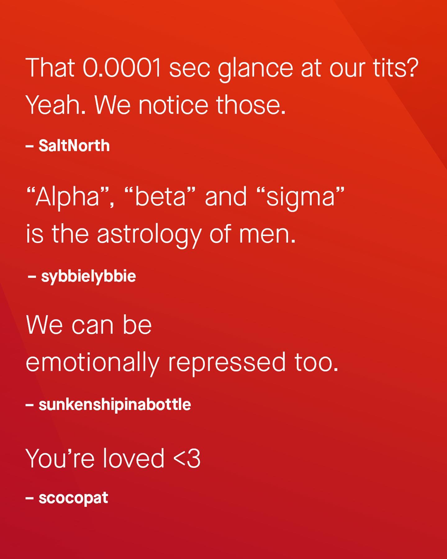 Earlier this week I asked the guys, and now it’s only fair that I ask the women – so what are men not ready to hear?