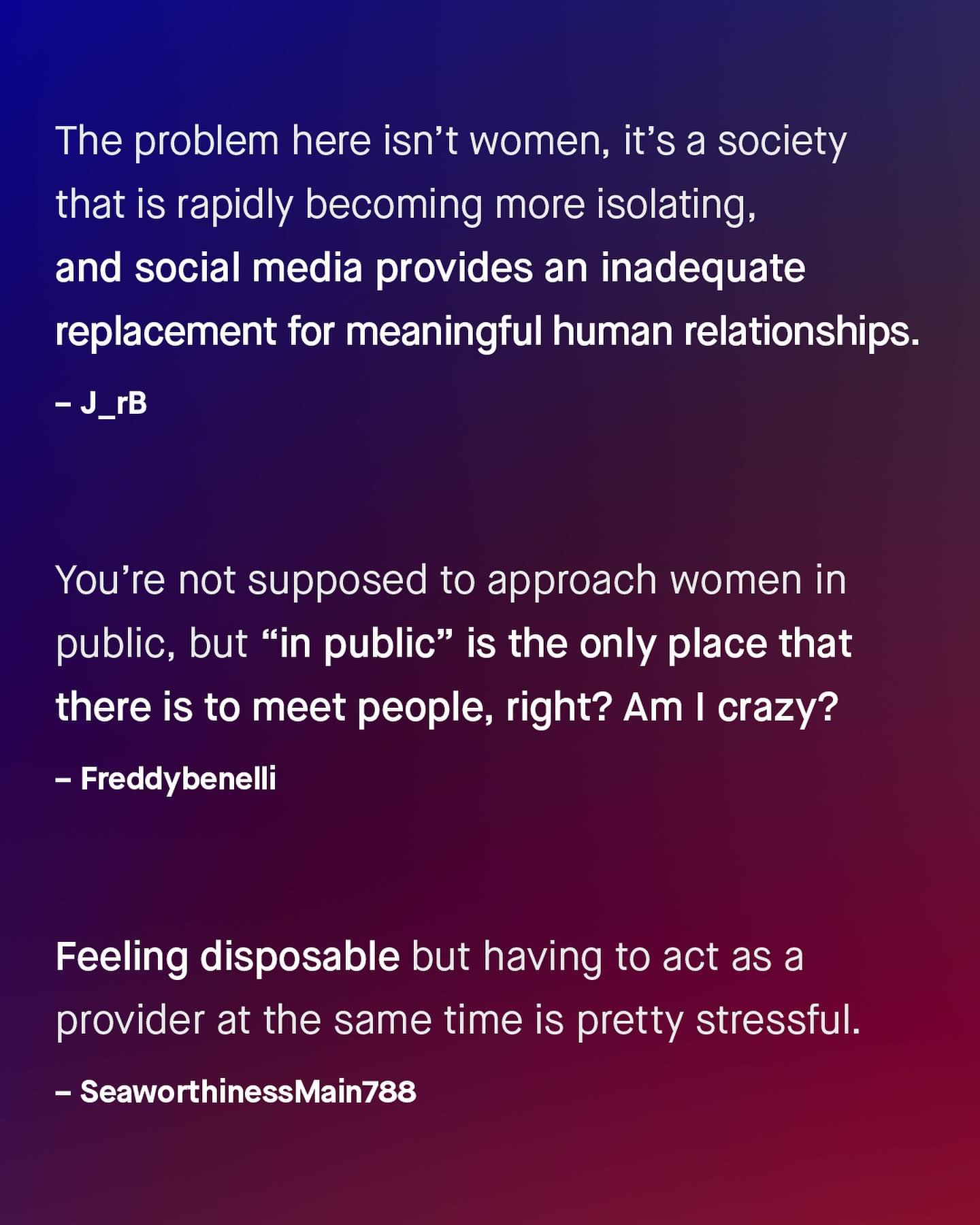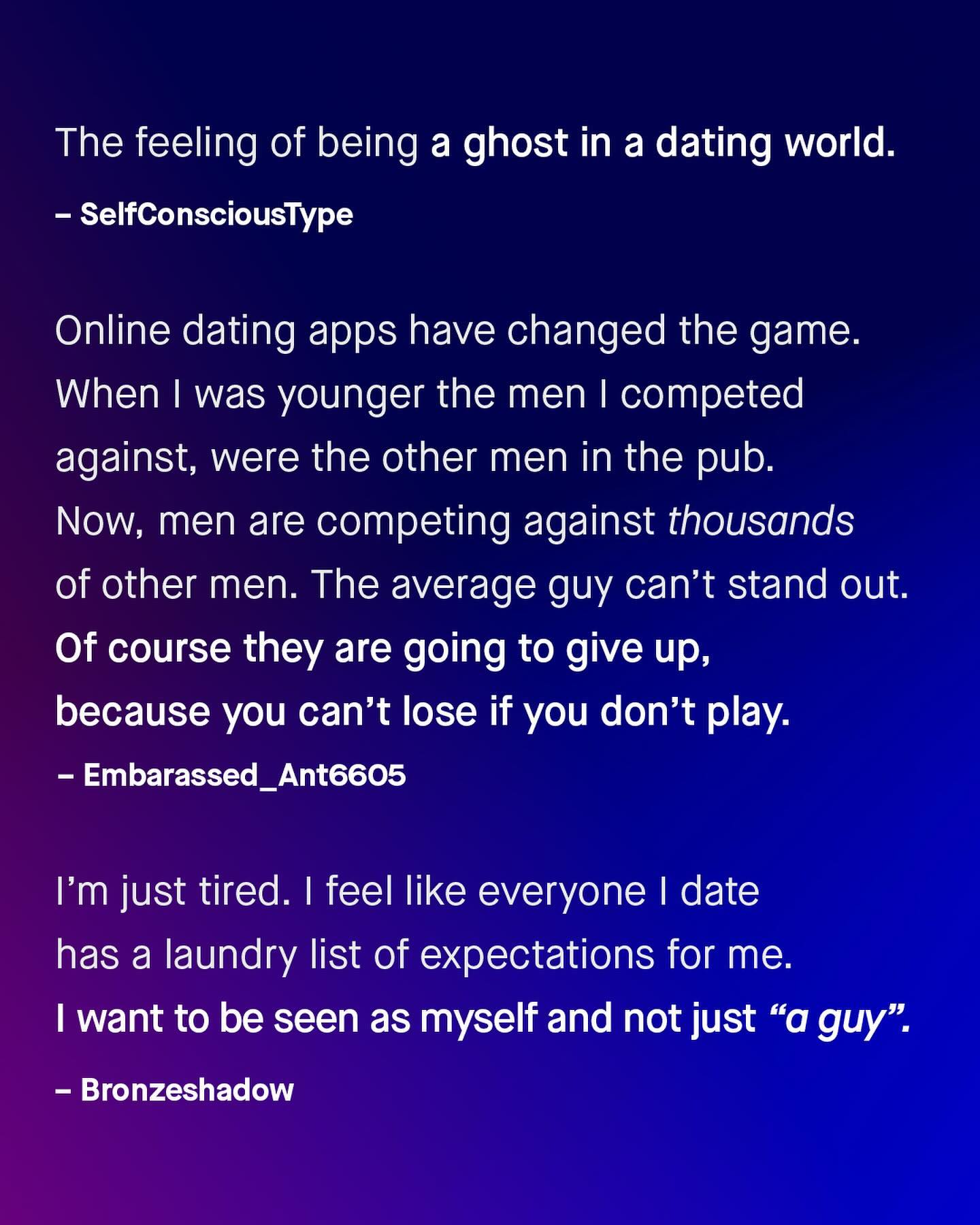 The world of dating has never been harder, with more competition, higher standards, and seemingly fewer options than ever before. Of course, it is hard for both men and women for different reasons, and more or less a lose-lose across the board. This time I wanted to talk to the guys; so often swiped past, without consideration or thought… So, are you giving up on dating, and why? #guytalk #dating #maleloneliness #datingadvice